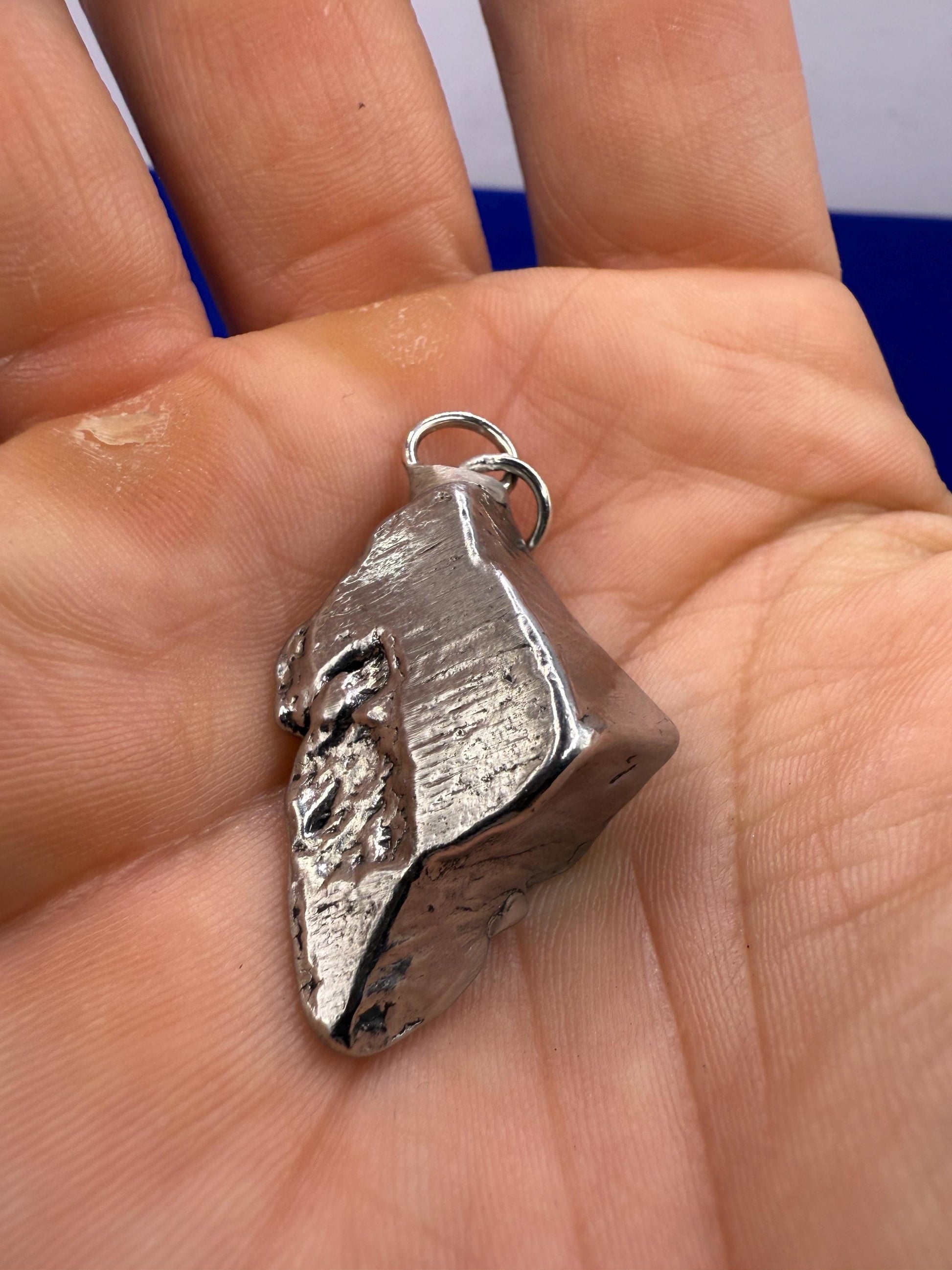 This is a beautiful Aletai meteorite pendant, a unique piece that effortlessly blends celestial allure with elegant sophistication. It weighs 19.76 grams, the length is 1.25” long and 0.75” wide. Crafted with meticulous attention to detail, this pendant features an authentic Aletai meteorite, showcasing the captivating beauty of a celestial treasure.