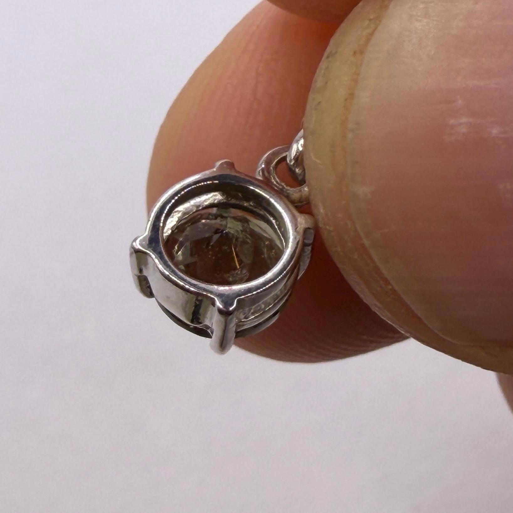 This is a stunning high-quality gem-cut Moldavite pendant with a brilliant, eye-catching sparkle. Expertly faceted to enhance its natural clarity and glow, this Moldavite truly stands out. The gemstone weighs 0.71 grams and the pendant measures approximately 0.25” wide and 0.25” long. It comes with a silver snake chain and a velvet carrying bag, making it a beautiful gift or a meaningful addition to any collection.