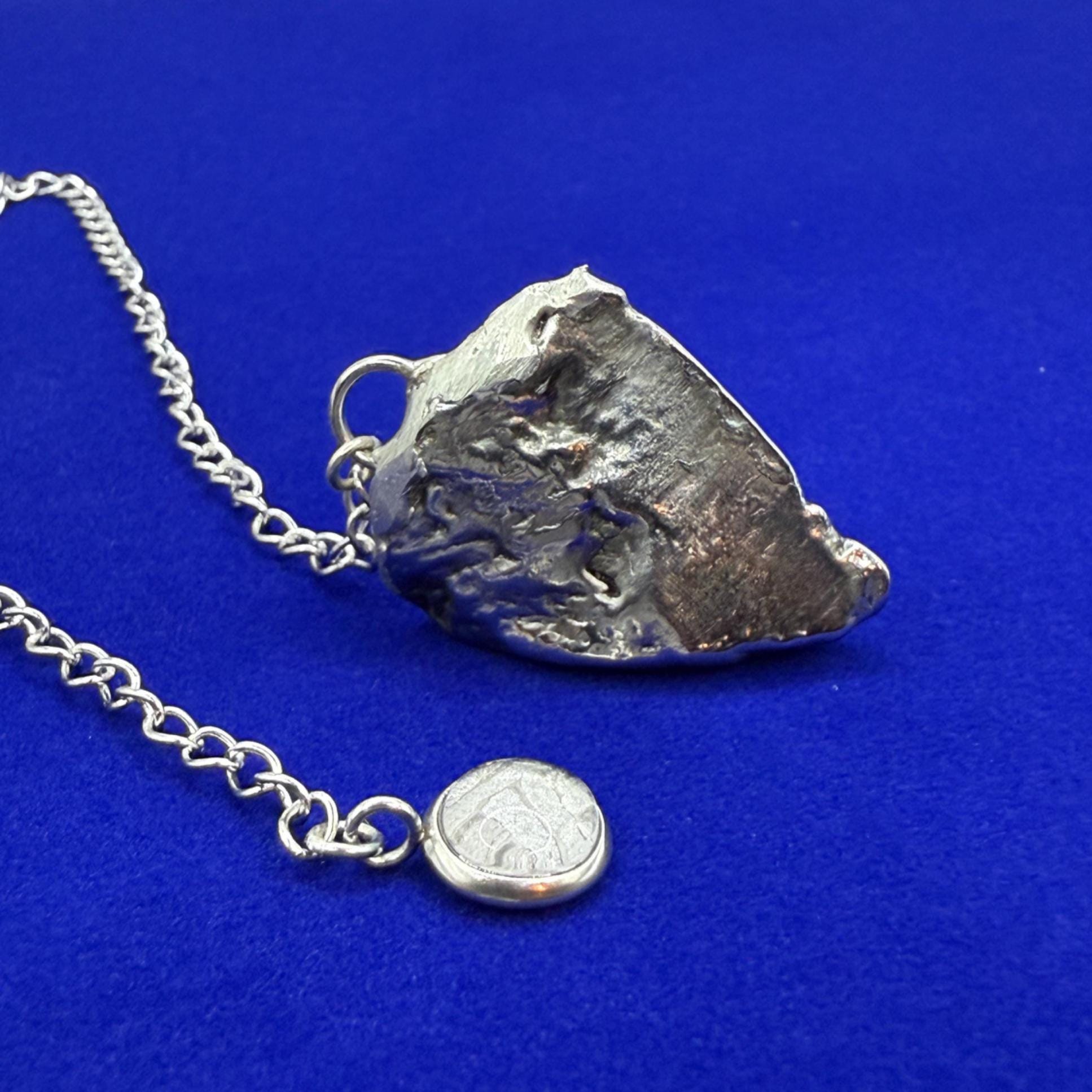 Discover the celestial allure of our handcrafted Aletai Iron Meteorite Pendulum, a unique and powerful tool for divination and energy work. This exquisite pendulum is meticulously crafted from a genuine piece of the Aletai meteorite, known for its high iron content and captivating Widmanstätten patterns. Each pendulum is a direct link to the cosmos, offering not only a piece of the universe in your hands but also a profound connection to the energies beyond our world.