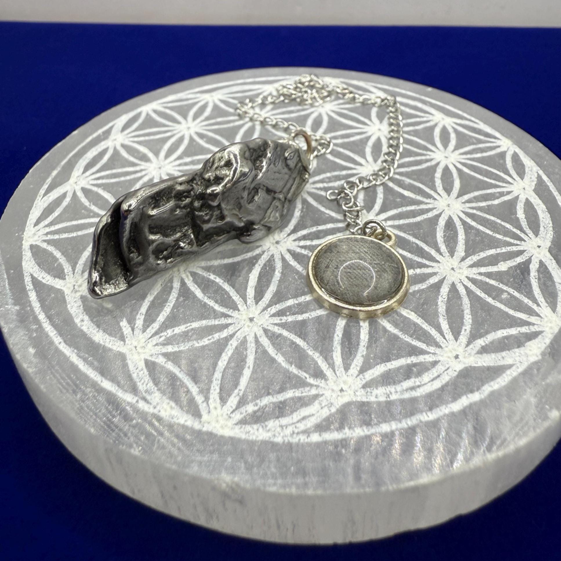 Discover the cosmic energy of our handcrafted Aletai Meteorite Pendulum, a truly unique tool for divination, energy work, and spiritual practice. Made from genuine Aletai iron meteorite—an ancient visitor from space—this pendulum connects you directly to the vast forces of the universe.