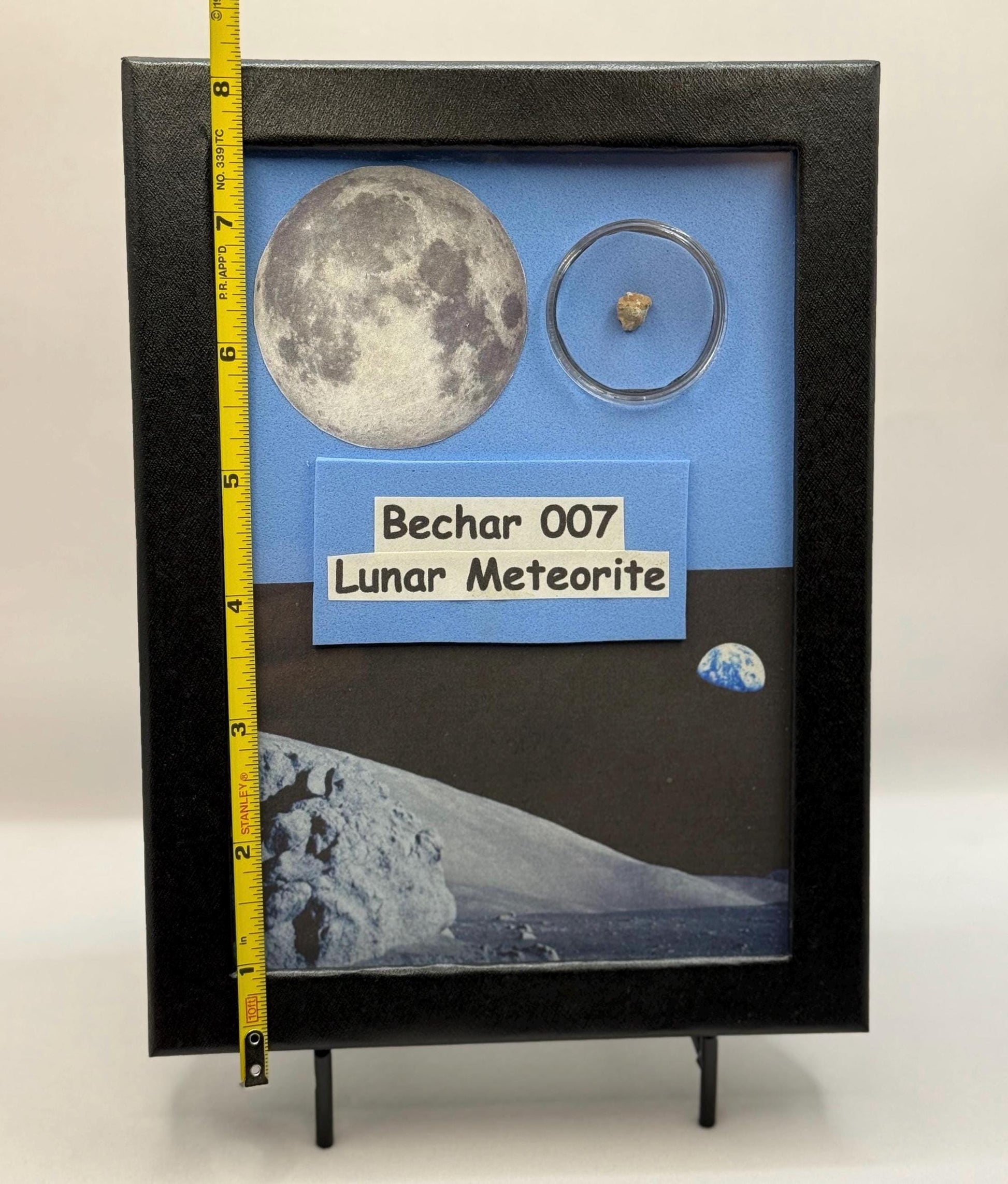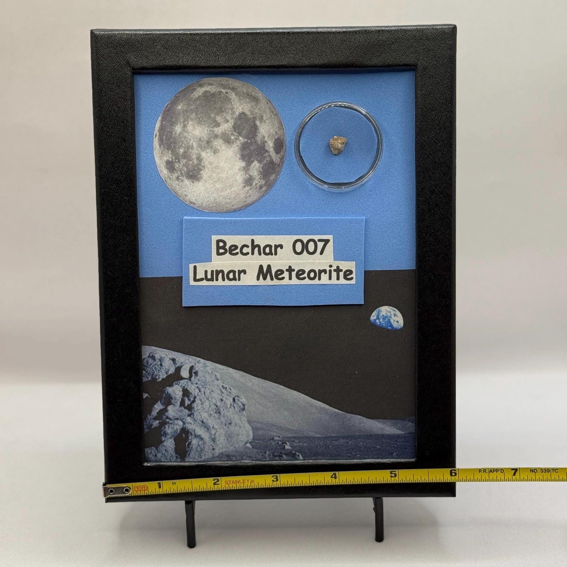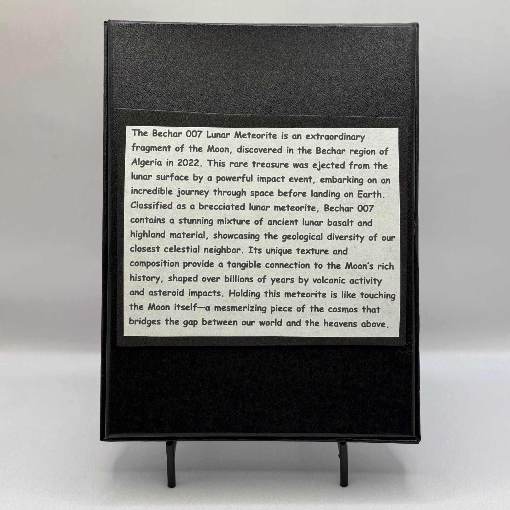 Bechar 007 Lunar Meteorite Display, Handmade Display, Genuine Moon Rock, Unique Space Gift, Rare Lunar Specimen in Elegant Display Case