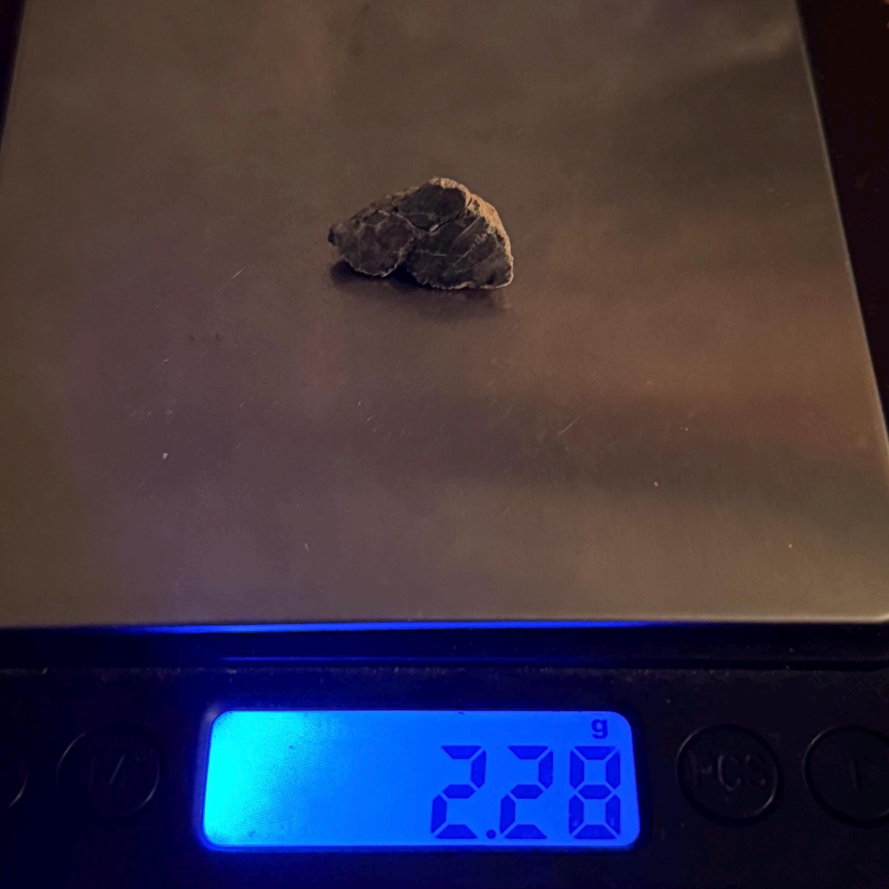 This particular piece showcases beautiful coloration and an organic, natural shape—measuring approximately 0.75” long by 0.50” wide and weighing 2.28 grams. It has been carefully curated and preserved to maintain its authenticity and scientific value.