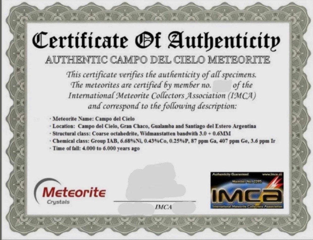 Since the natives believed that the iron pieces fell from the heavens, the name was suitable for the meteorites. The area that the meteorites are found is an open brush covered plain with very little water and no other rocks. An excellent place to be able to locate meteorites.