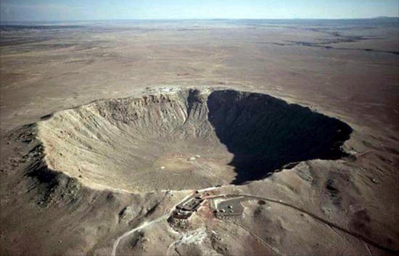 The Canyon Diablo is an Iron Meteorite. The Canyon Diablo meteorite fell in Arizona around 49,000 years ago. It was discovered in 1891 due to the massive crater from the impact. The meteor crater can be seen today.(See crater in photo) Meteorites have been found in the crater rim. The crater is roughly 4,000 feet in diameter and 600 feet deep inside the rim and raised another 200 feet above the plain.