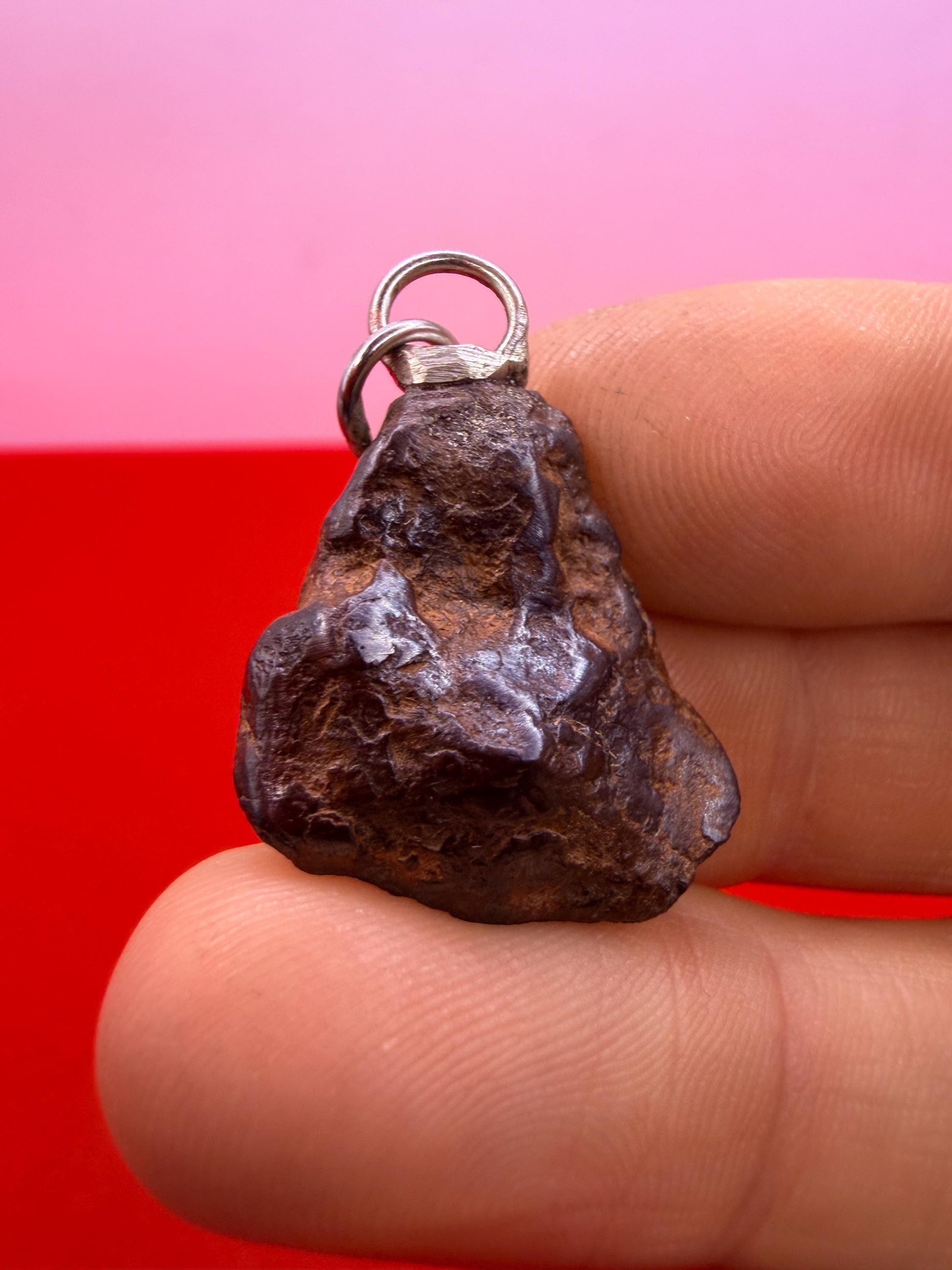 Canyon Diablo Meteorite Pendant. This one has such a unique shape with amazing features. The weight is 8.08 grams the meteorite is 0.75” long and 0.75” wide. Comes with complimentary silver snake chain and leather necklace. The perfect unique gift for those interested in Science-Fi and Space. Such a unique meteorite that will surely get you attention. Free shipping!