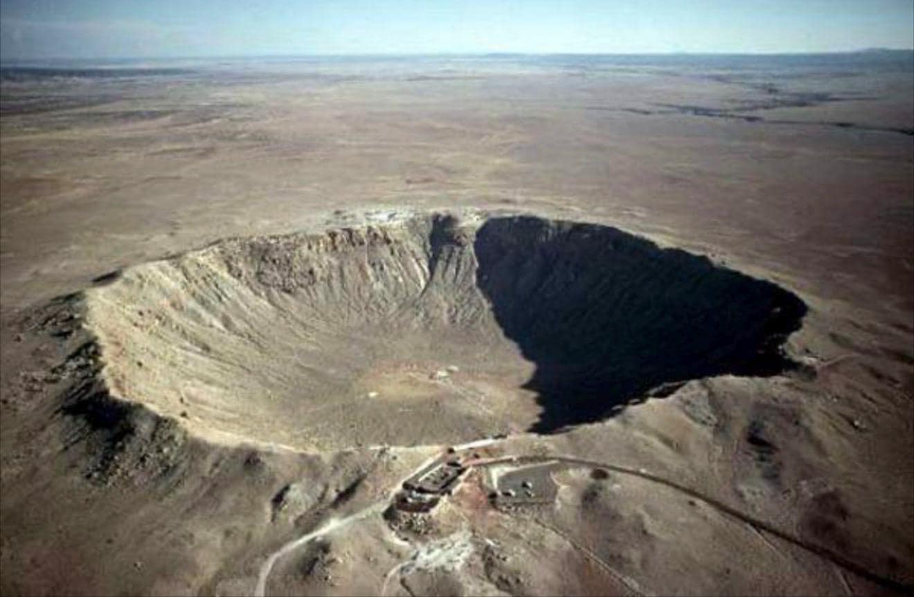 The Canyon Diablo is an Iron Meteorite. The Canyon Diablo meteorite fell in Arizona around 49,000 years ago. It was discovered in 1891 due to the massive crater from the impact. The meteor crater can be seen today.(See crater in photo) Meteorites have been found in the crater rim. The crater is roughly 4,000 feet in diameter and 600 feet deep inside the rim and raised another 200 feet above the plain.