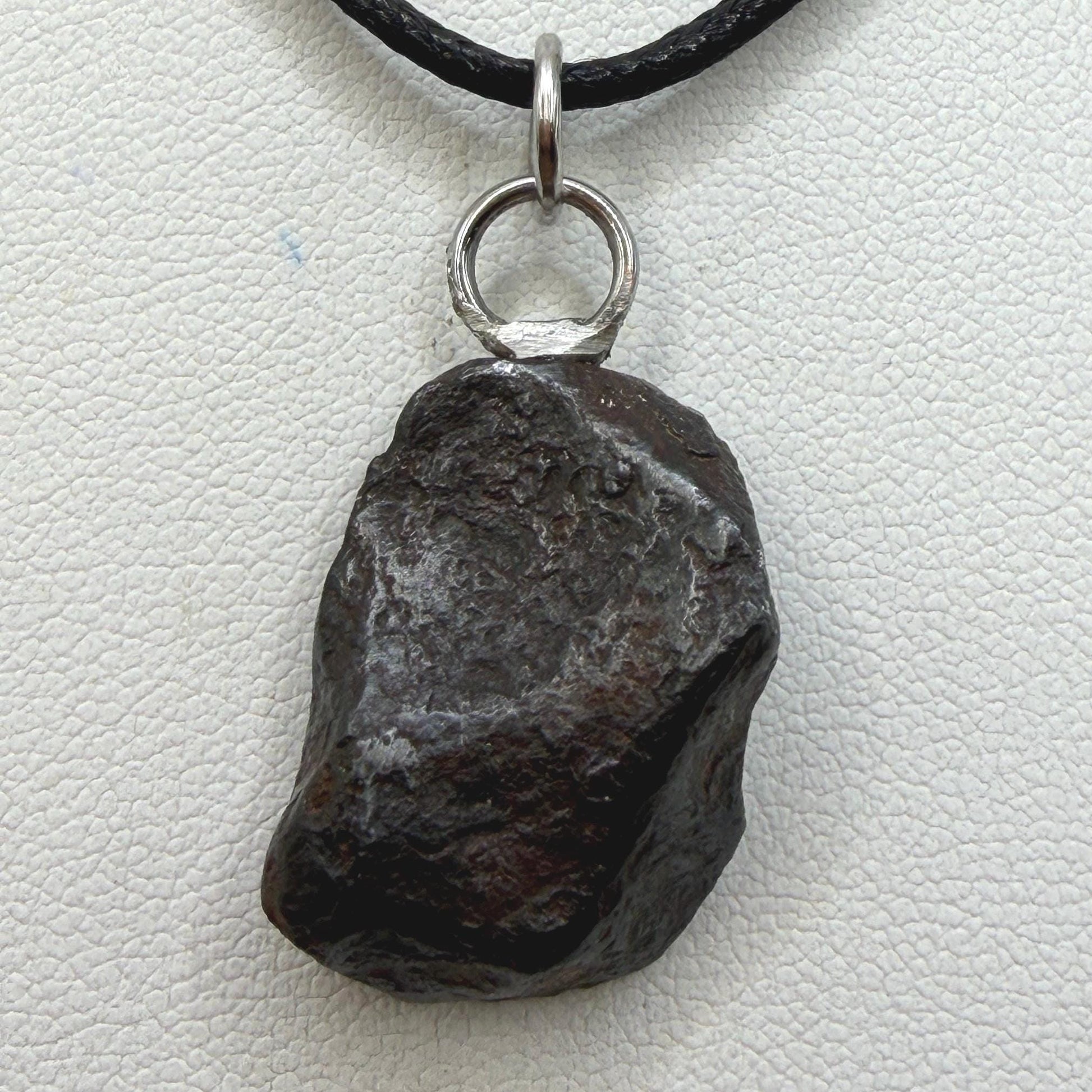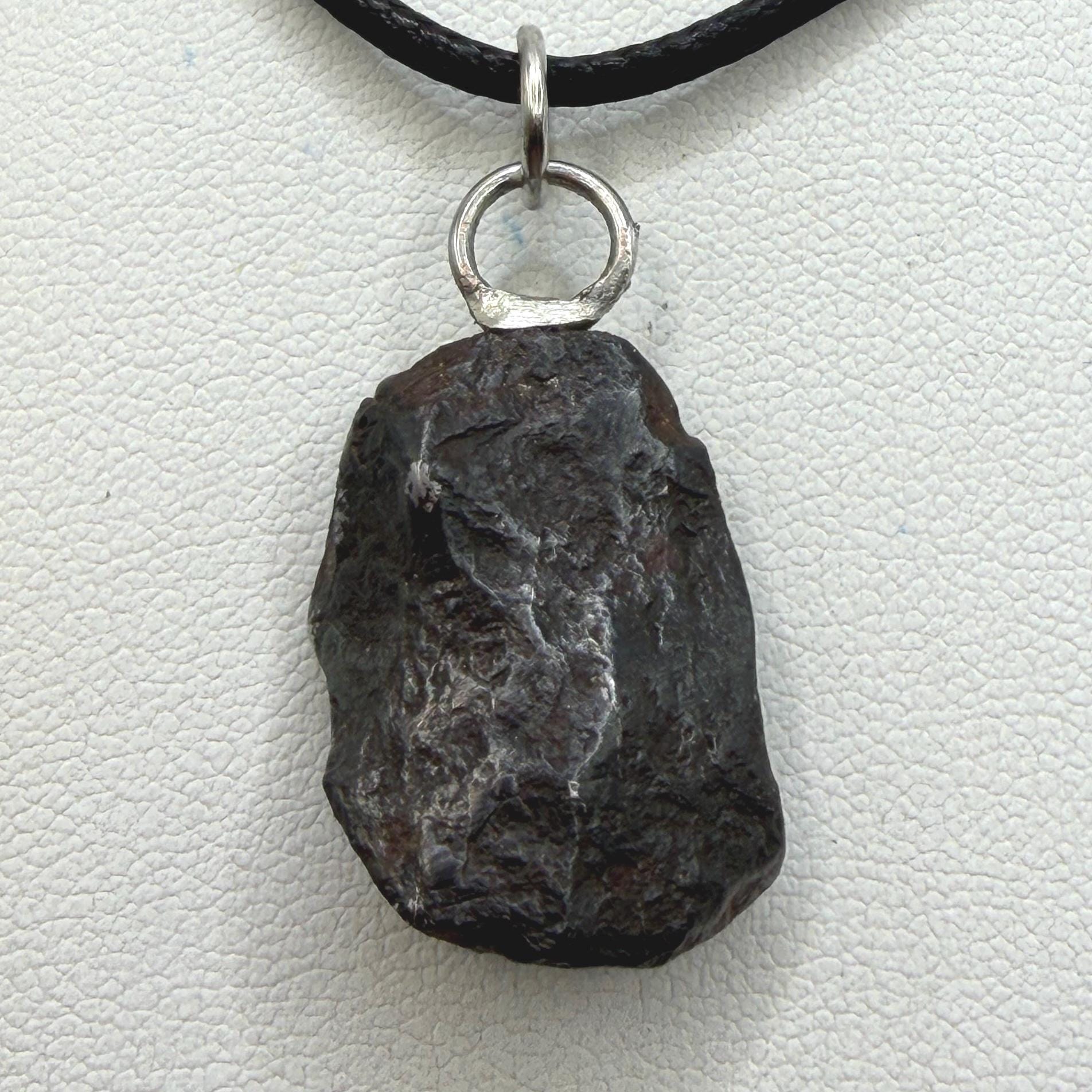 Canyon Diablo Meteorite Pendant. This one has such a unique shape with amazing features. The weight is 9.37 grams the meteorite is 0.75” long and 0.65” wide. Comes with complimentary silver snake chain and leather necklace. The perfect unique gift for those interested in Science-Fi and Space. Such a unique meteorite that will surely get you attention. Free shipping!