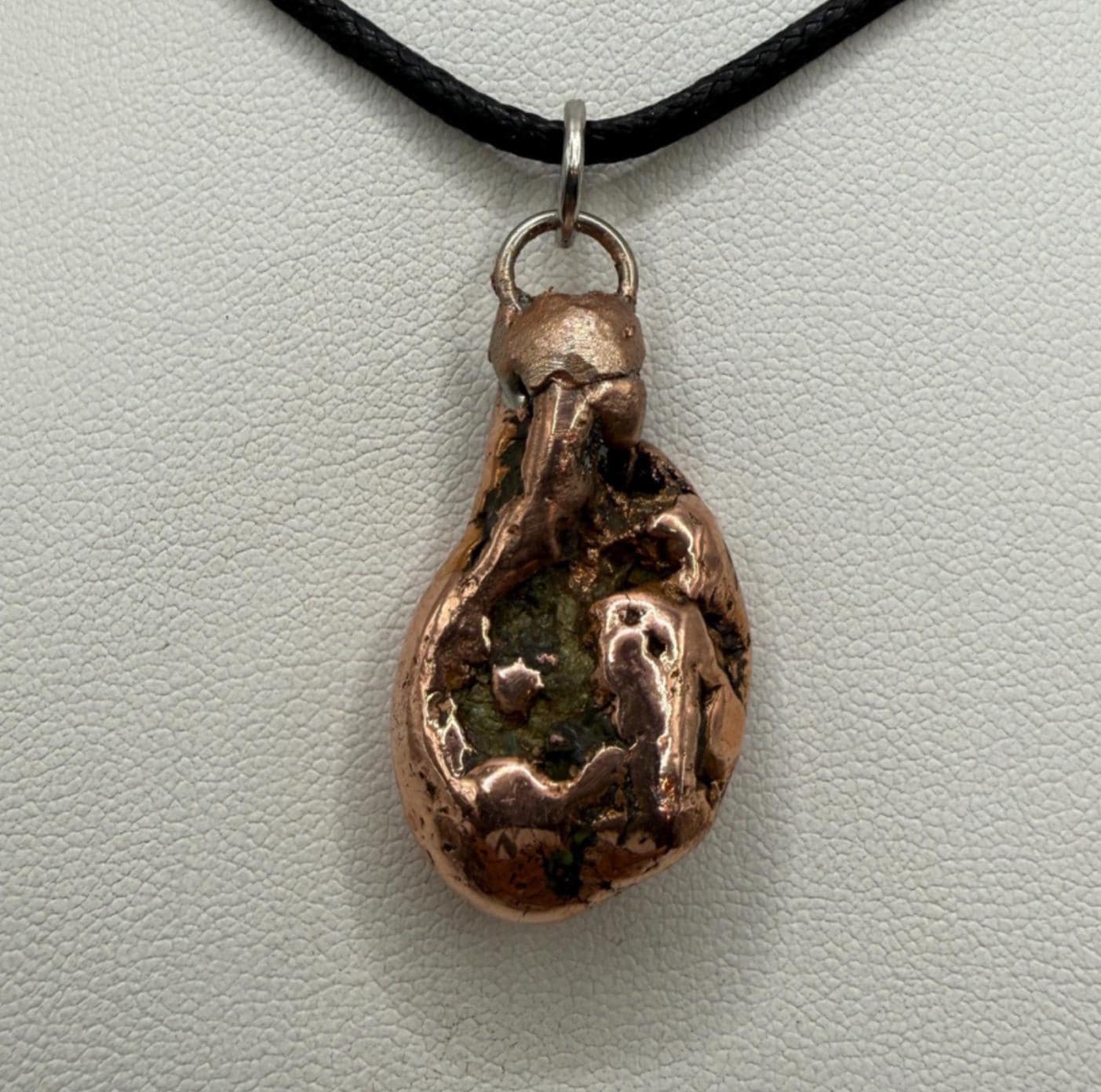 Metaphysically, copper is celebrated for its healing properties, believed to amplify energy, enhance psychic abilities, and promote harmony and balance within the body. It is said to stimulate the flow of energy and align the physical and astral bodies, making it a powerful tool for meditation and spiritual practices. Wearing this Michigan Float Copper Pendant not only connects you to the Earth’s ancient energies but also brings a touch of natural elegance to your everyday attire.