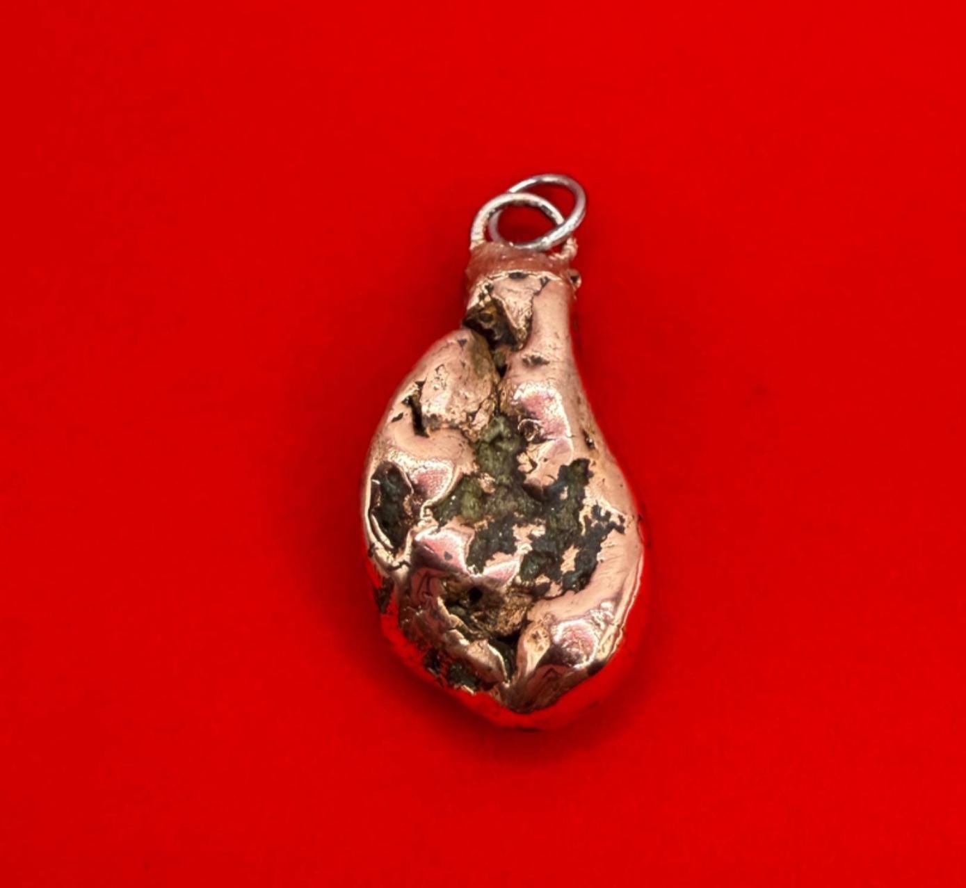Discover the allure of our exquisite Michigan Float Copper Pendant, weighing 39.60 grams. This unique piece showcases native copper that has been naturally sculpted and smoothed by glacial activity, resulting in a striking, one-of-a-kind pendant. Sourced from the rich deposits of Michigan’s Copper Country, this specimen is a testament to the Earth’s geological marvels, offering a glimpse into the region’s rich mining history.