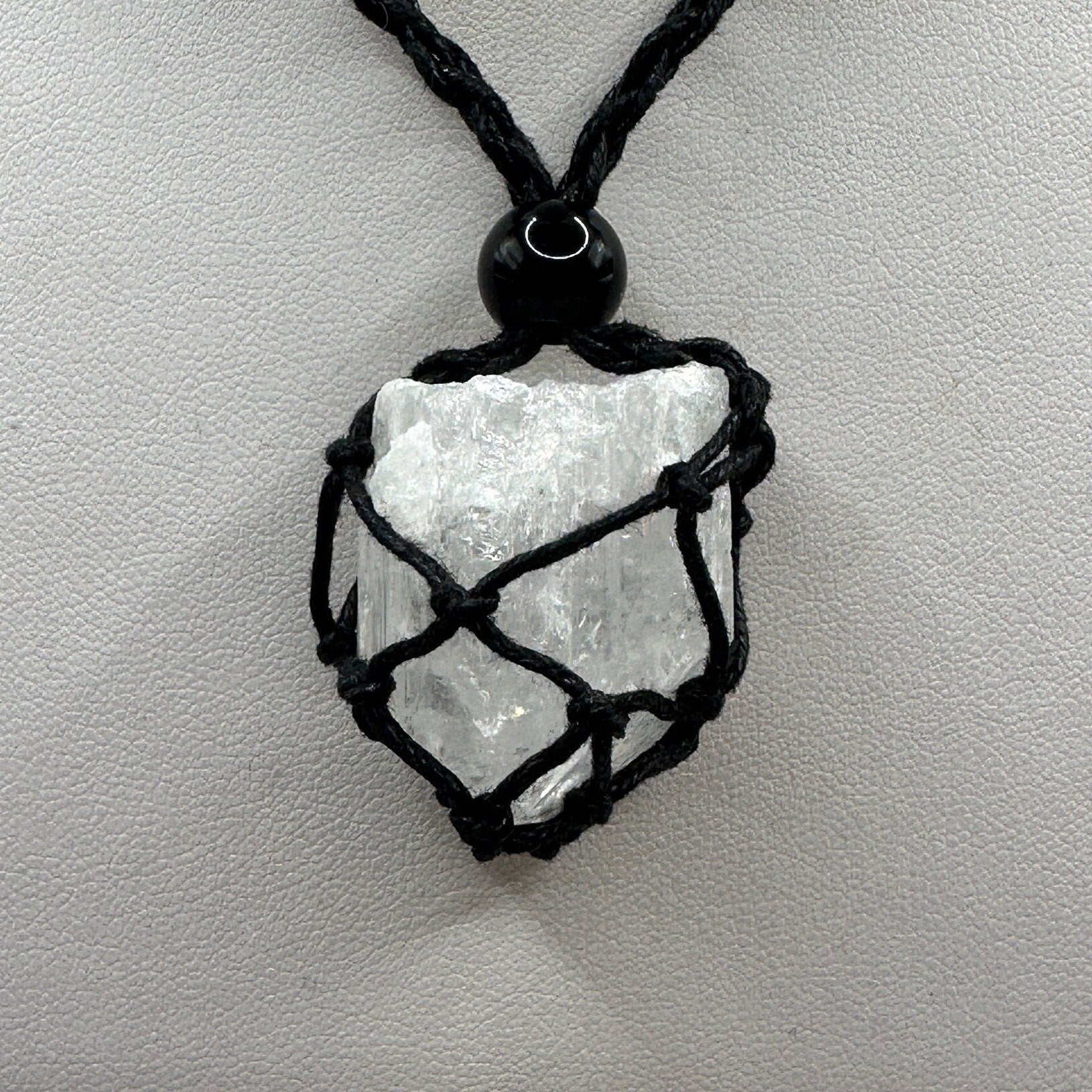 This is a beautiful high quality Danburite Crystal. The measurements of this crystal are just under 0.75” wide and just under 1.0” long. The weight of this crystal is 22.92 grams. This beautiful would make an excellent Christmas Gift or Stocking Stuffer. The crystal comes with a display case, macramé necklace and a velvet carrying bag.