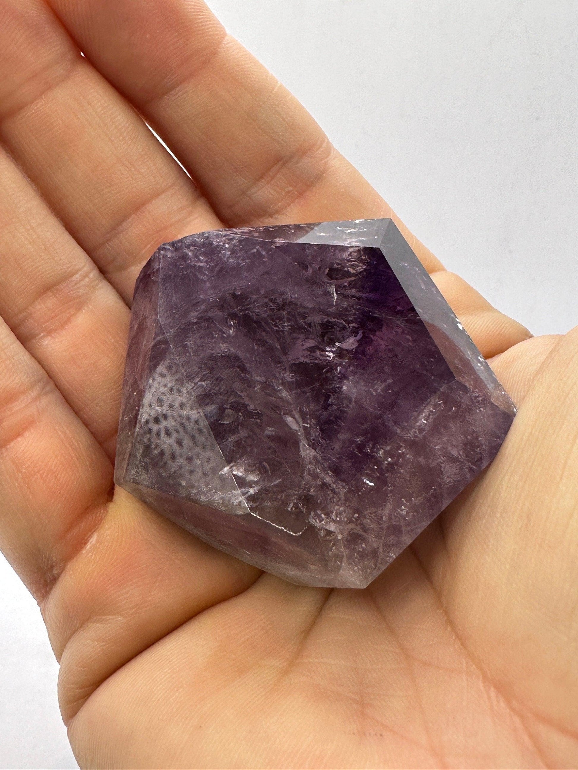 This is a beautiful Deep Purple Amethyst from Brazil. It’s measurements are 2.0” long and 1.75” wide. The weight of this beautiful crystal is 68.05 grams. Comes with a velvet carrying bag.