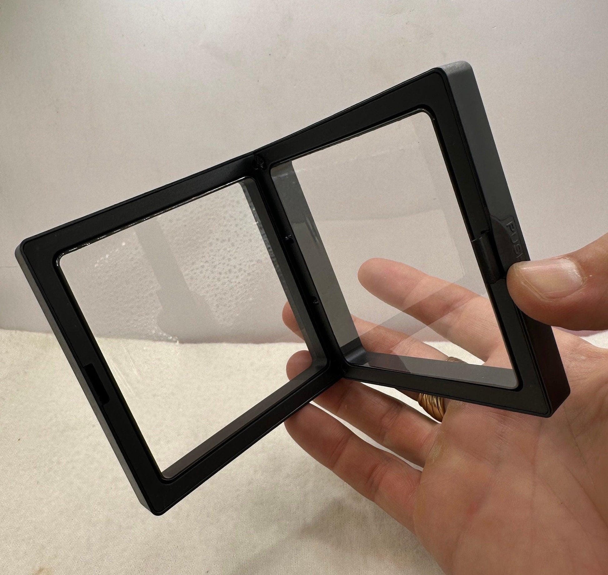 This is the perfect display case for those collectibles that are abnormally shaped and don’t sit or lay flat. (Rocks, Meteorites, tektites, minerals or other items.) Is held by two sold silicon membranes. These Display Cases are well made and durable.