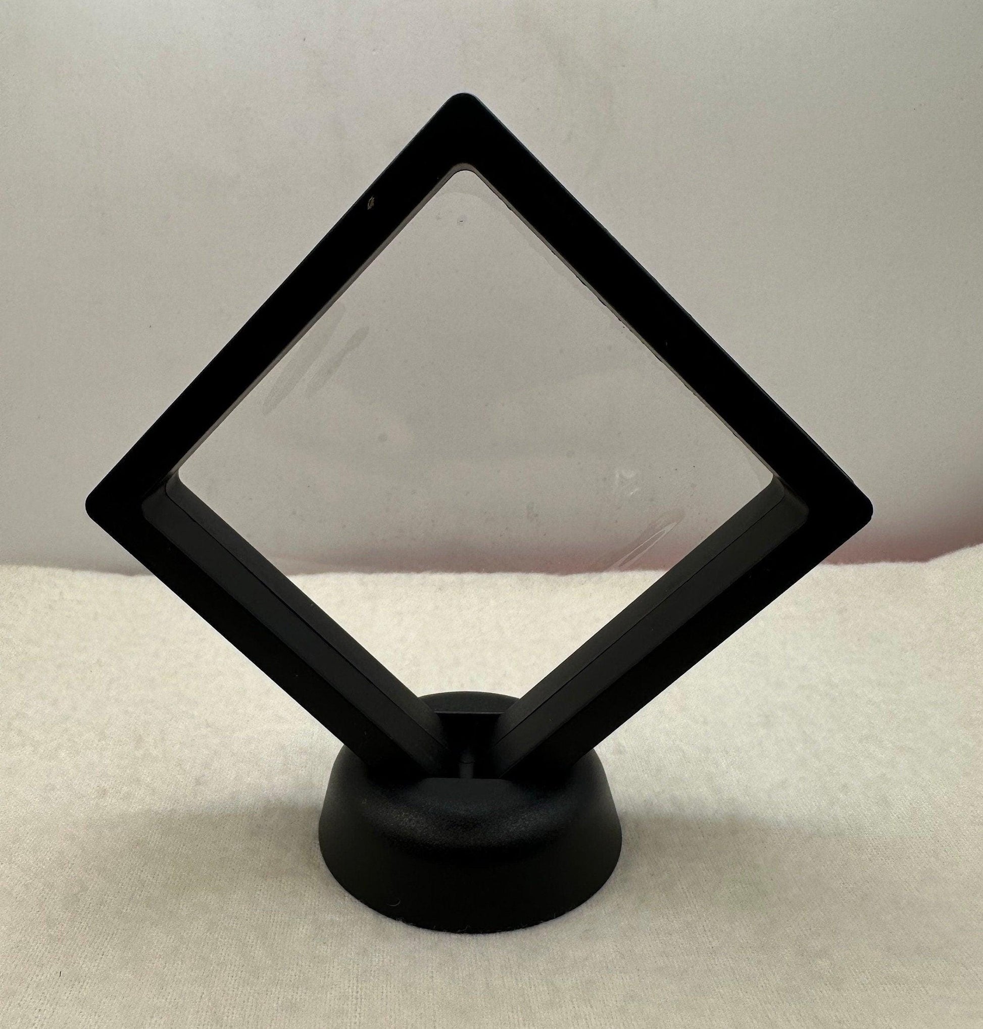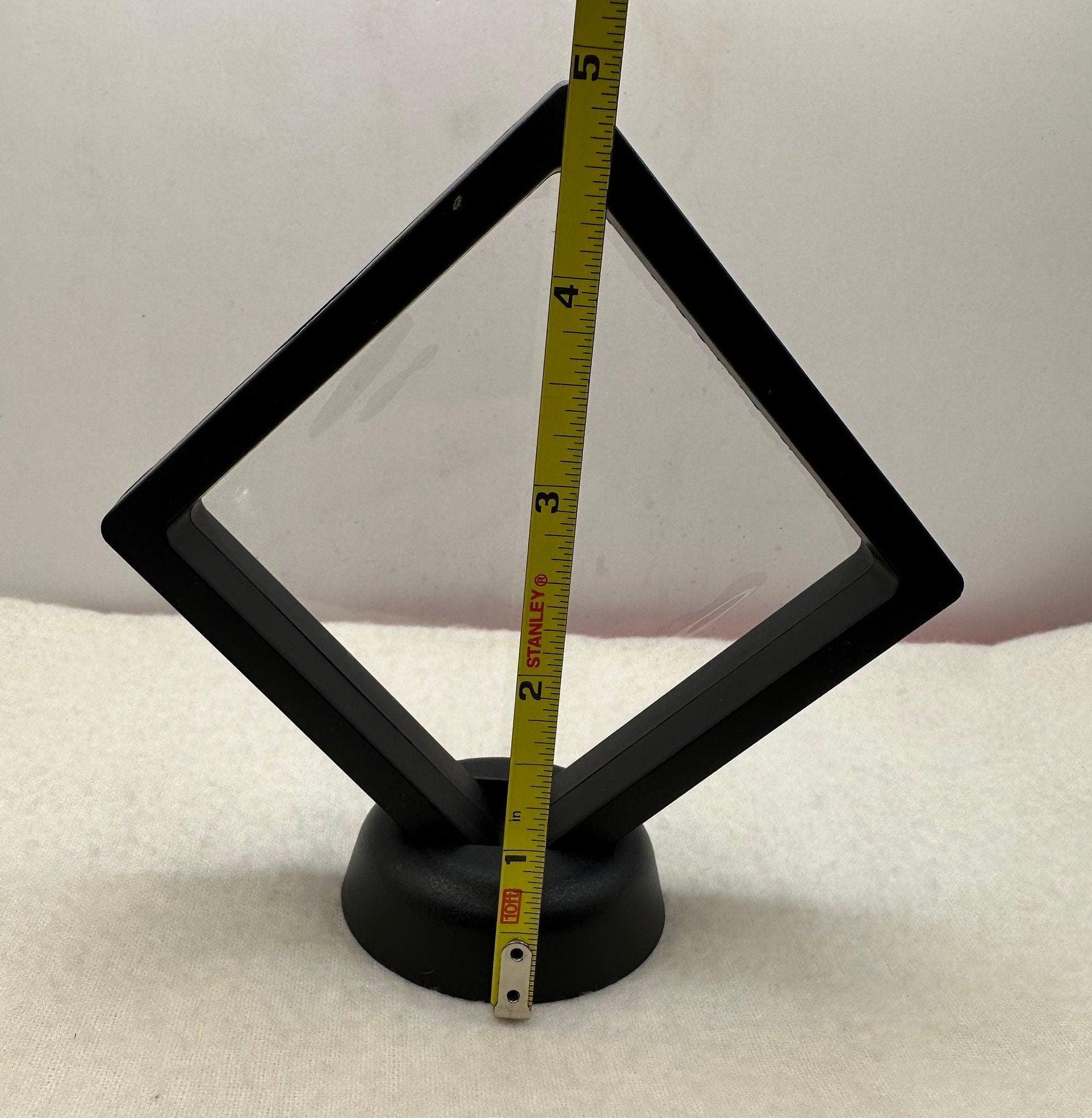 This is a Mineral/Meteorite Display Case, Pillow Box or a Floating Display Capsule. The measurements are 3.25” X 3.25”. Makes whatever you place inside look to float mid air! This is sold as a lot of 3 for $32.99. Comes with a plastic stands. If you’d like to buy less just ask and I’ll accommodate.