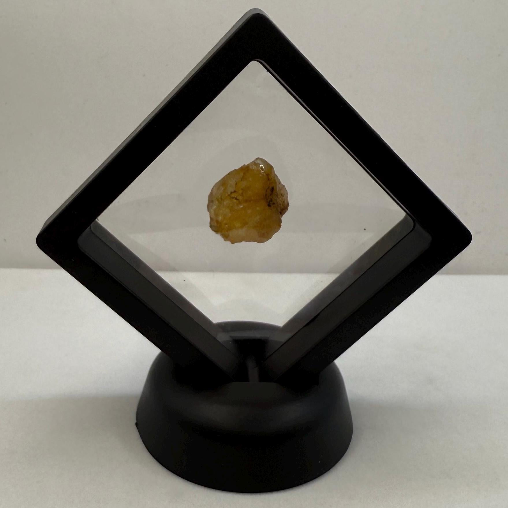 This exceptional Golden Brazilian Phenacite crystal weighs 6.54 grams (32.7 carats) and exhibits a captivating golden hue with tangerine undertones, making it a rare and visually stunning specimen. Sourced from the renowned Bahia mines in Brazil, this crystal is esteemed for its clarity and unique coloration.