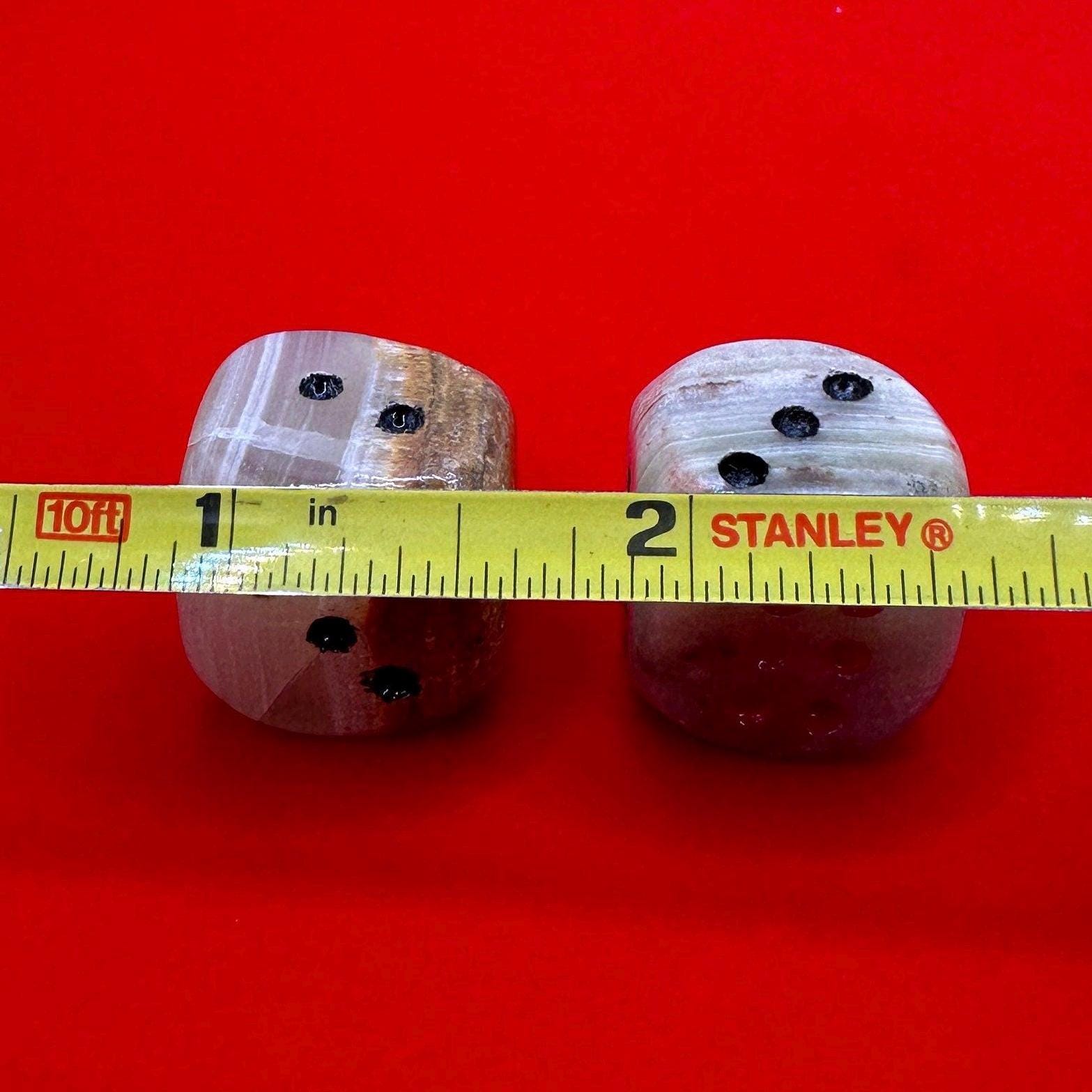 Enhance your gaming experience with this exquisite pair of Green Onyx Dice. Each die is meticulously handcrafted from genuine Green Onyx, showcasing its unique shades of green and natural veining patterns. Dice have been used for millennia, from ancient Egypt to the Roman Empire, symbolizing chance, fate, and strategy, making these not just functional gaming tools but also pieces steeped in rich history.