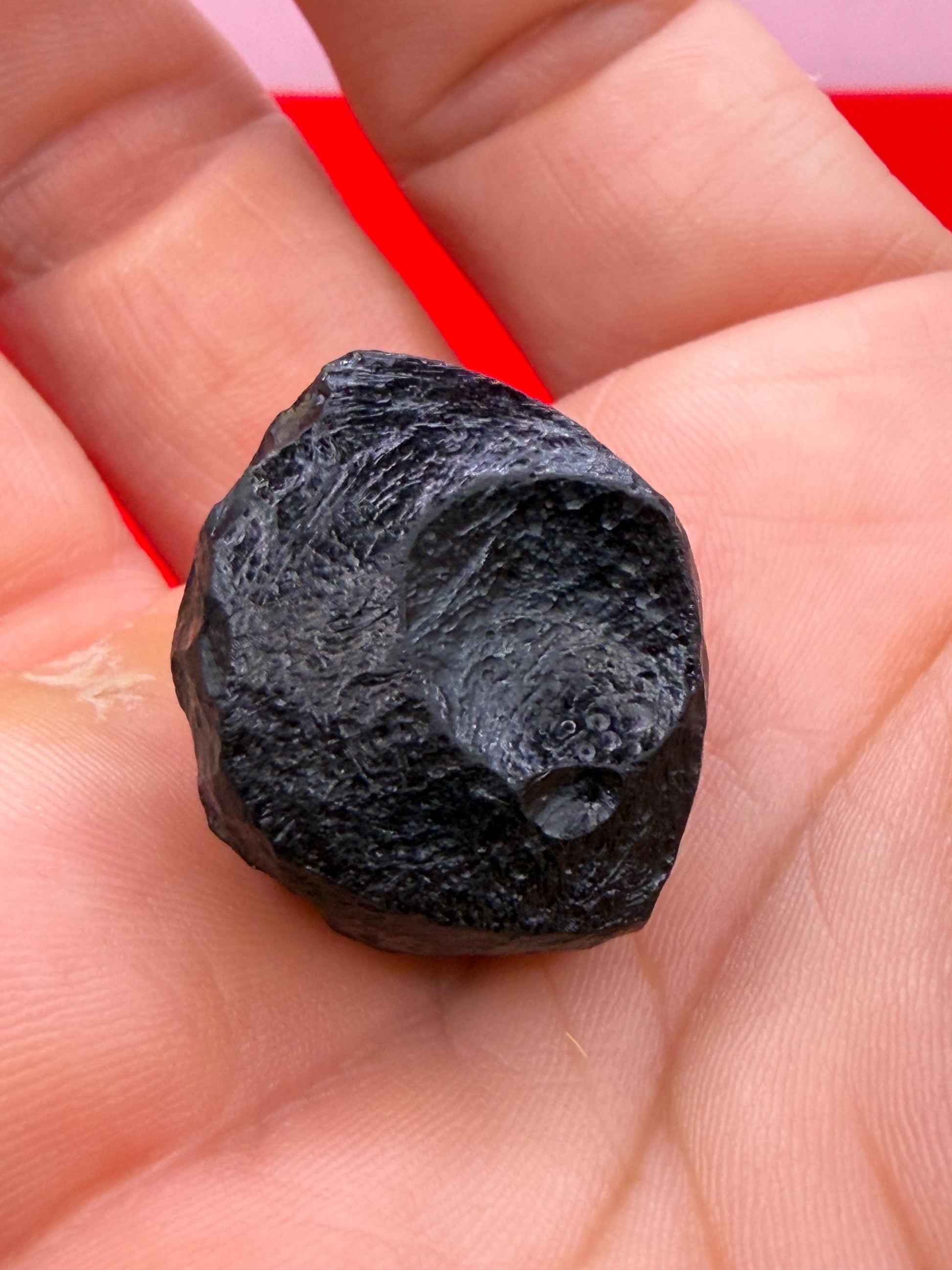 This beautiful tektite is the perfect addition to any rock and mineral collection! Its unique and mesmerizing surface makes it one of a kind - perfect for display or as a unique jewelry piece. Its beautiful shiny black surface make it stand out among other stones. Tektites are solidified droplets of terrestrial debris ejected during meteorite impacts, making it a very special and rare piece of history. With a hardness ranking of 5, this tektite will make a long lasting addition to your collection.