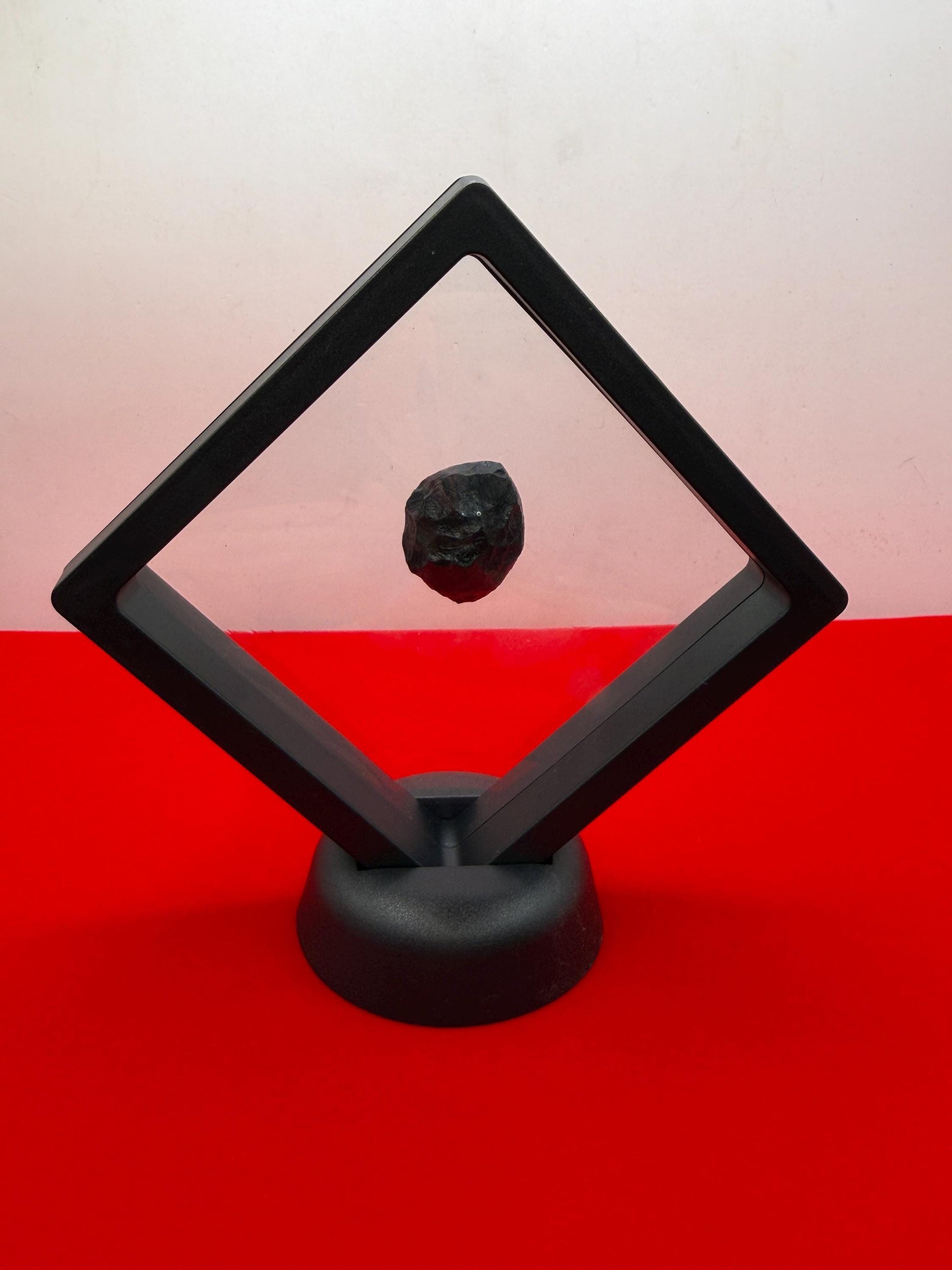 This is a beautiful Indochinite Tektite from Indonesia. The measurements of this tektite is 0.75” wide and 0.75” long. The weight is 8.99 grams. Comes with a velvet carrying bag and a display case.