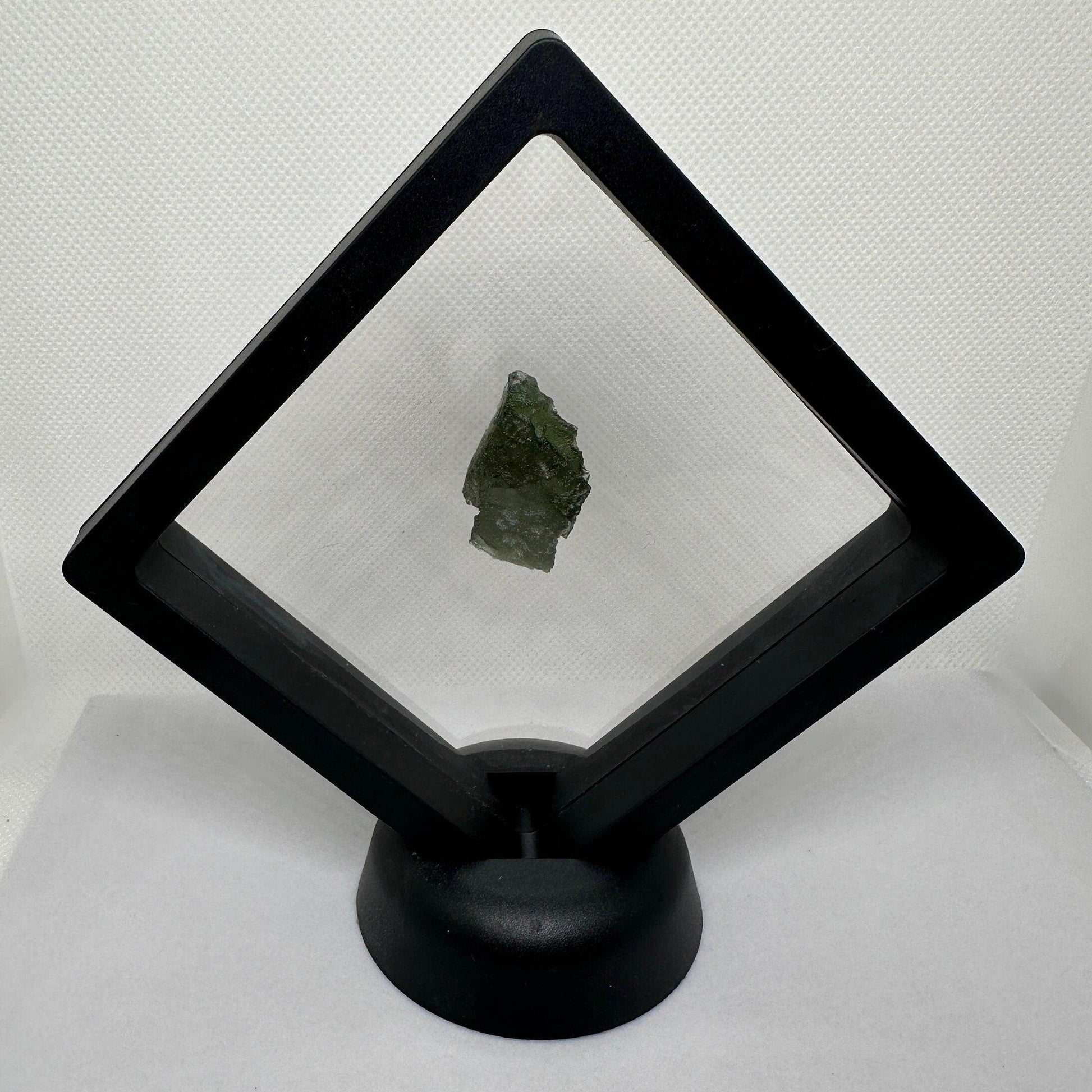 This is a beautiful High Quality Moldavite Tektite Specimen with a very unique shape. The weight of this specimen is 4.20 grams/21 carats. The measurements are 0.50” wide and 1.0” long. Comes with a display case and a velvet carrying bag.