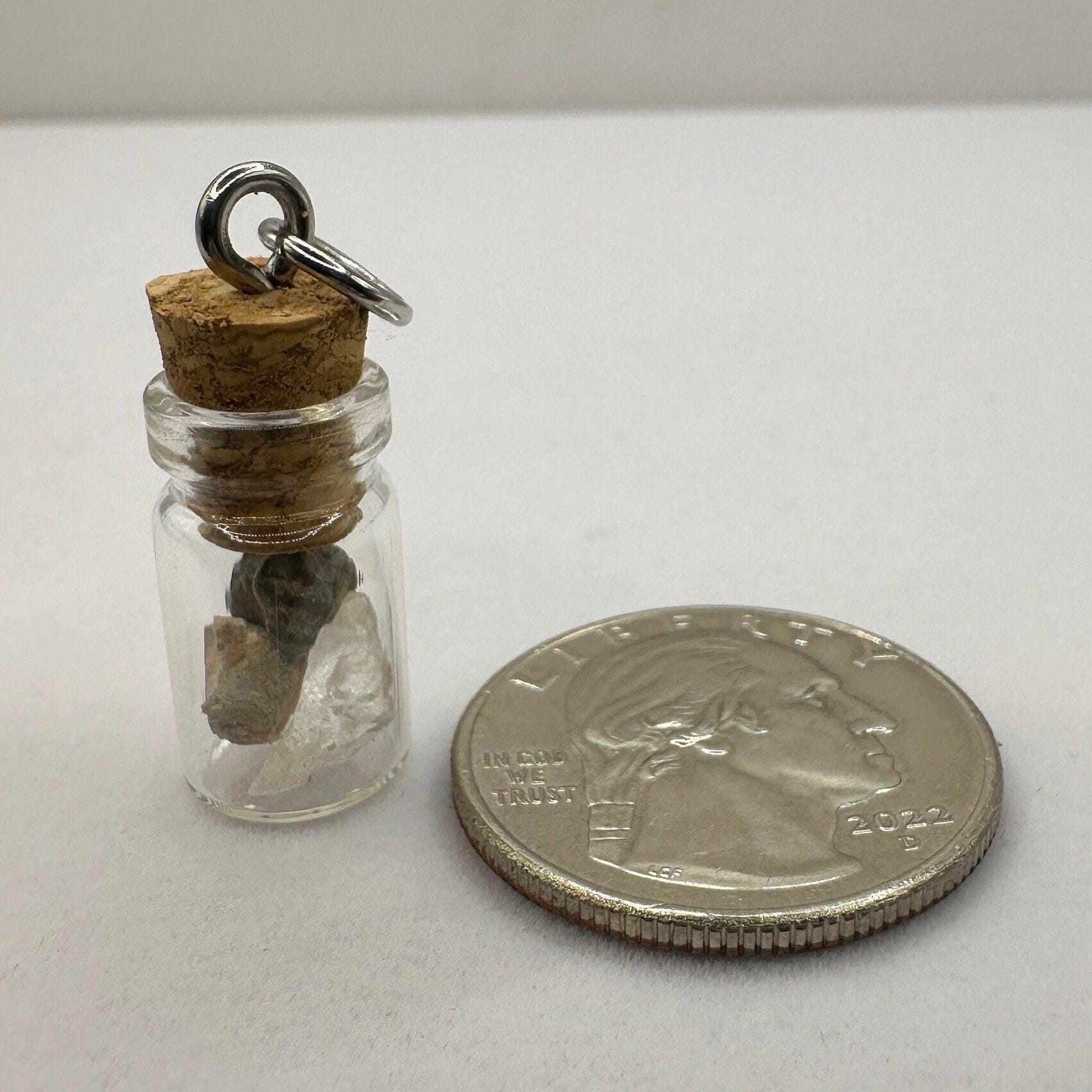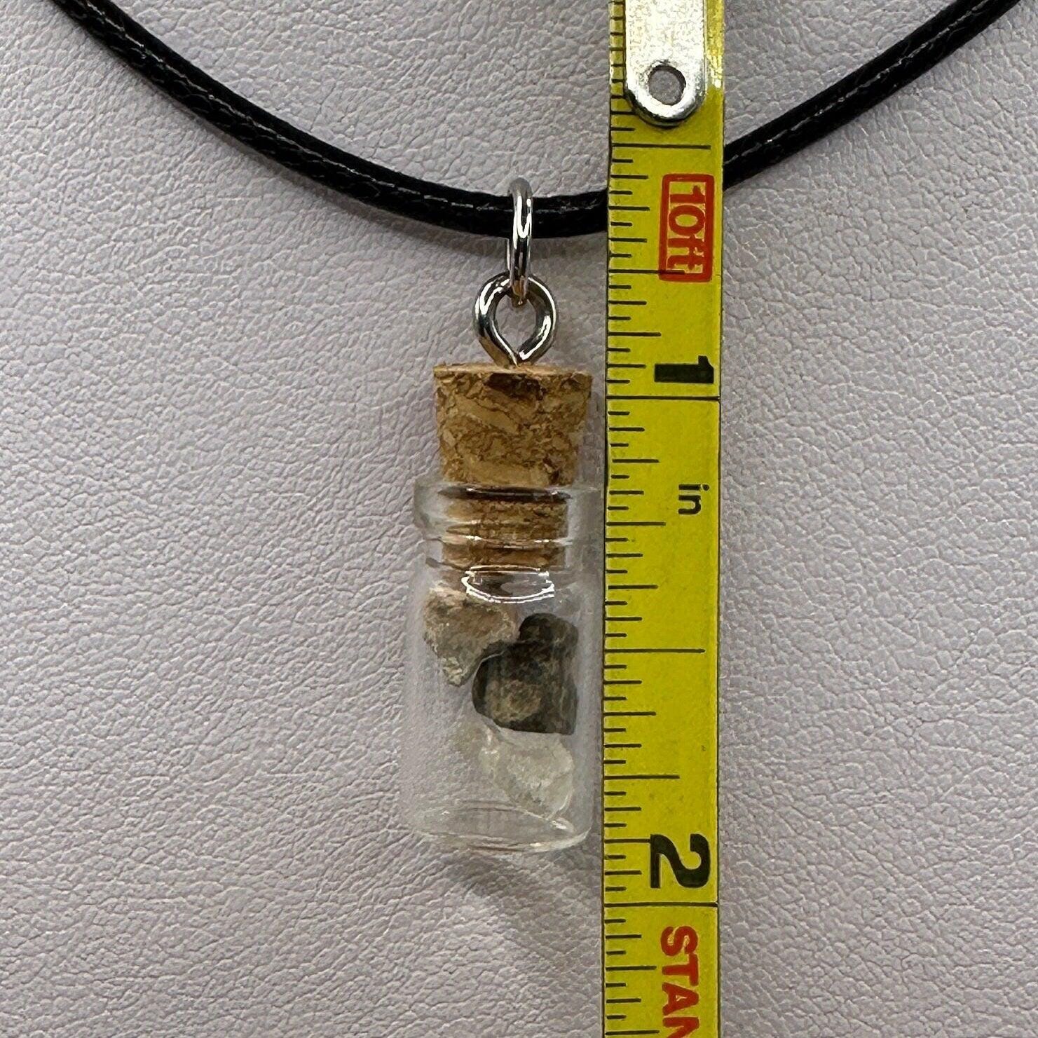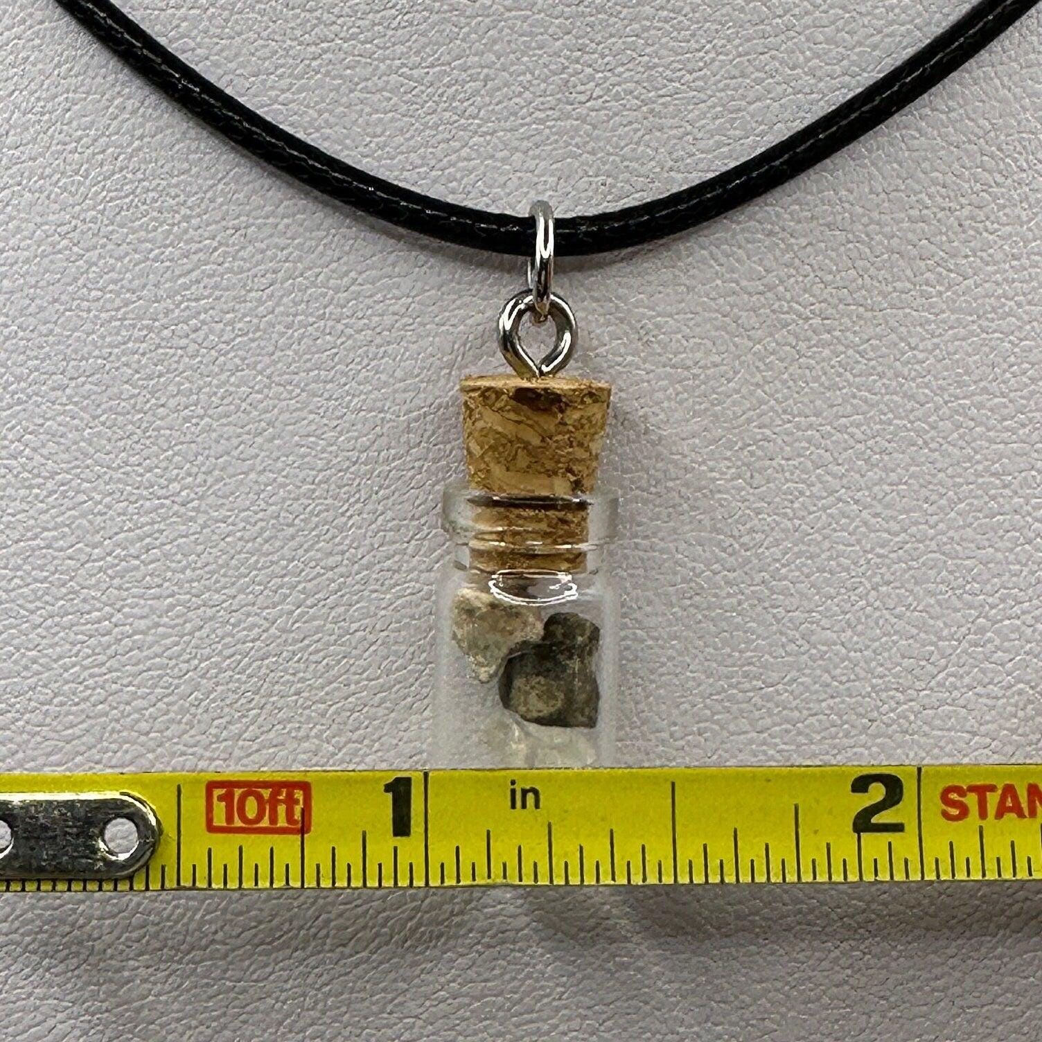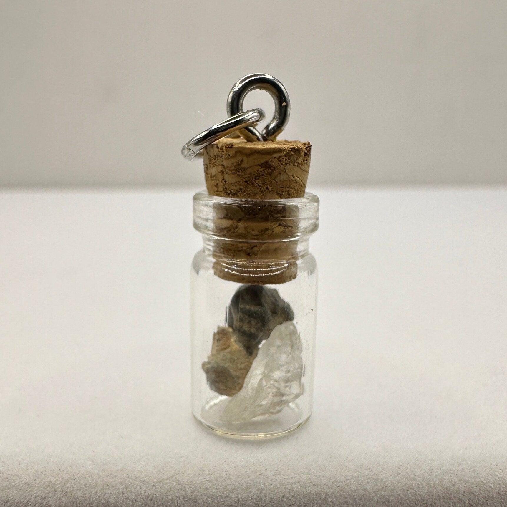 Moon, Mars and Earth in a Bottle Pendant, Mars Shergottite, Bechar 007 Moon Meteorite, Nigerian Phenacite, Handmade Pendant, Astronomy Gift