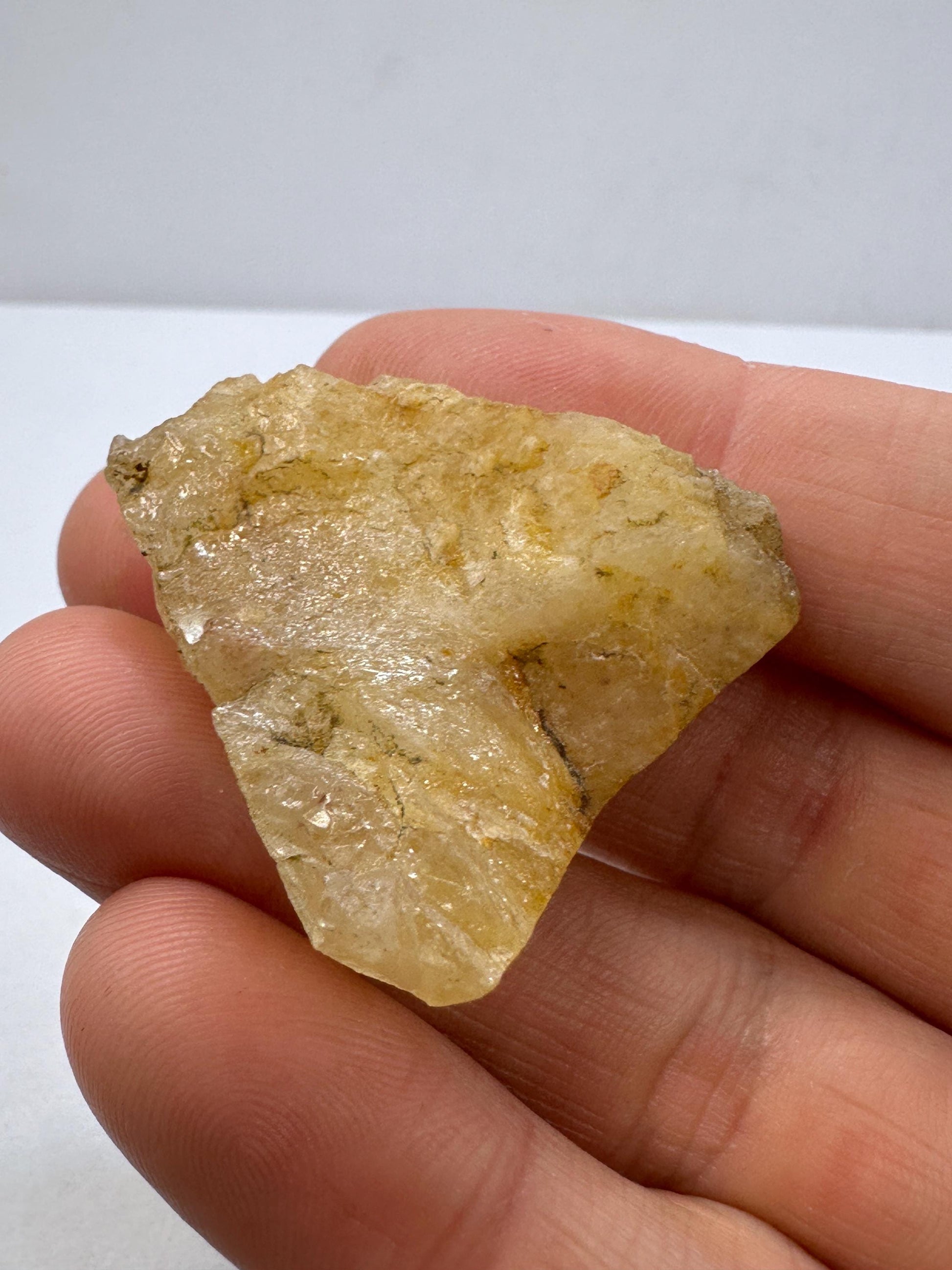Discover the radiant beauty of this Golden Phenacite from Brazil, weighing 21.12 grams. Known for its captivating golden hue, this rare specimen shines brightly under the light, revealing its translucent, honey-like tones that make it a highly sought-after treasure among collectors and spiritual enthusiasts alike.