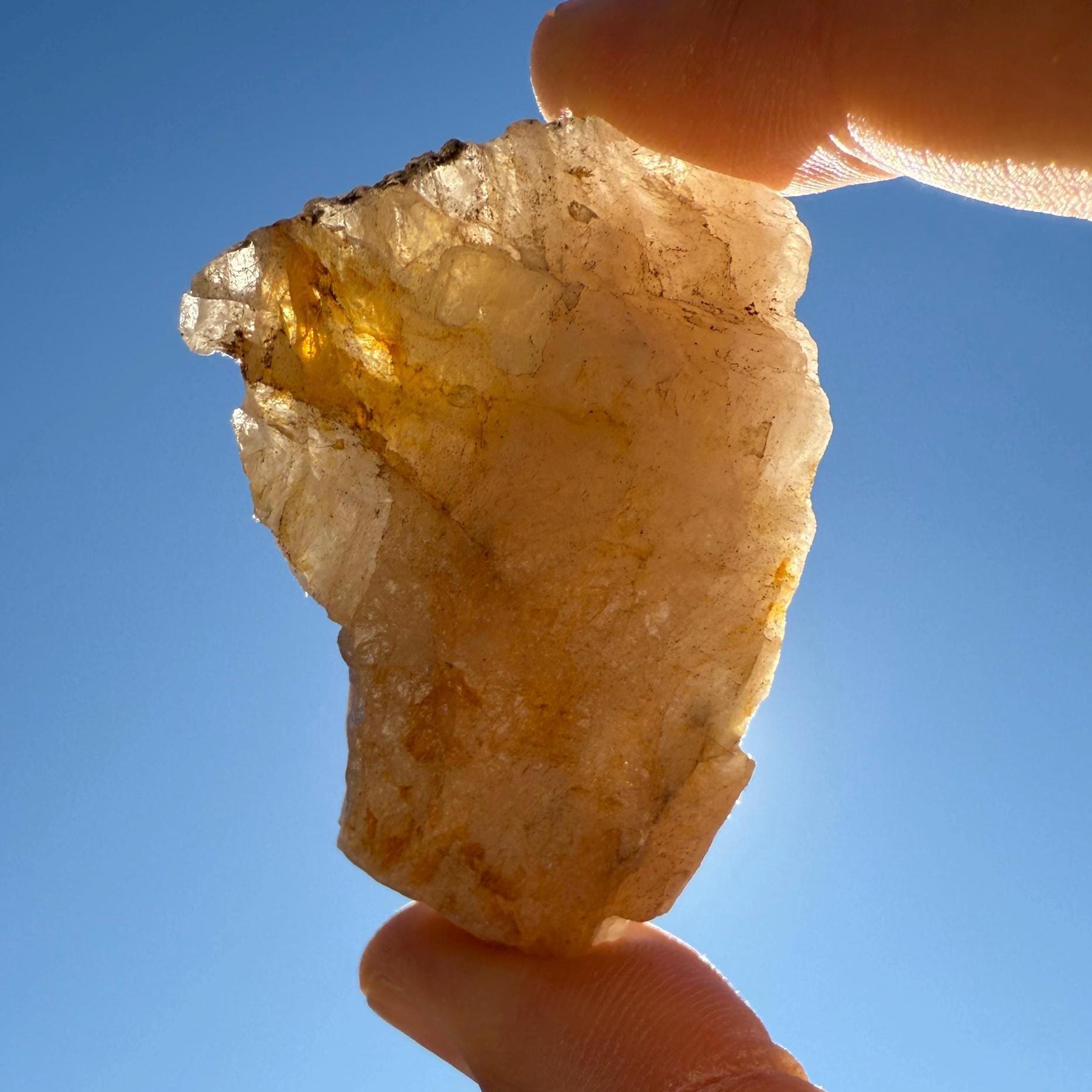 Discover the radiant beauty of this Golden Phenacite from Brazil, weighing 64.67 grams. Known for its captivating golden hue, this rare specimen shines brightly under the light, revealing its translucent, honey-like tones that make it a highly sought-after treasure among collectors and spiritual enthusiasts alike.