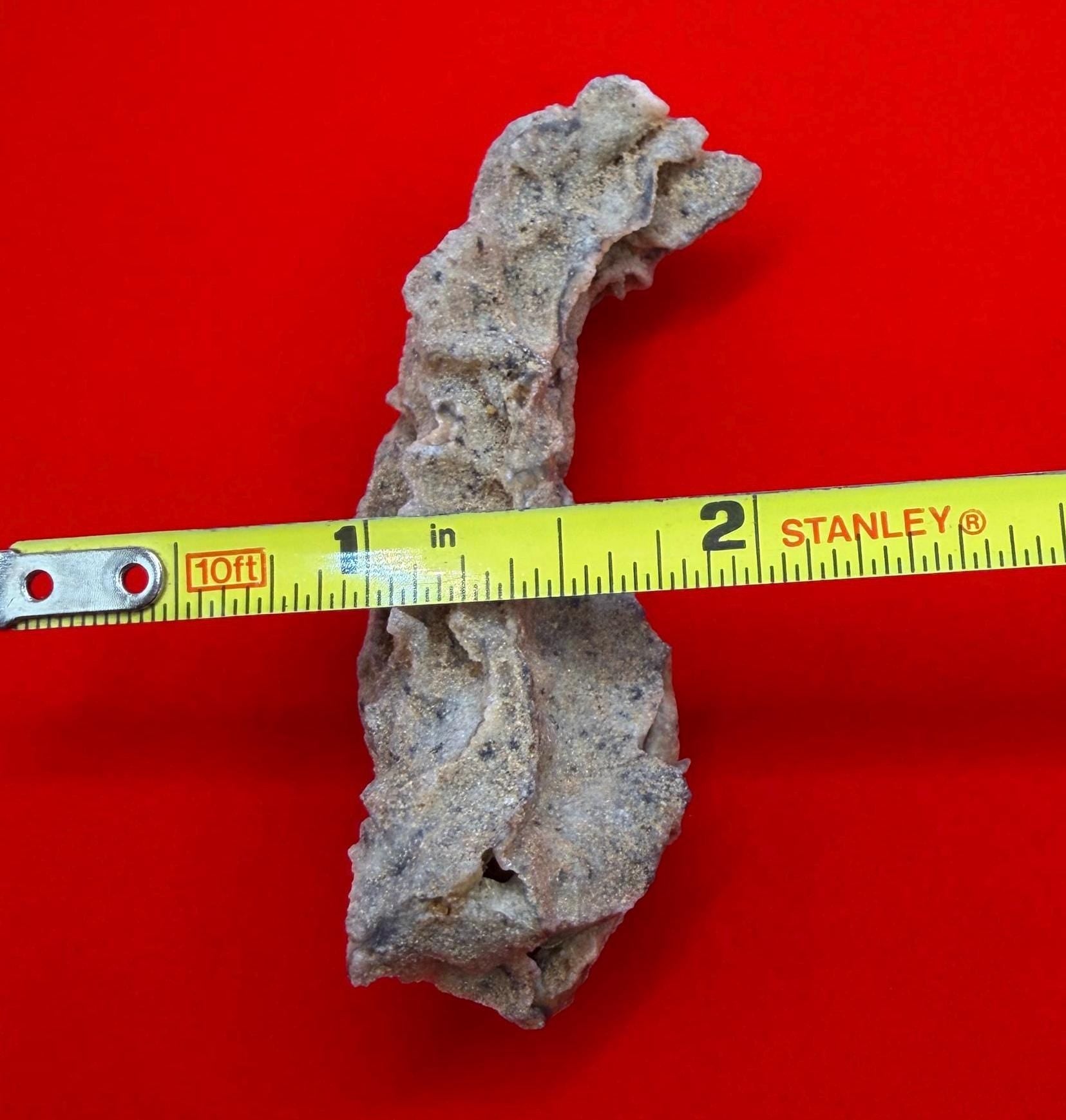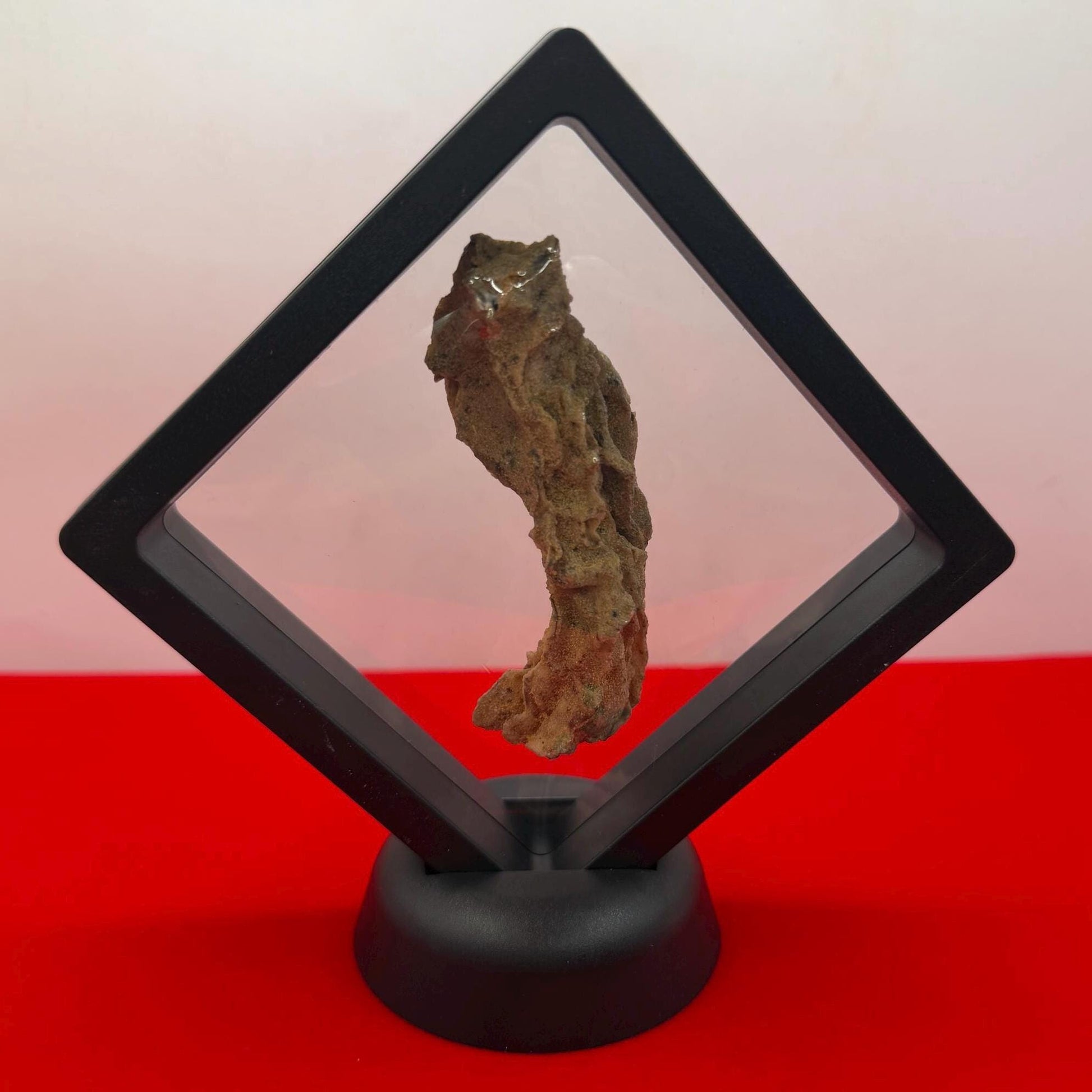 This genuine Fulgerite was formed when lightning struck the sandy dunes of the Sahara Desert, creating a beautiful and unique piece of natural art. This Fulgerite weighs 14.53 grams and is a true testament to the raw power of nature. The length is 2.5” long and 0.75” wide. This fulgerite comes with a display case and a velvet carrying bag.