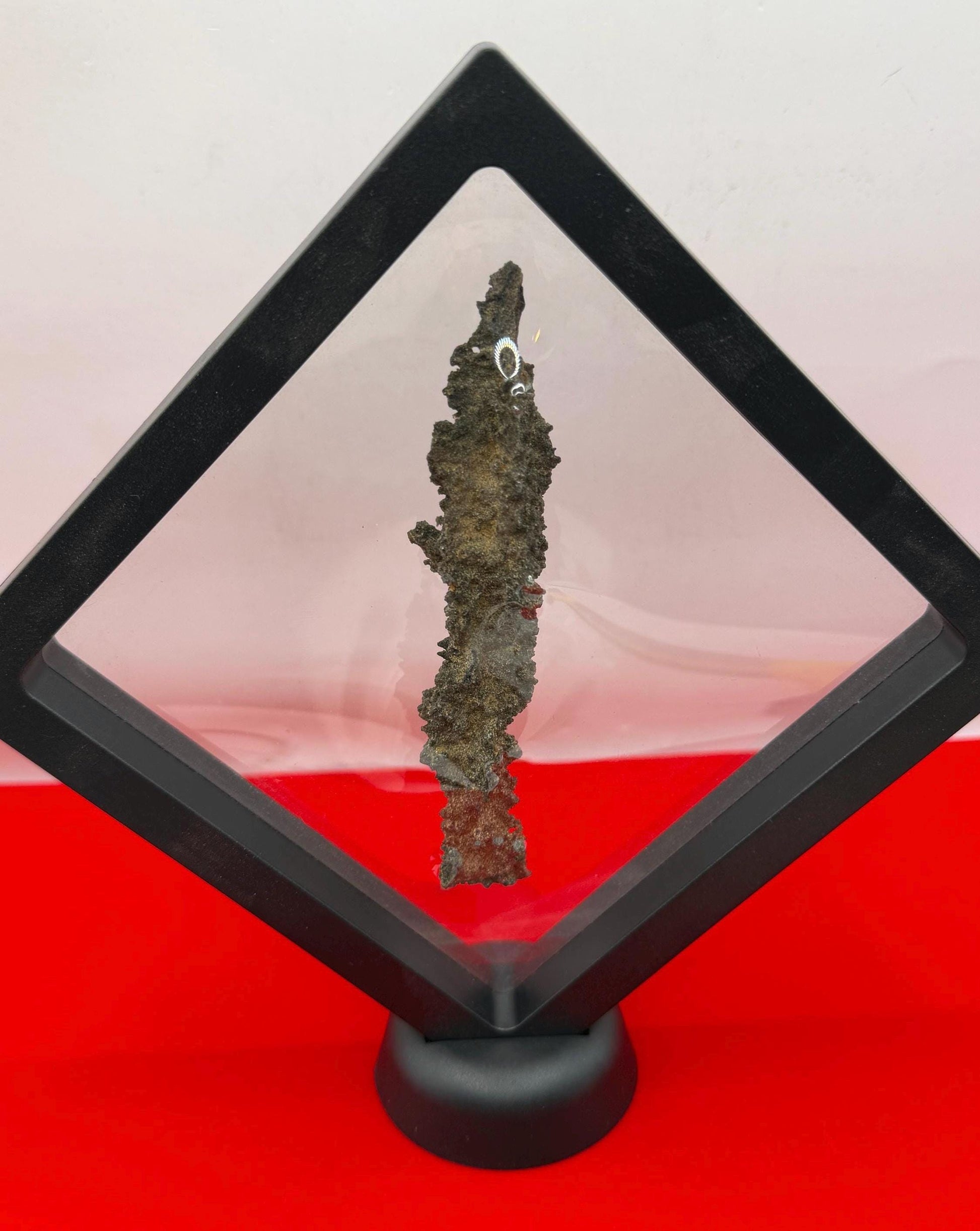 This genuine Fulgerite was formed when lightning struck the sandy dunes of the Sahara Desert, creating a beautiful and unique piece of natural art. This Fulgerite weighs 15.73 grams and is a true testament to the raw power of nature. The length is 4.25” long and 0.75” wide. This fulgerite comes with a display case and a velvet carrying bag.