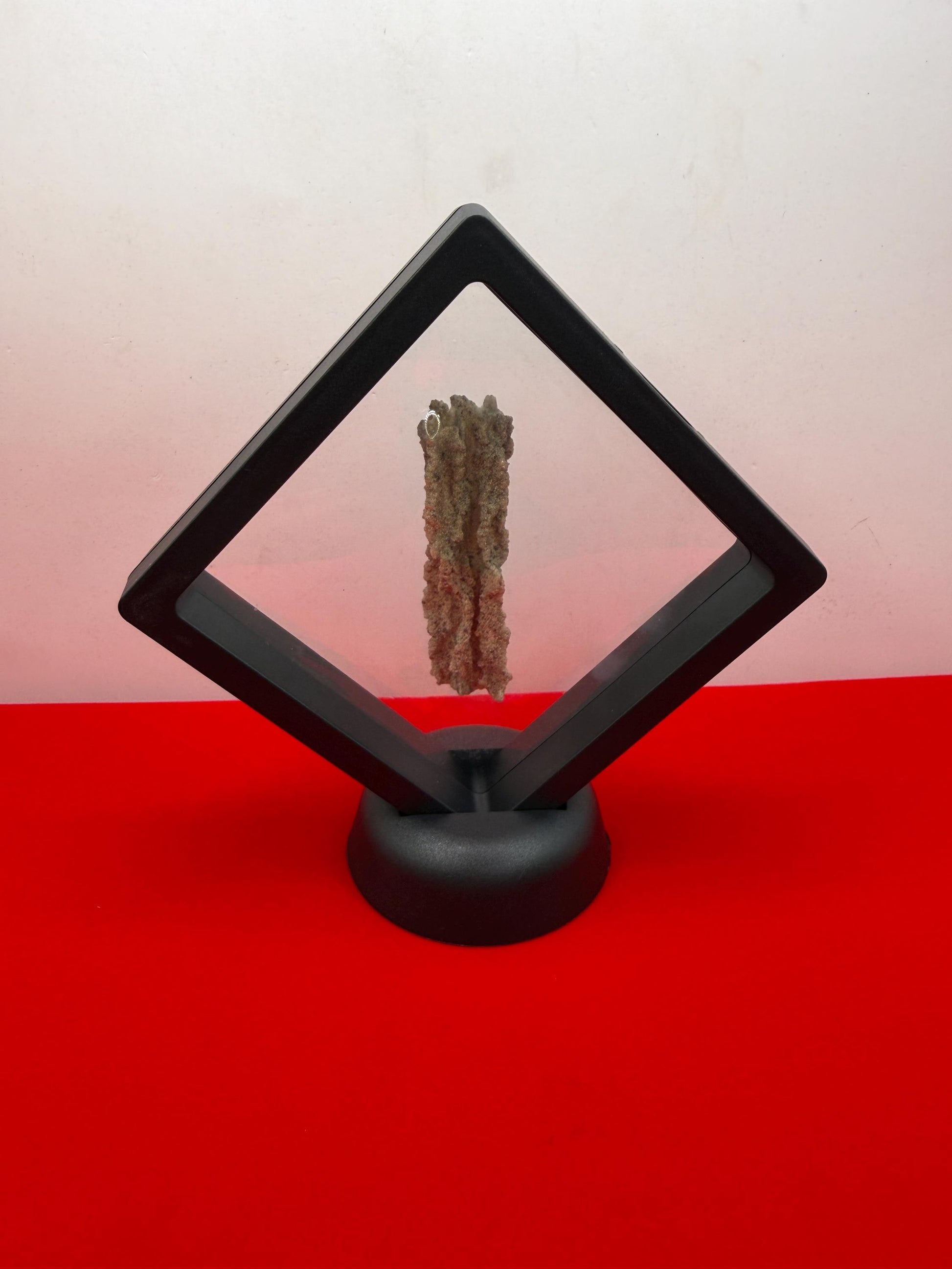 This genuine Fulgerite was formed when lightning struck the sandy dunes of the Sahara Desert, creating a beautiful and unique piece of natural art. This Fulgerite weighs 3.12 grams and is a true testament to the raw power of nature. The length is 2.0” long and 0.50” wide. This fulgerite comes with a display case and a velvet carrying bag.