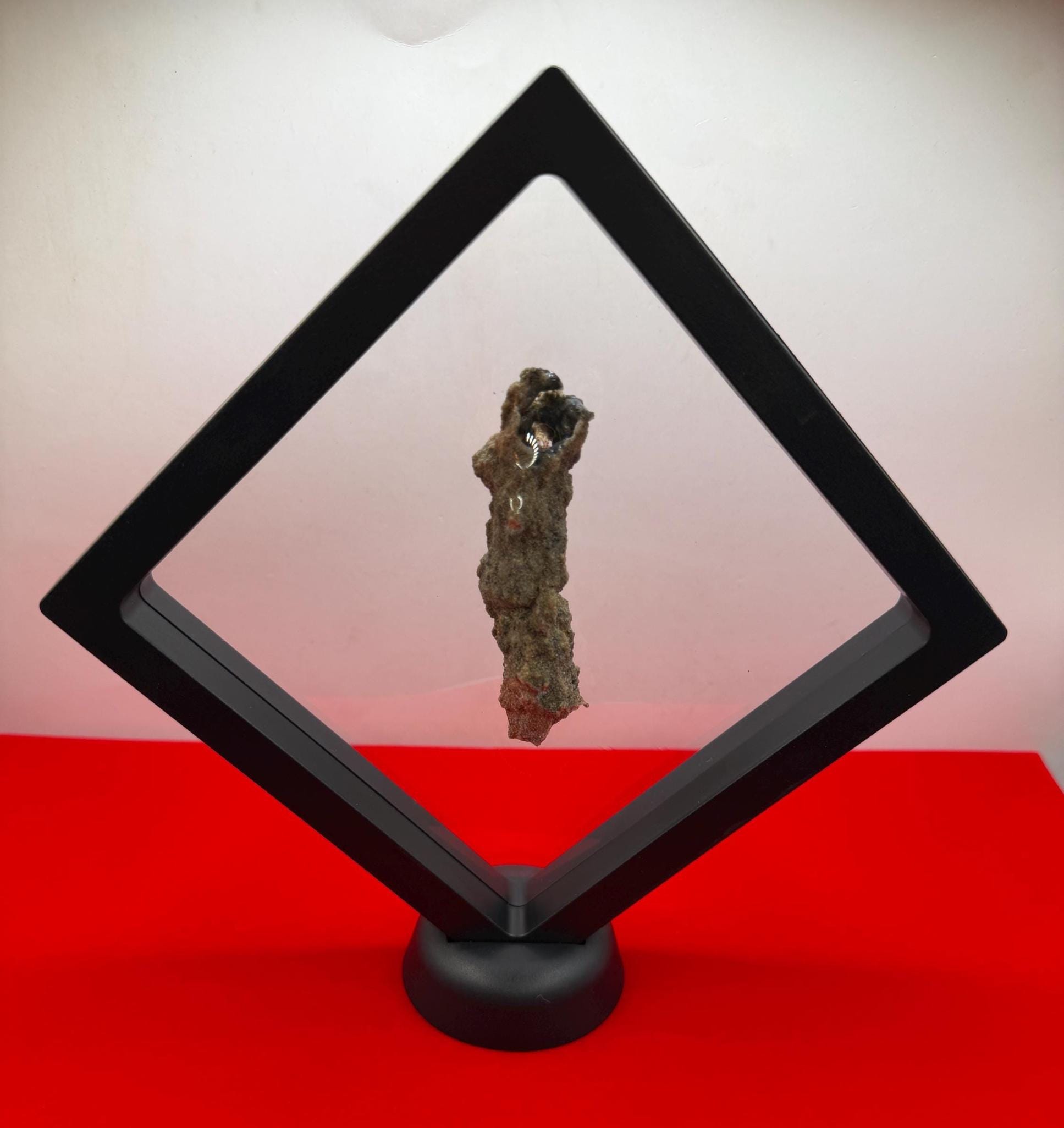 This genuine Fulgerite was formed when lightning struck the sandy dunes of the Sahara Desert, creating a beautiful and unique piece of natural art. This Fulgerite weighs 8.99 grams and is a true testament to the raw power of nature. The length is 3.0” long and 0.75” wide. This fulgerite comes with a display case and a velvet carrying bag.