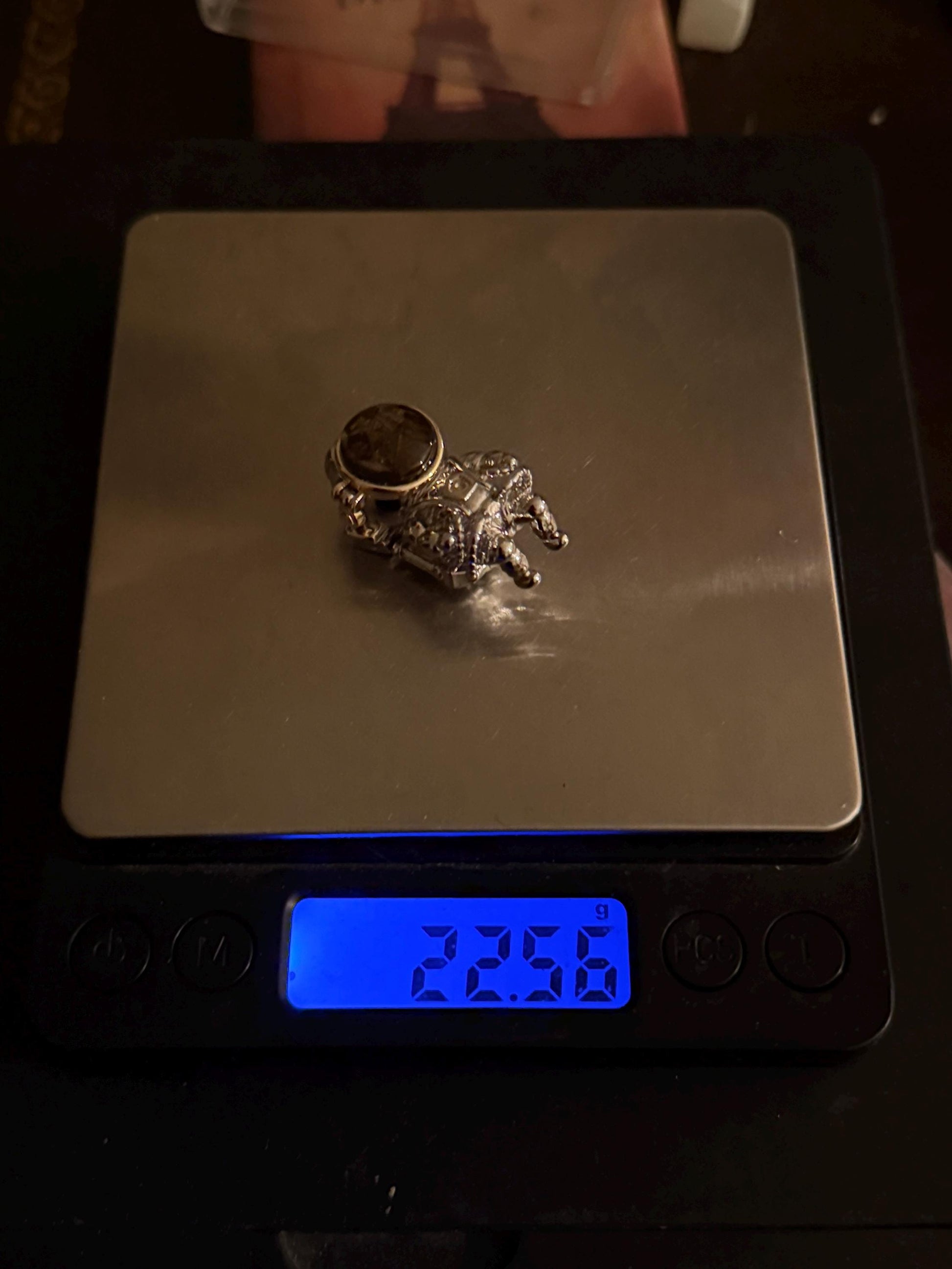Step into the cosmos with this one-of-a-kind Stainless Steel Spaceman Pendant featuring a genuine Sericho Pallasite Meteorite as the helmet face. The facemask opens with a little hidden compartment. This unique design beautifully combines earthly craftsmanship with extraterrestrial wonder, making it the perfect gift for collectors, space lovers, or anyone who appreciates truly rare jewelry.