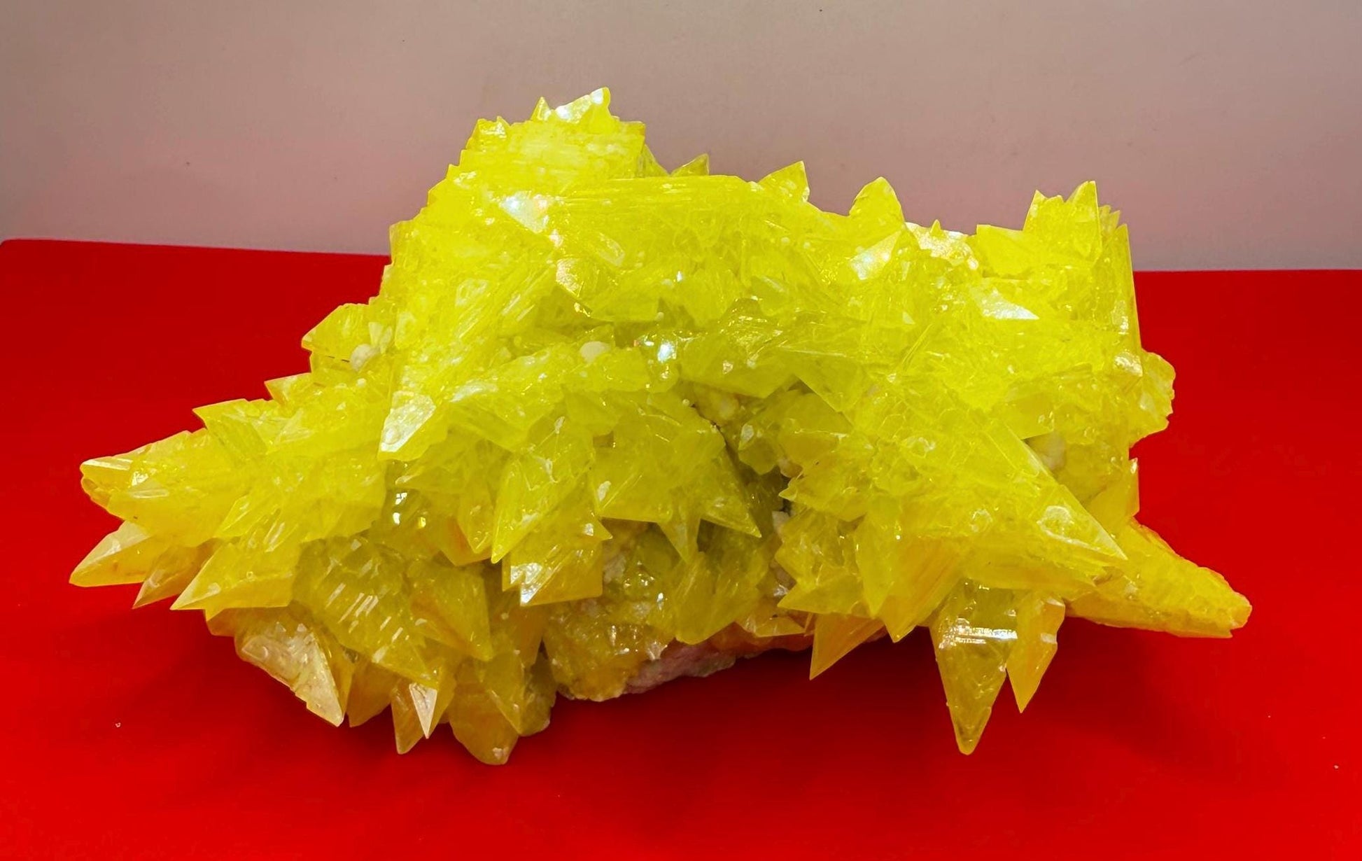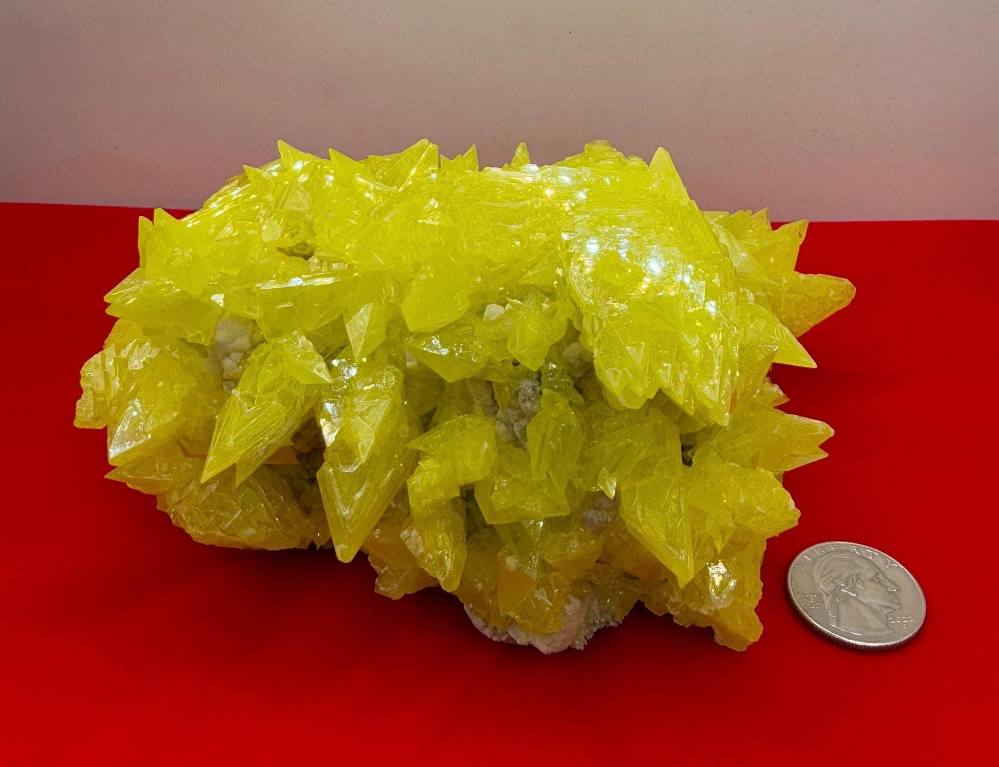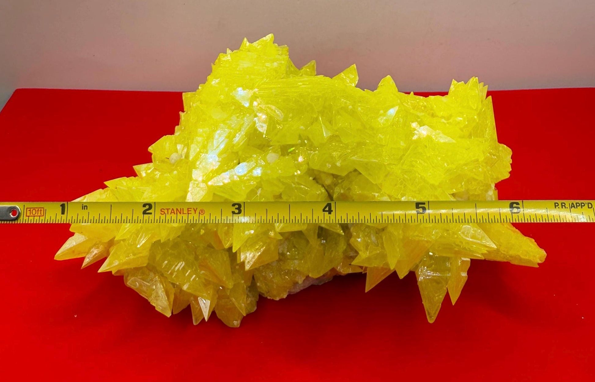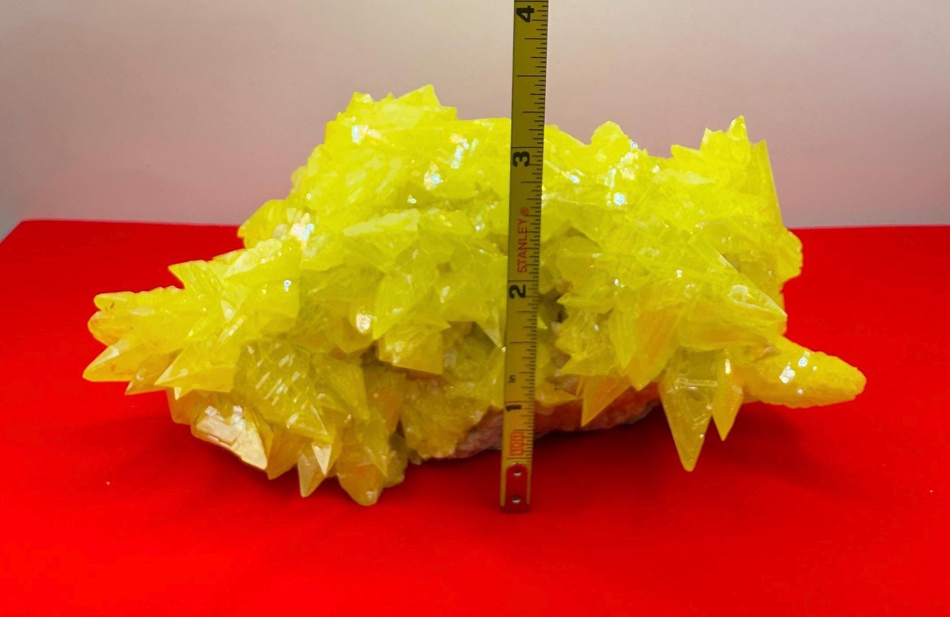 Whether you are a collector, a geology enthusiast, or someone seeking the metaphysical advantages of sulfur, this crystal specimen is an exceptional find. Its striking appearance and substantial size make it a standout piece for display, while its reputed metaphysical properties offer a source of positive energy and transformation. Don't miss the opportunity to own this unique and radiant sulfur crystal.