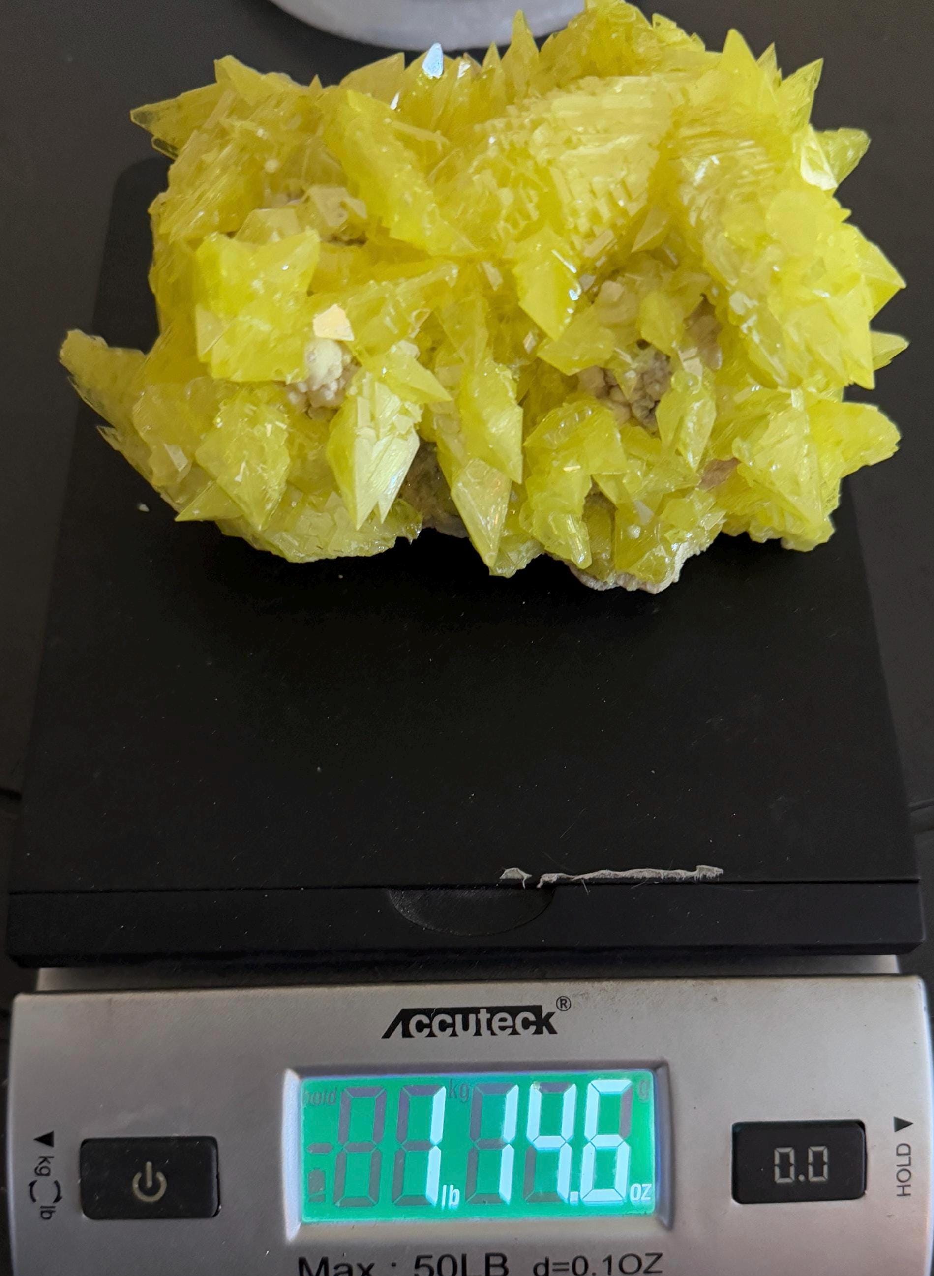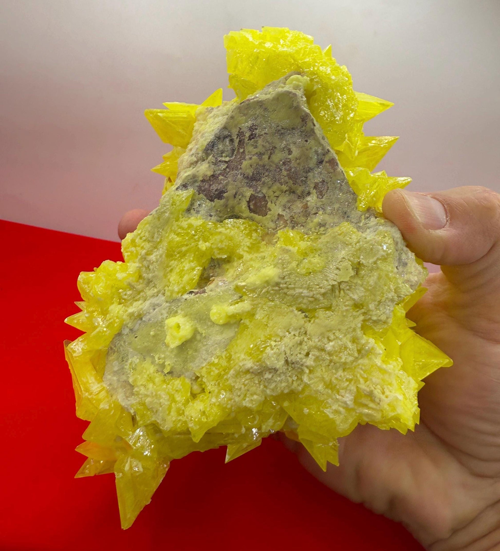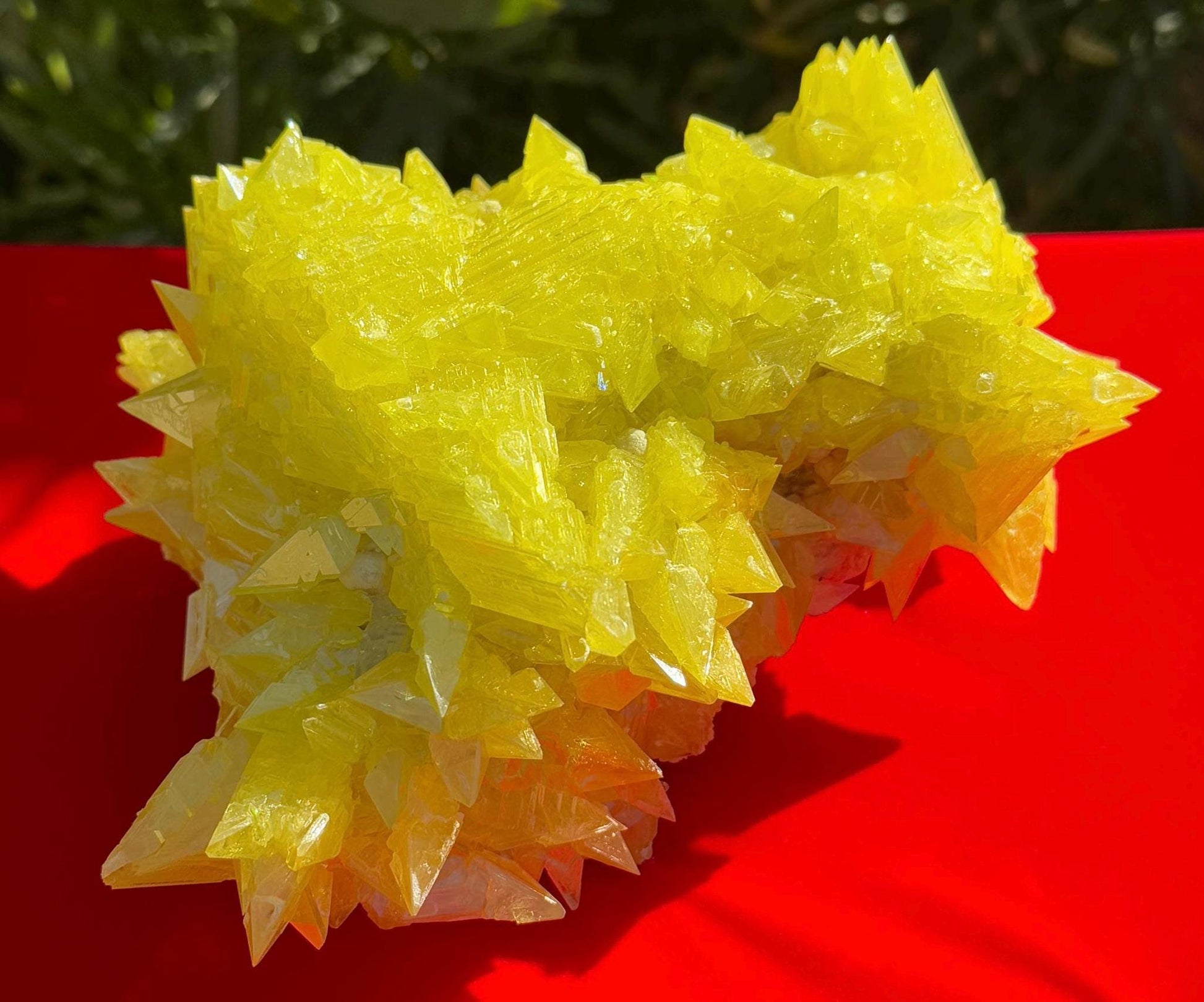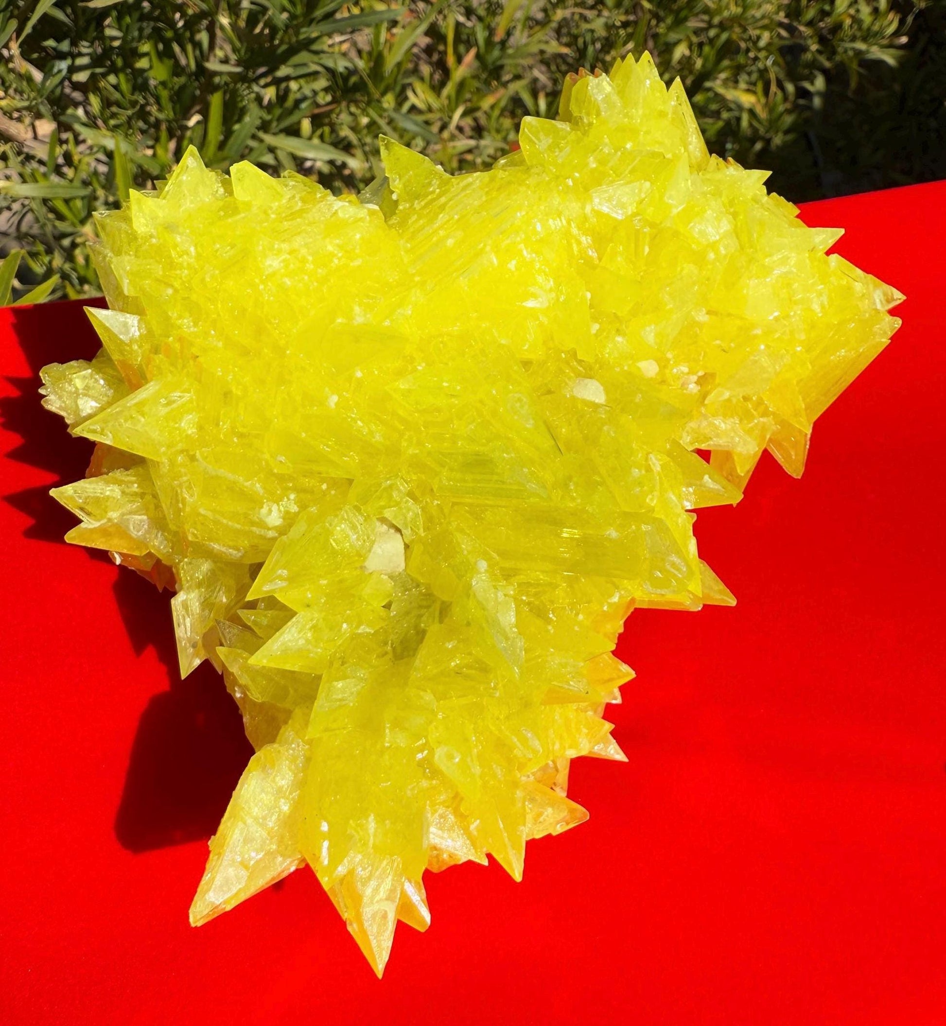 Whether you are a collector, a geology enthusiast, or someone seeking the metaphysical advantages of sulfur, this crystal specimen is an exceptional find. Its striking appearance and substantial size make it a standout piece for display, while its reputed metaphysical properties offer a source of positive energy and transformation. Don't miss the opportunity to own this unique and radiant sulfur crystal.