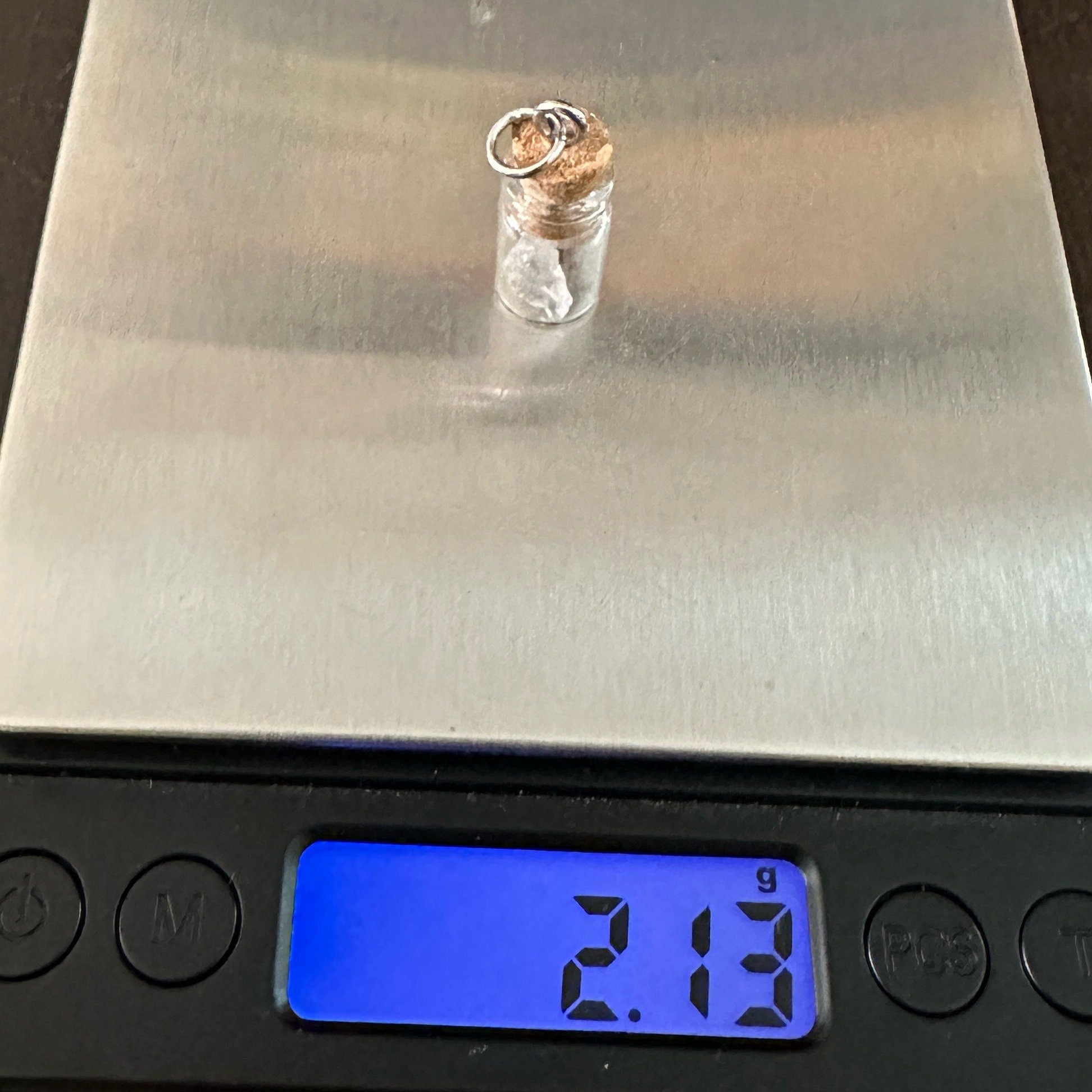 Introducing our exquisite Mars Meteorite in a Bottle Pendant, a unique piece of jewelry that brings the mysteries of the cosmos into your everyday life. Encased in a delicate glass bottle, this tiny fragment of the Red Planet is a rare treasure, offering a tangible connection to the celestial bodies beyond our Earth. This meteorite originated from the surface of Mars, ejected into space by ancient volcanic activity or impact events, and eventually finding its way to our planet.