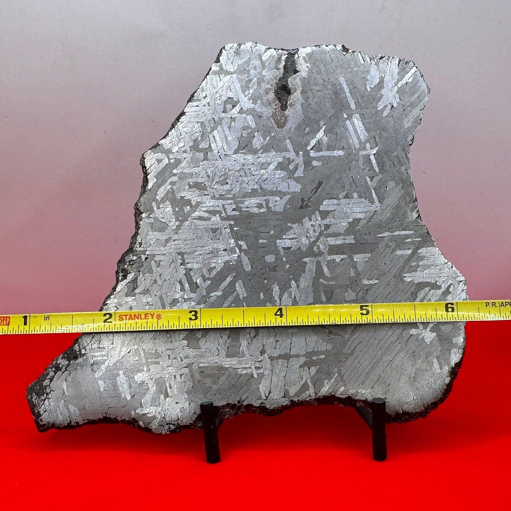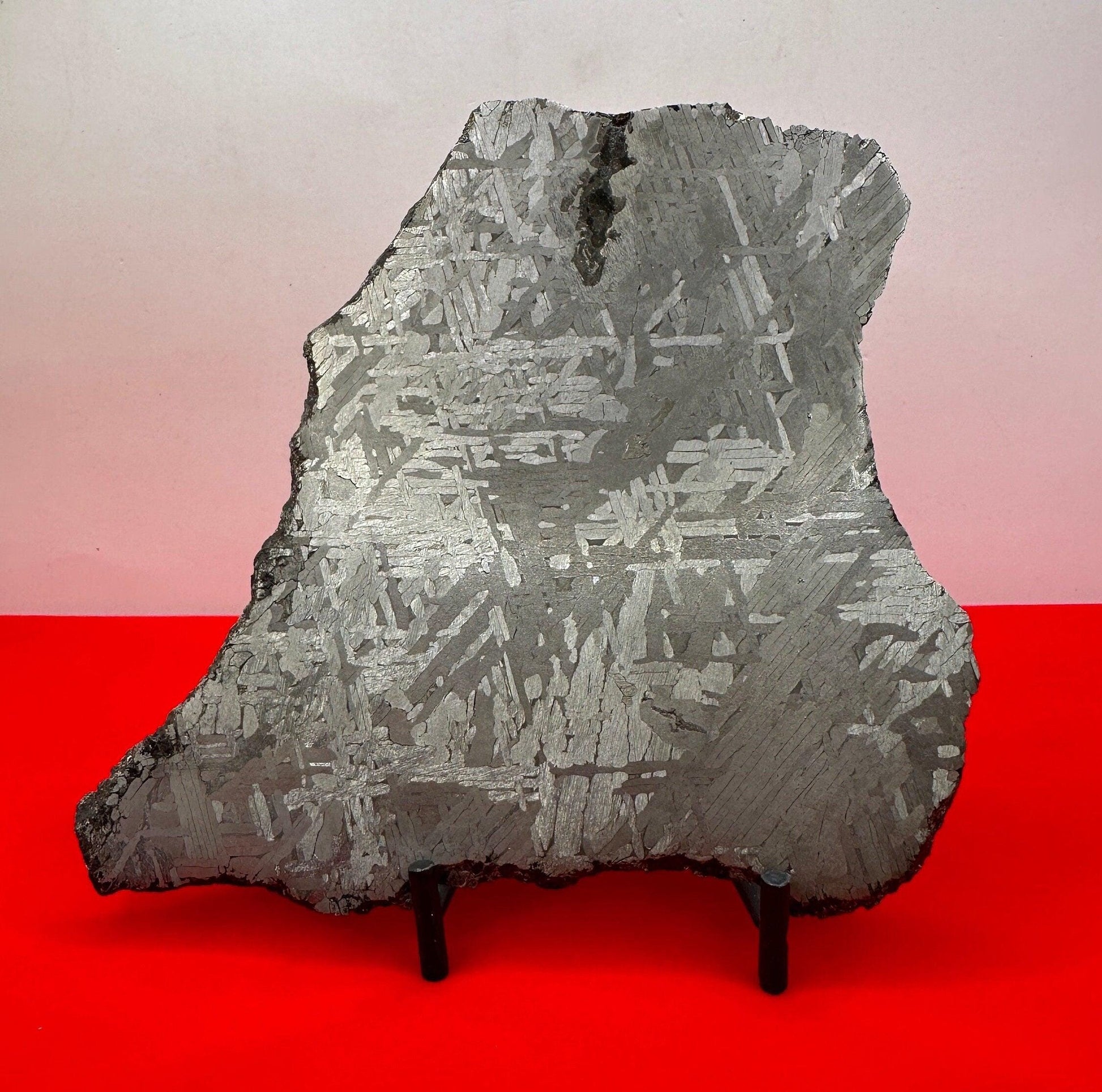 Presenting a stunning 235.32-gram etched and polished slice of the Toluca Meteorite, an extraordinary addition to any collection. This exquisite specimen showcases the unique crystalline patterns that only an expertly etched meteorite can reveal, offering a glimpse into the cosmic history of our solar system. Accompanied by a custom cast iron stand, it is a display piece that speaks of both elegance and scientific intrigue. Each slice comes with a Certificate of Authenticity, ensuring its genuine extraterrestrial origin.