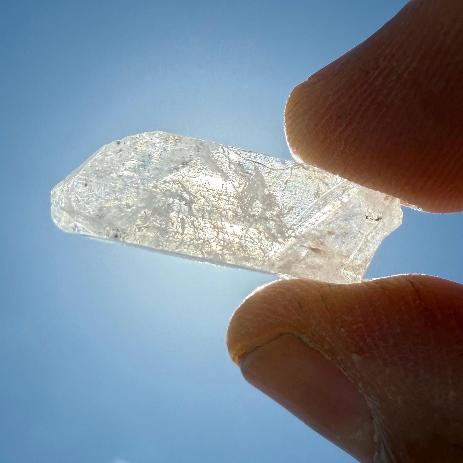 This stunning Top Quality Danburite Crystal weighs 2.48 grams (12.4 carats) and showcases exceptional clarity, brilliance, and luster. Ethically sourced from Mexico, this is a higher grade Danburite with natural terminations and mesmerizing internal rainbows that catch the light beautifully.