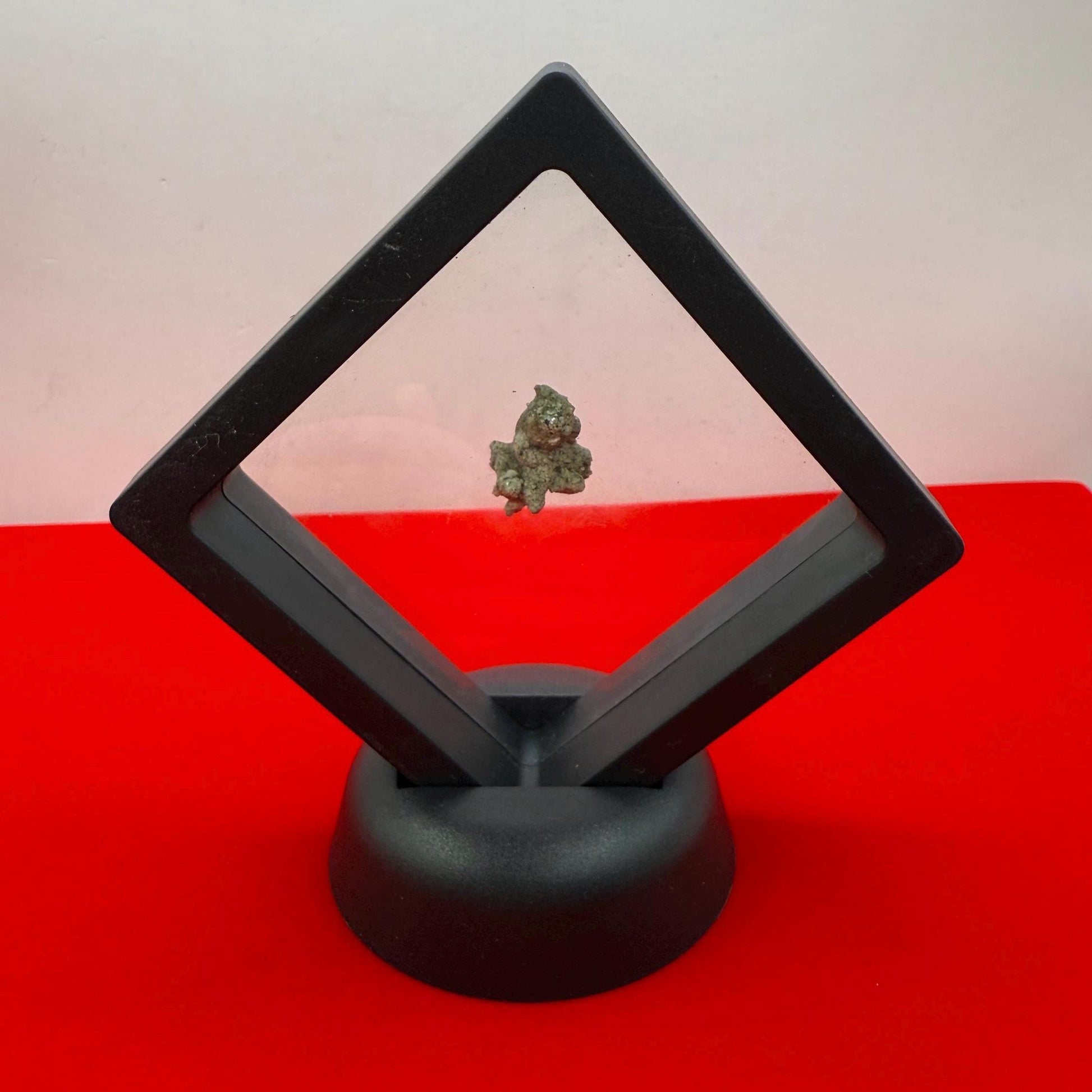 Discover a piece of history with this captivating Trinitite specimen, a rare and unique artifact formed from the world's first atomic bomb test. On July 16, 1945, in the desert of New Mexico, the U.S. conducted the Trinity test, which marked the dawn of the atomic age. The intense heat of the explosion melted the desert sand, creating this remarkable glass-like mineral, aptly named Trinitite. Each piece tells a story, encapsulating the fusion of nature and human ingenuity. This beautiful Trinitite Specimen comes with a display case and an information sheet. This beautiful Trinitite specimen weighs 0.73 grams. Trinitite is for scientific and educational purposes. An excellent addition to any collection.