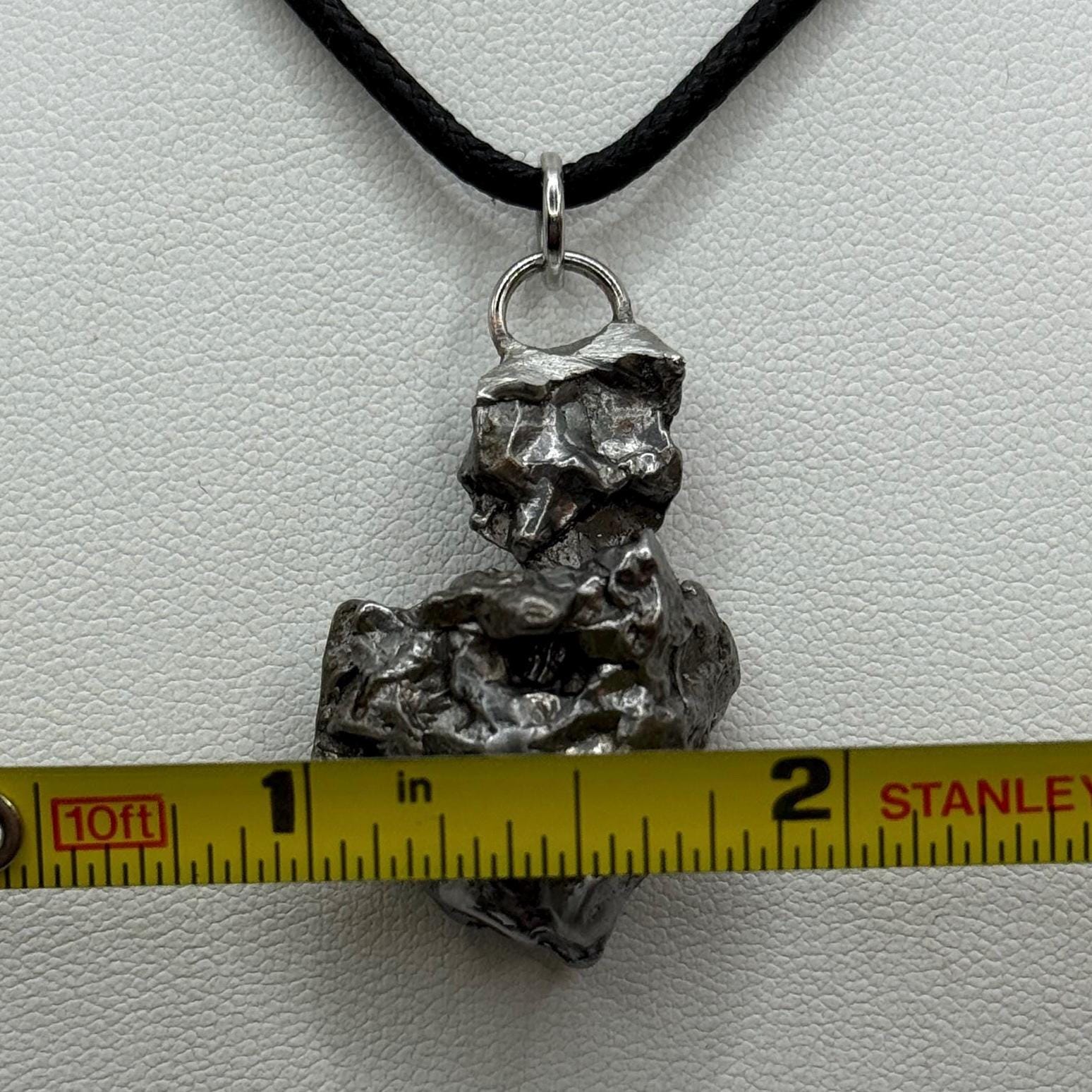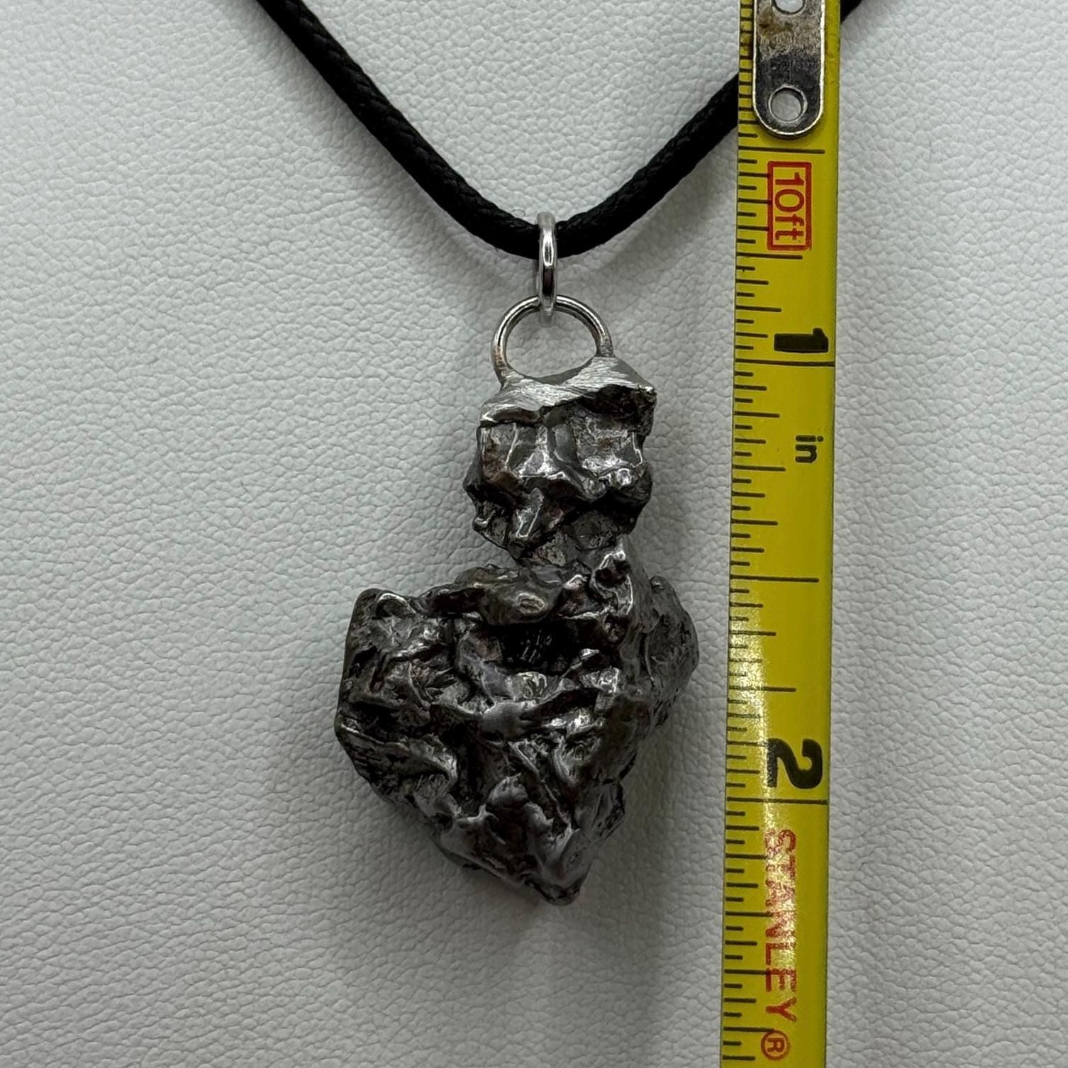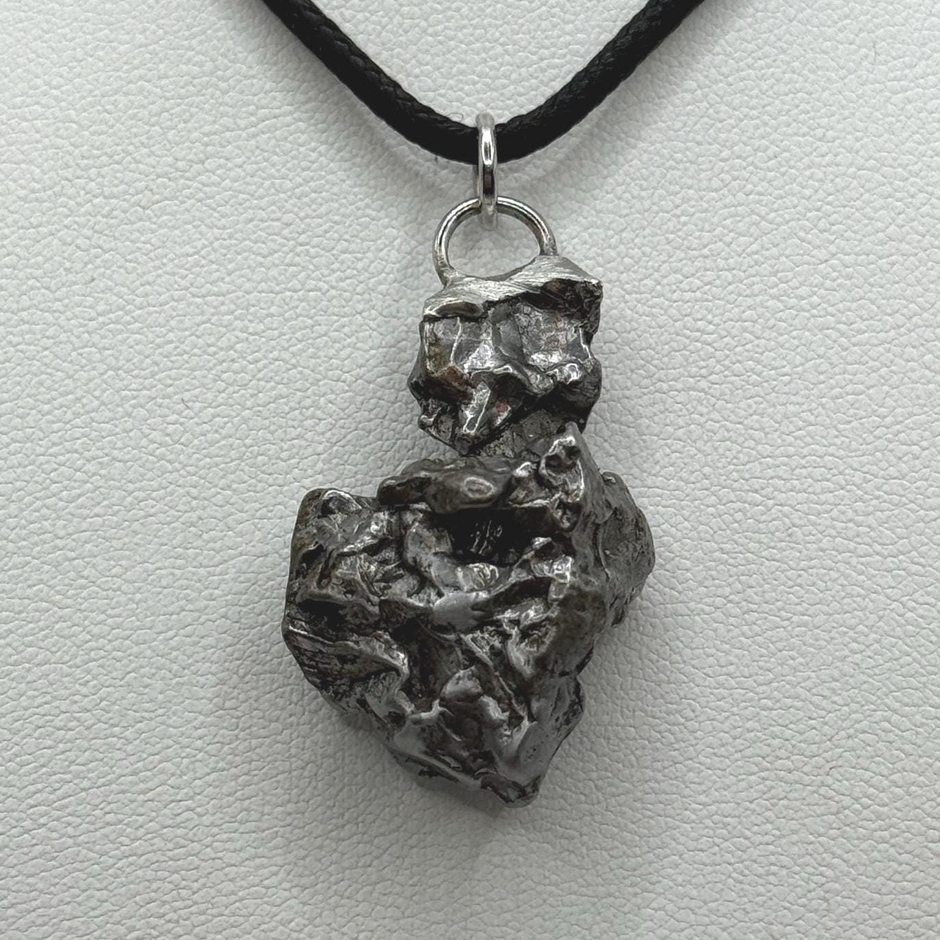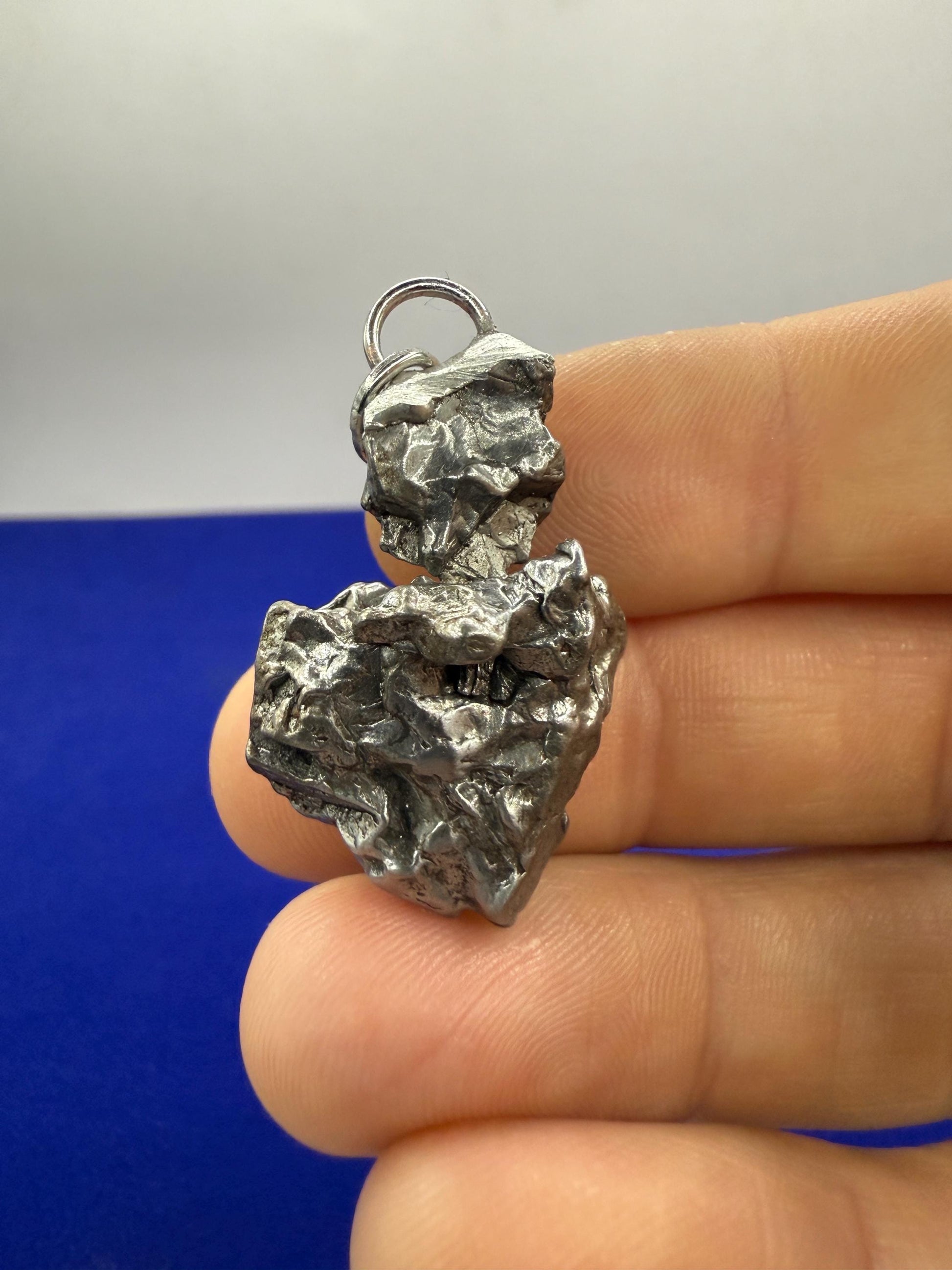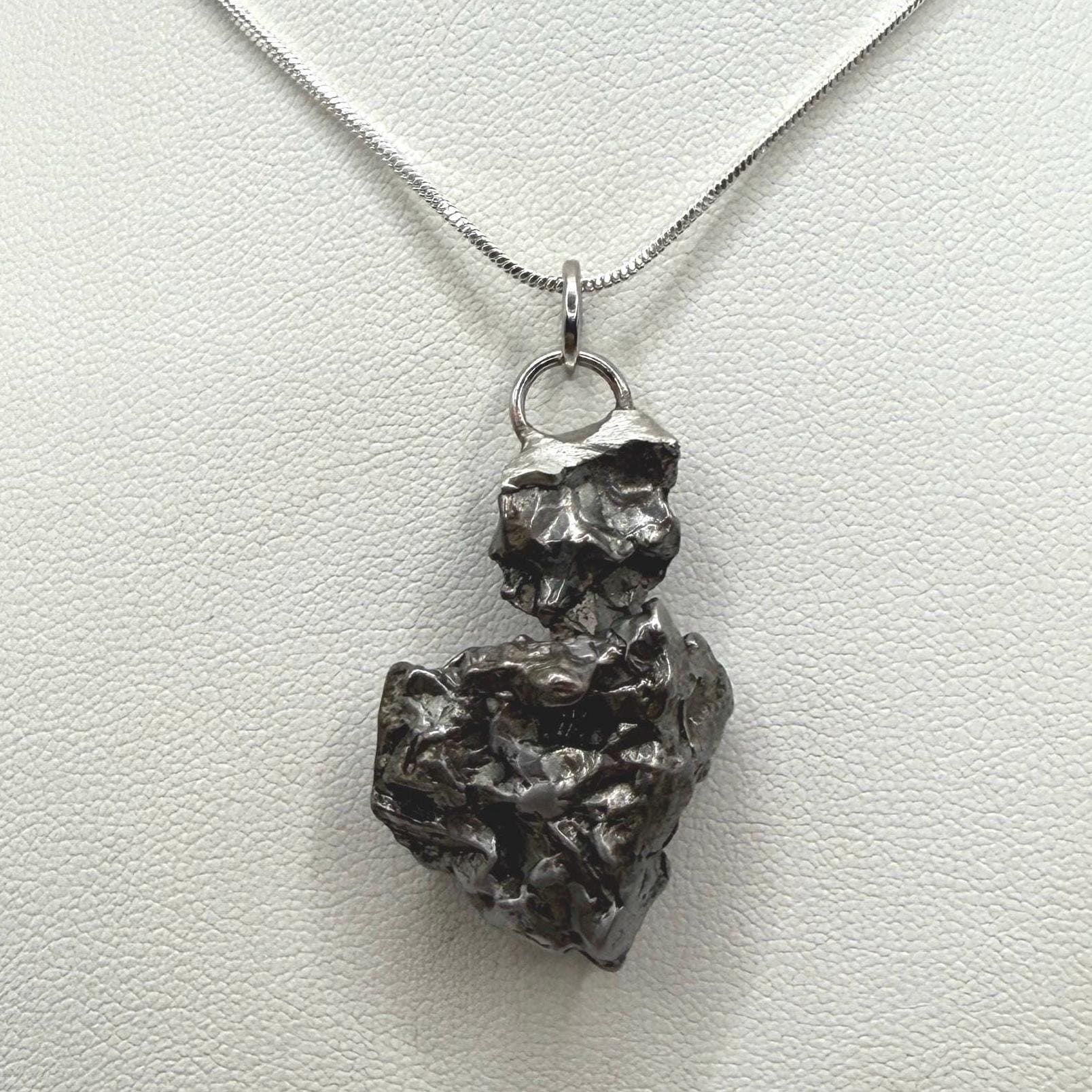 Unique Campo Del Cielo Meteorite Meteorite Pendant. This one has such a unique shape with amazing features. Has a unique shape with a rare moving part. (View in video). The weight is 16.84 grams the meteorite is 1.25” long and 0.75” wide. It comes with a complimentary 22” sterling silver snake chain or 20” leather necklace. The perfect unique gift for yourself or loved one. This meteorite is gorgeous, fully regmaglypted, with no rust! Looks amazing in the sunlight and will be sure to get attention. Free shipping!