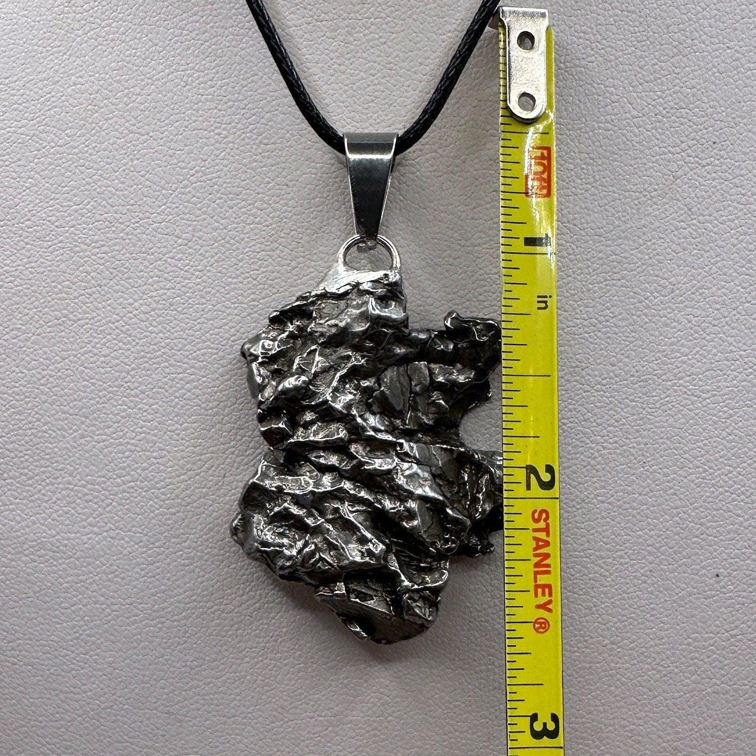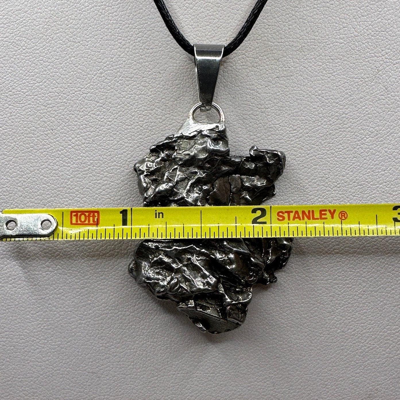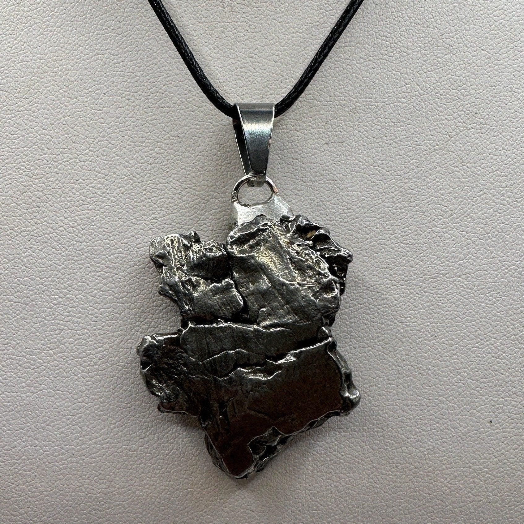 Unique Campo Del Cielo Meteorite Meteorite Pendant. This one has such a unique shape with amazing features. Has a unique shape with a rare moving part. (View in video). The weight is 36.17 grams the meteorite is 2.0” long and 1/2” wide. It comes with a complimentary 22” sterling silver snake chain or 20” leather necklace. The perfect unique gift for yourself or loved one. This meteorite is gorgeous, fully regmaglypted, with no rust! Looks amazing in the sunlight and will be sure to get attention. Free shipping!