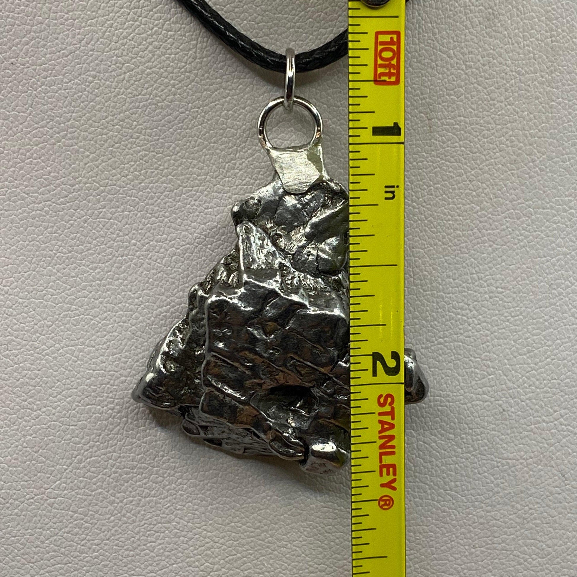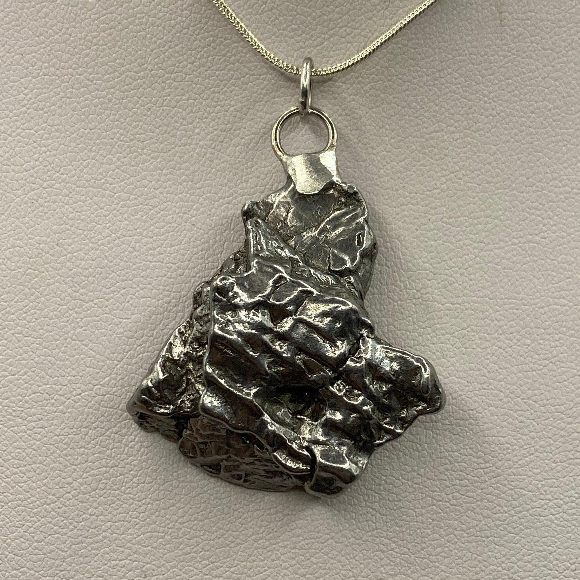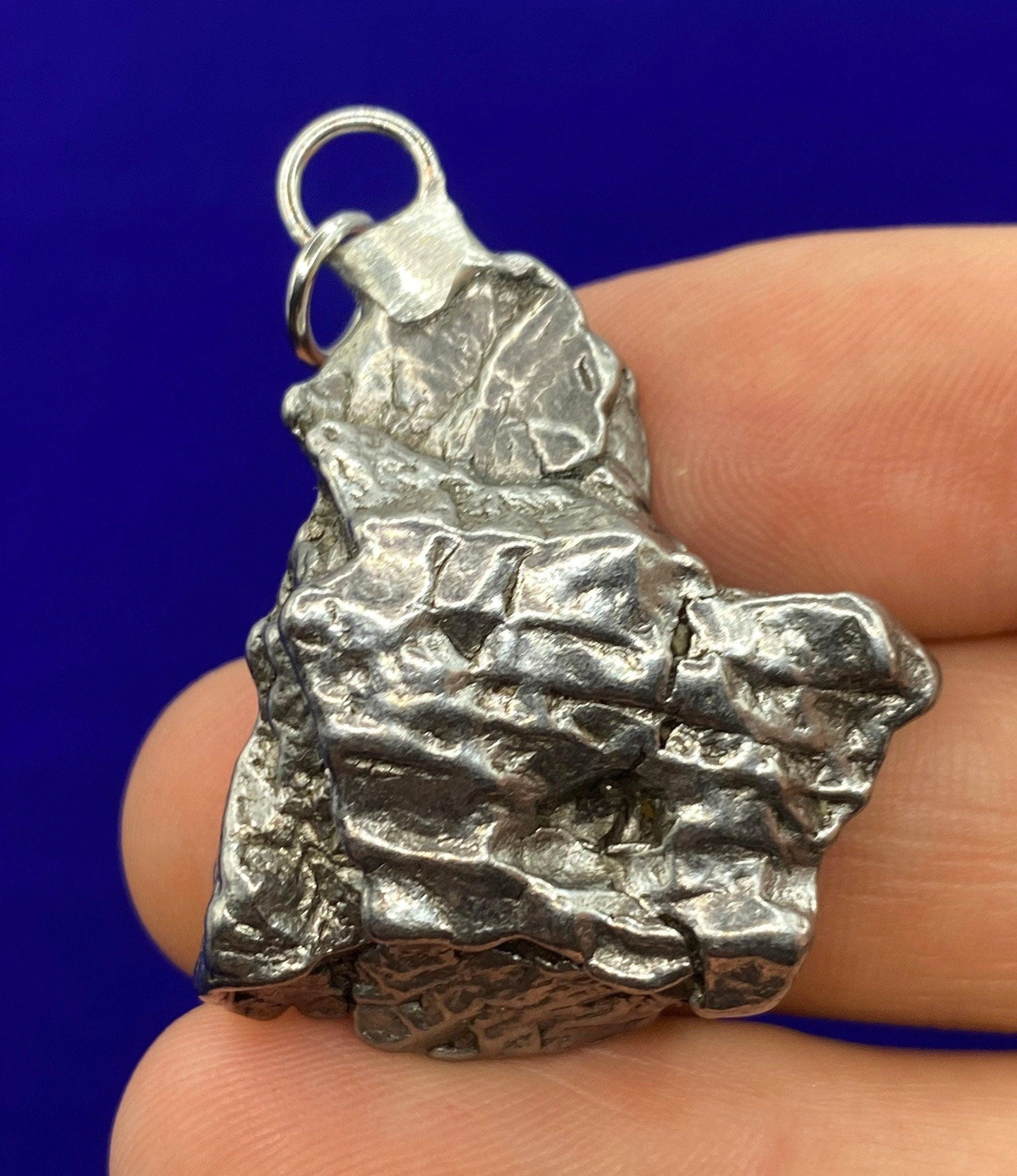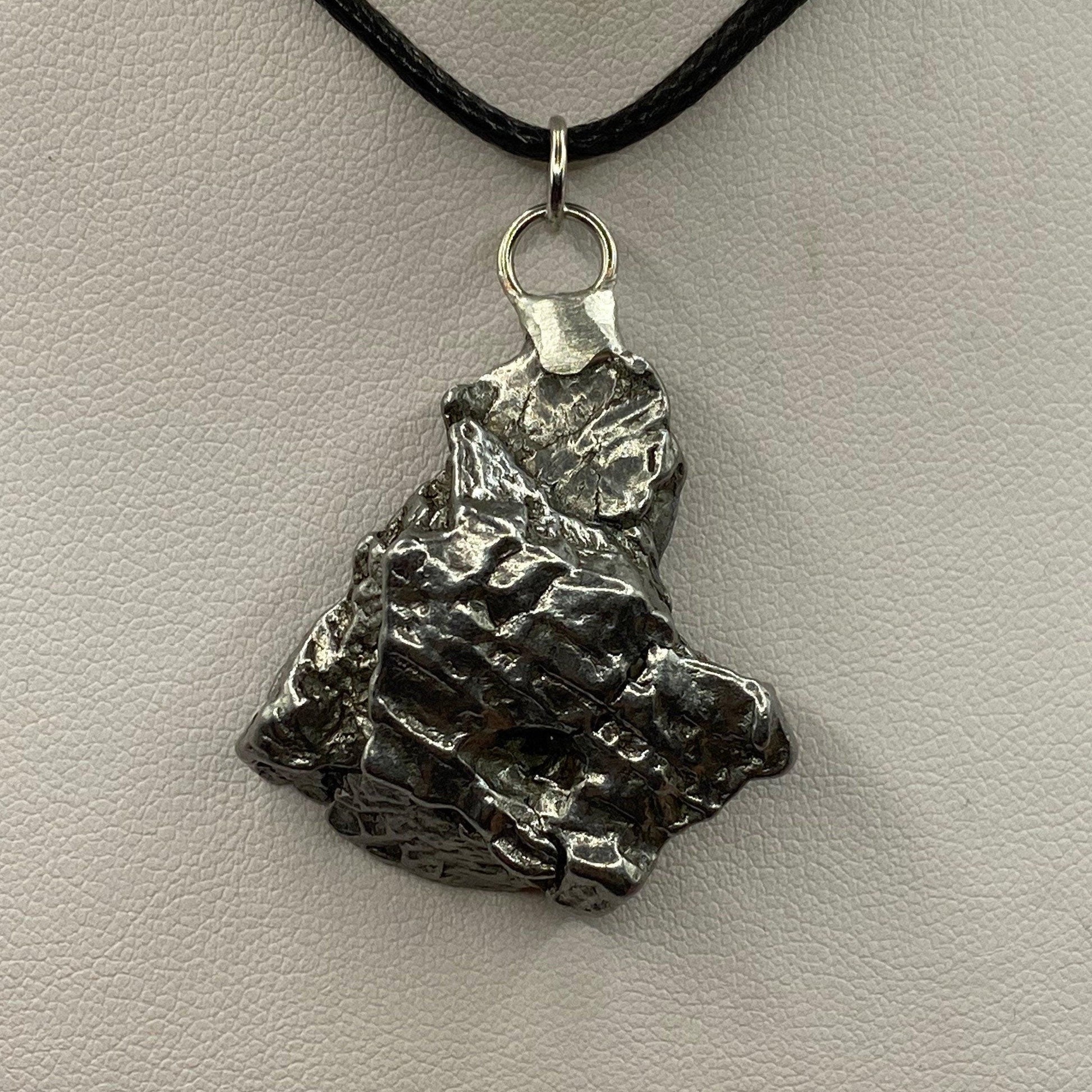 Unique Campo Del Cielo Meteorite Meteorite Pendant. This one has such a unique shape with amazing features. Has a unique shape with a smooth front and back. The weight is 28.62 grams the meteorite is just under 1.5” long and 1.25” wide. It comes with a complimentary 20”/24” sterling silver snake chain or 20” leather necklace, you choose. The perfect unique gift for yourself or loved one. This meteorite is gorgeous, fully regmaglypted, with no rust! Looks amazing in the sunlight and will be sure to get attention. Free shipping!