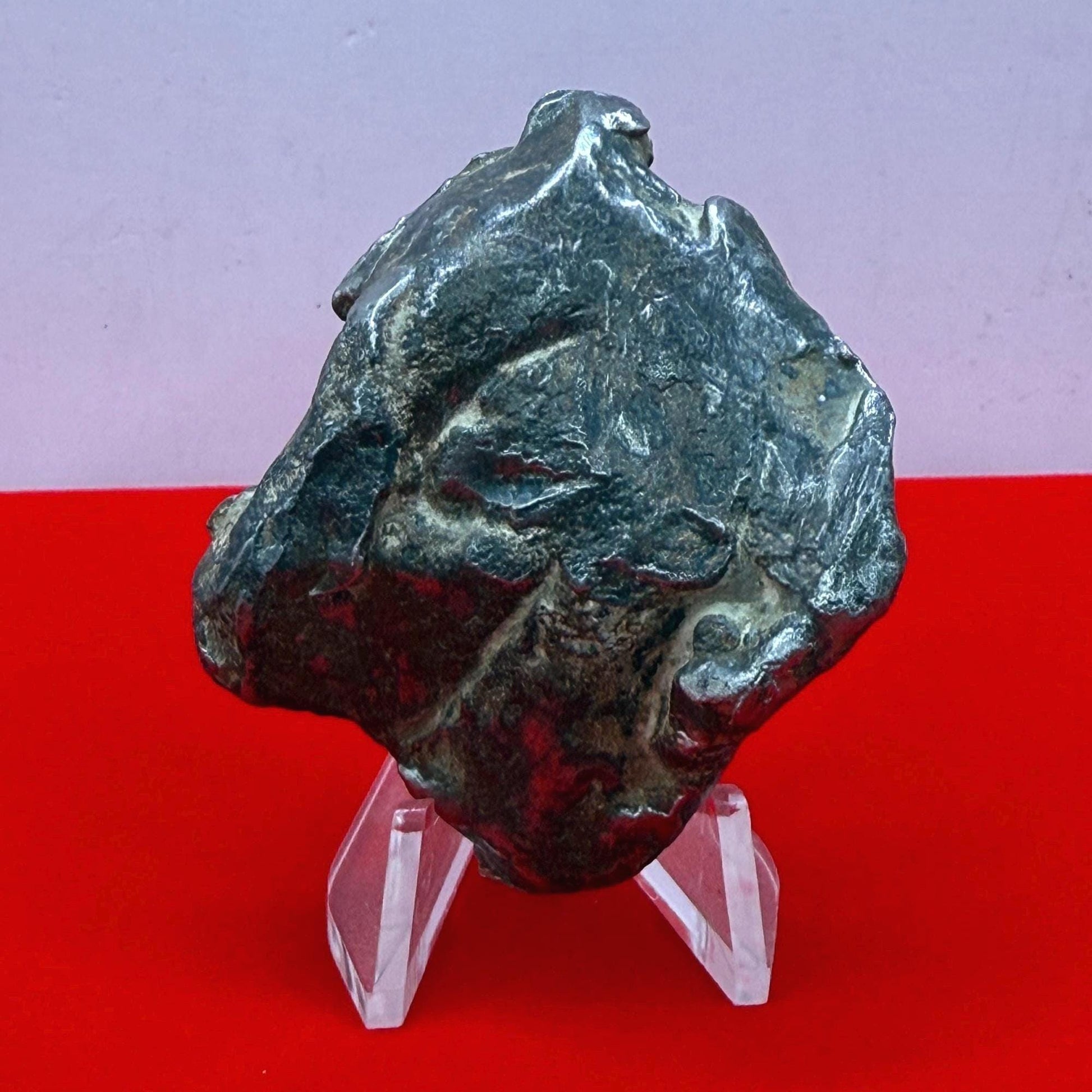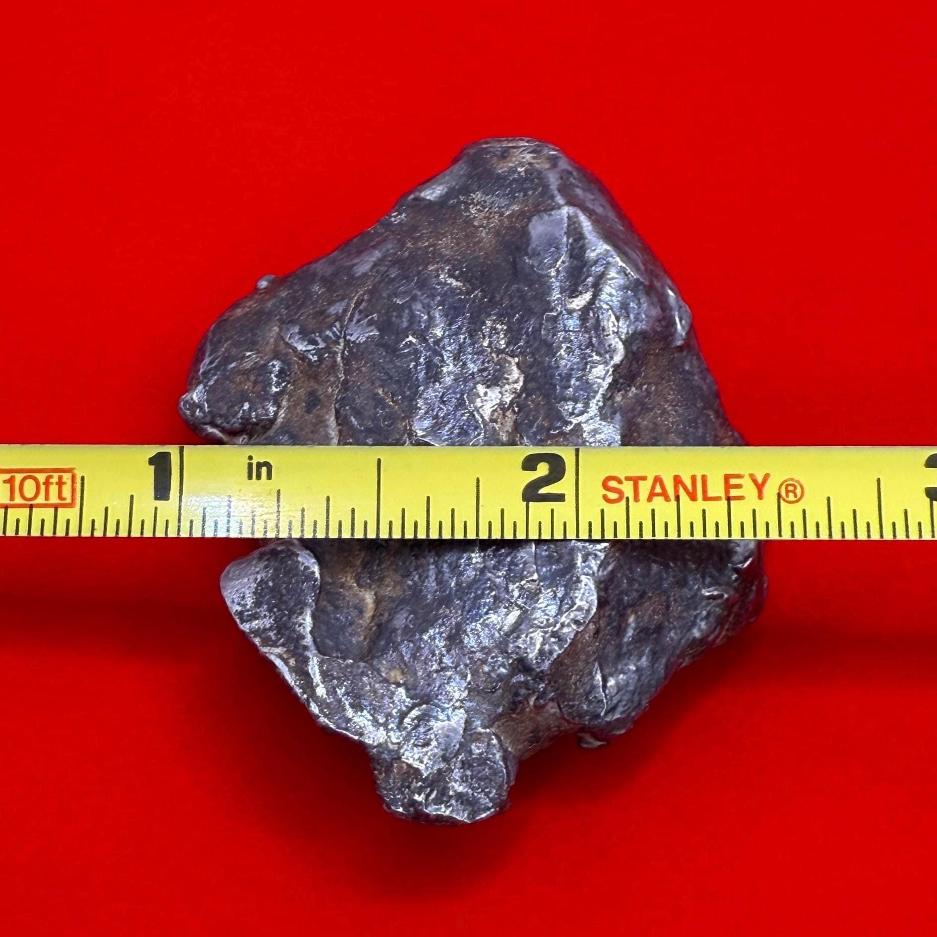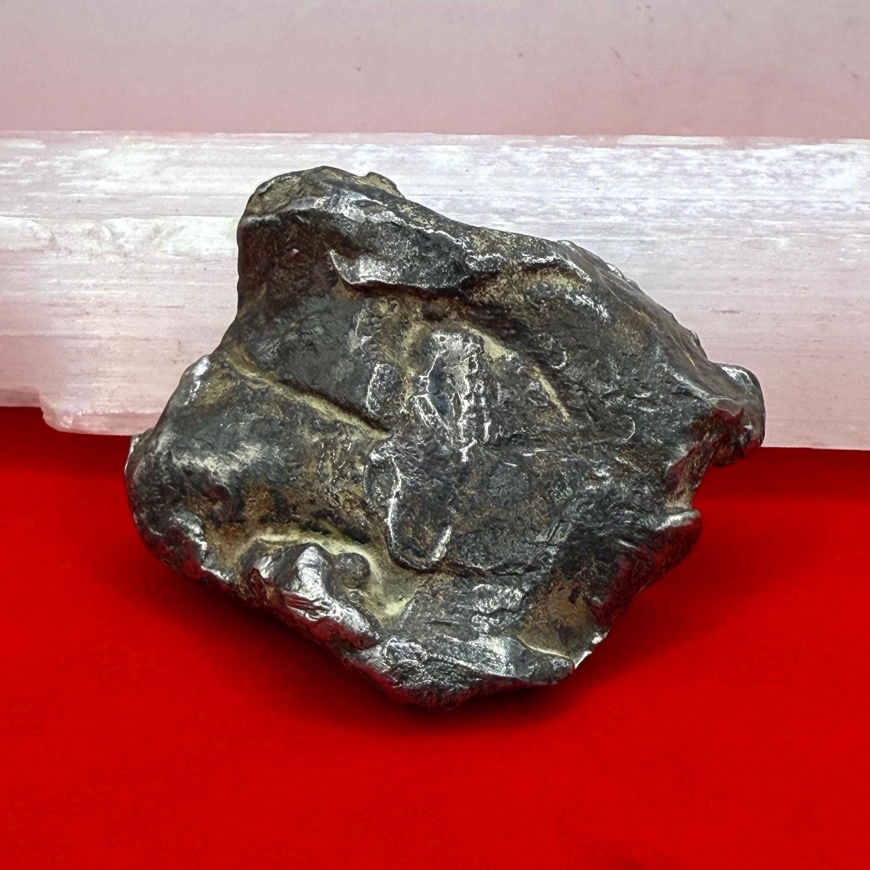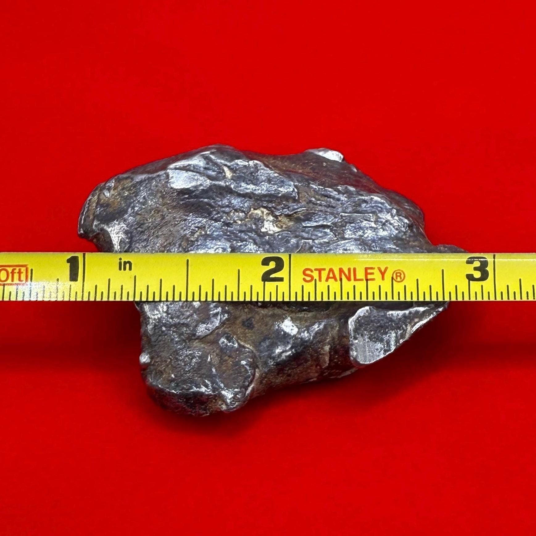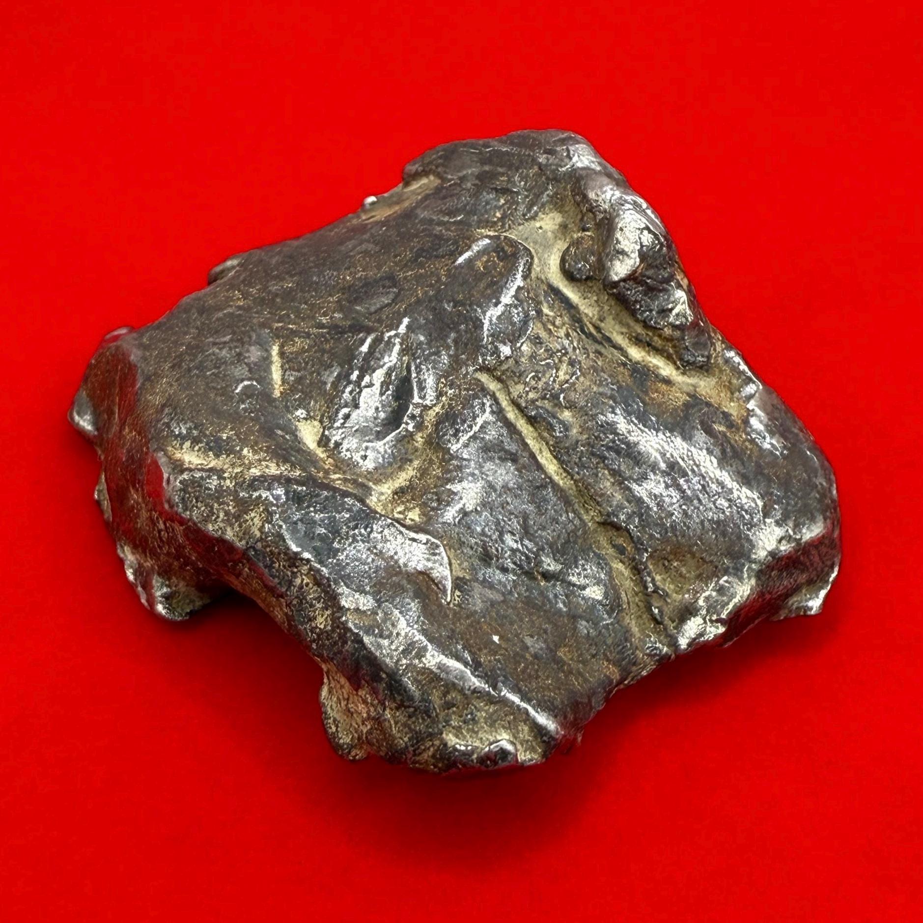 Dive into the wonders of the universe with this pristine, polished Gebel Kamil Iron Meteorite. Weighing a substantial 111.56 grams, this meteorite is a rare specimen from the strewn field discovered in the Egyptian Sahara. The Gebel Kamil meteorite is scientifically significant for its composition and formation. It belongs to the exclusive group of ataxite meteorites, characterized by a high nickel content and a lack of a traditional crystalline structure. This piece is not just a meteorite; it's a snapshot of the universe's history, making it an invaluable item for both collectors and scientific enthusiasts.