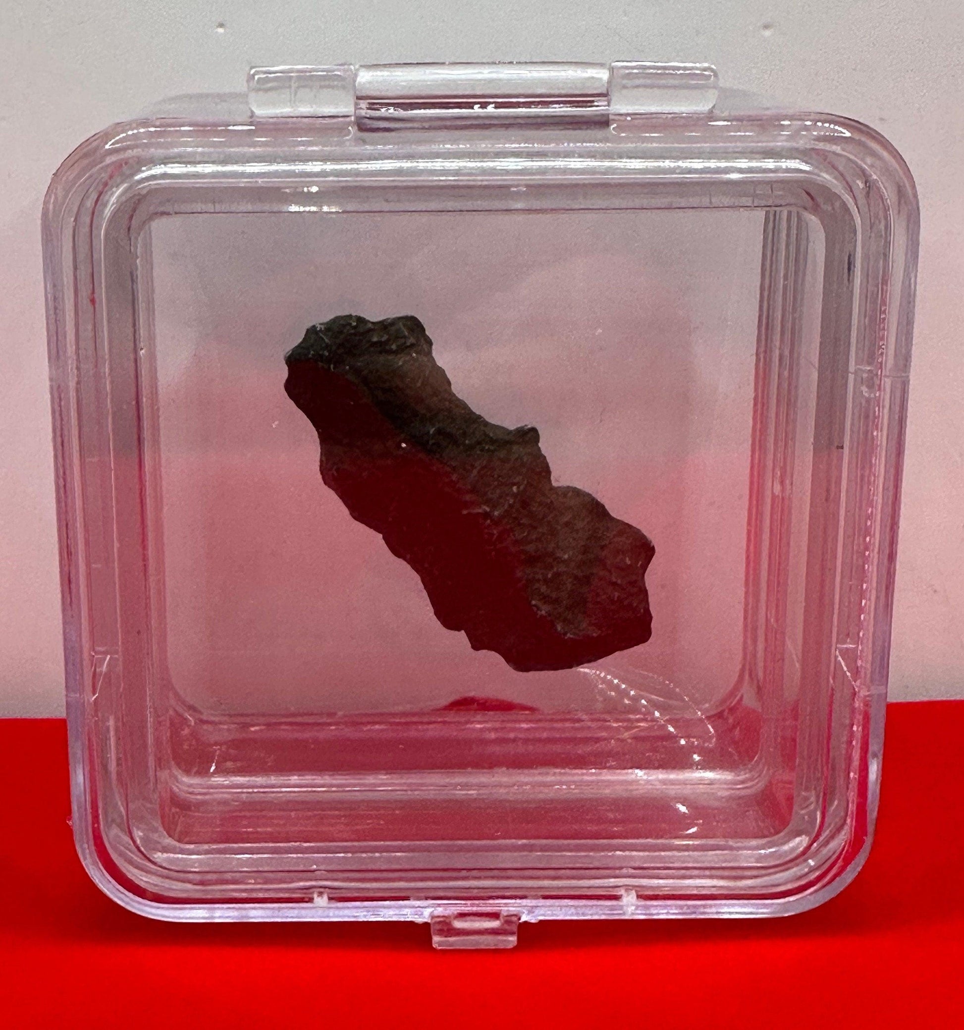 This is a Gebel Kamil Iron Meteorite Specimen from Egypt. Beautiful museum grade meteorite. The measurements of this meteorite are just over 1.75” long, 0.75” wide and the weight is 22.53 grams. Comes with a stand, a floating meteorite display case, certificate of authenticity and a velvet carrying bag.