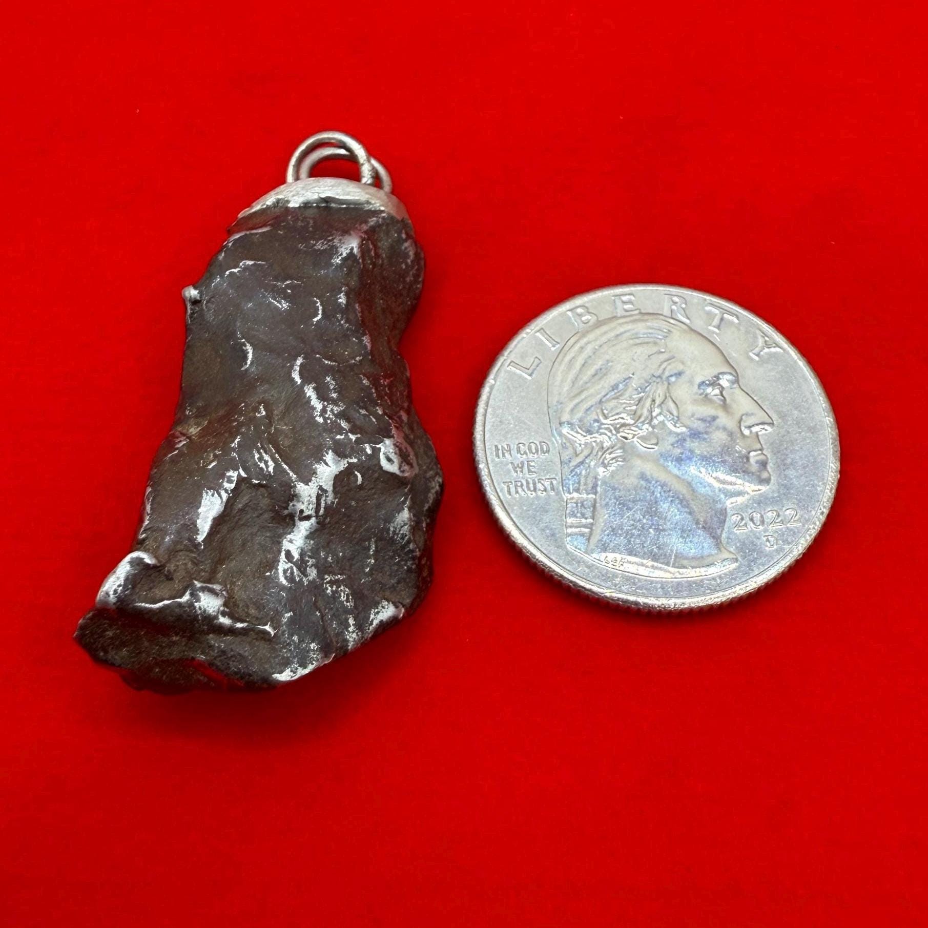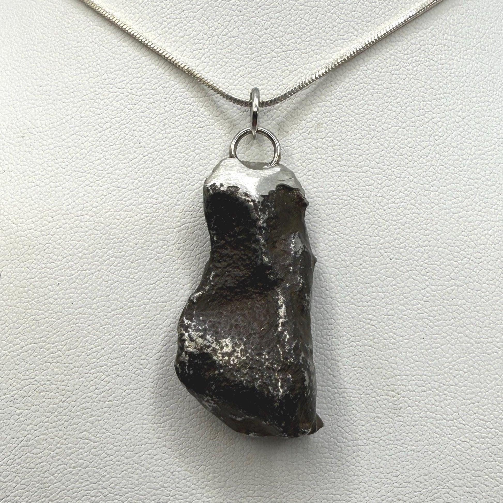 This stunning museum-grade Gebel Kamil Iron Meteorite Pendant is a true piece of cosmic history. Measuring approximately 1.25” long by 0.75” wide and weighing 25.19 grams, this natural fragment from outer space is a wearable relic of one of Earth’s lesser-known but significant impact events.