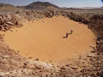 Roughly 5,000 years ago, a massive iron meteorite struck the eastern Sahara Desert in southern Egypt, exploding upon impact and leaving behind the Kamil Crater—a rare, well-preserved crater surrounded by thousands of iron fragments. It wasn’t until February 19, 2009, that this site was rediscovered via satellite imagery and later confirmed by an Italian-Egyptian expedition. Altogether, about 1,600 kilograms (~3,600 pounds) of shrapnel were recovered.