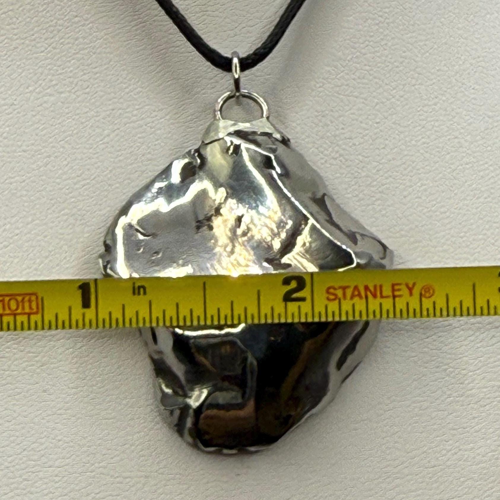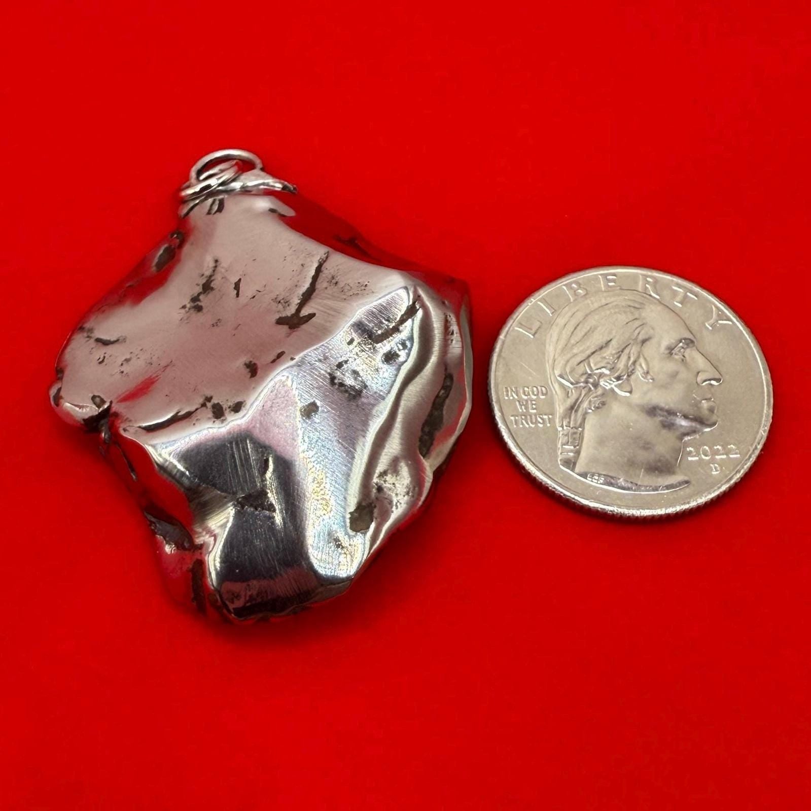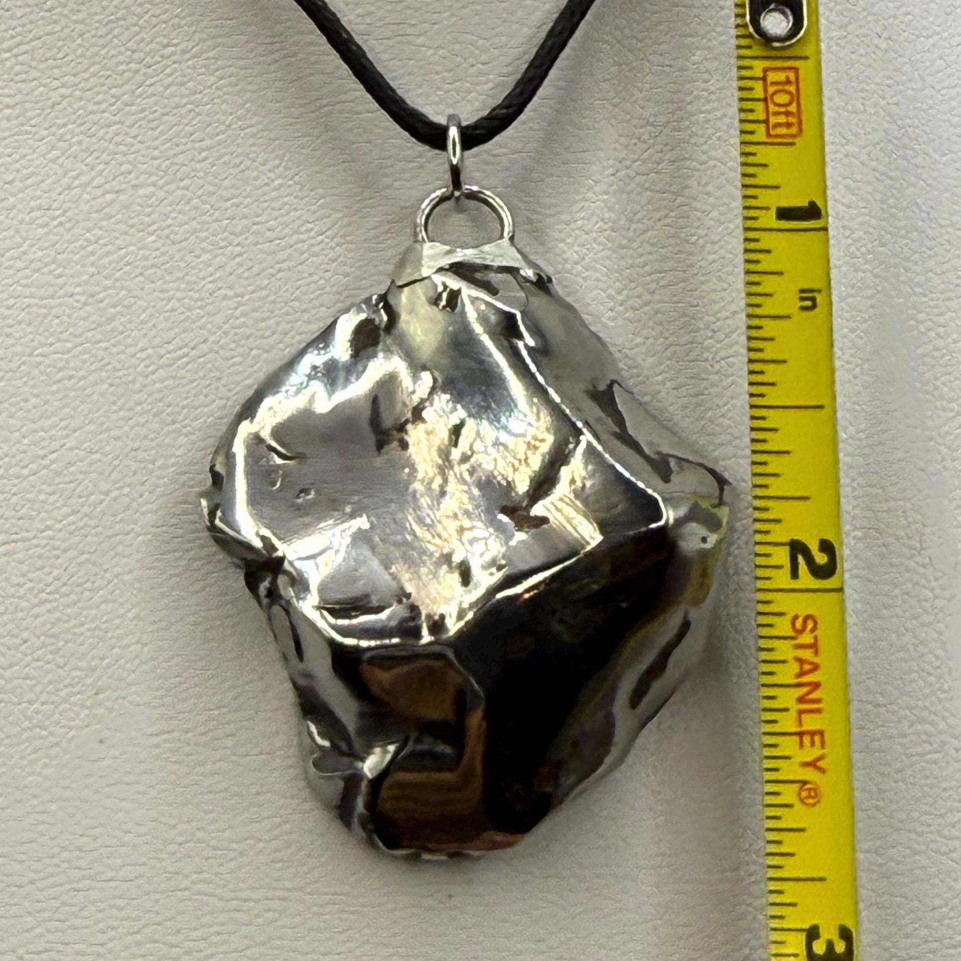 This stunning Gebel Kamil Iron Meteorite specimen from Egypt has been transformed into a one-of-a-kind, museum-grade pendant, perfect for any collector or cosmic enthusiast. It measures approximately 1.75” long by 1.25” wide and weighs 50.10 grams. Suspended on a complimentary 20” silver snake chain, it’s ready to wear or display. A Certificate of Authenticity (COA) is also included with your purchase.