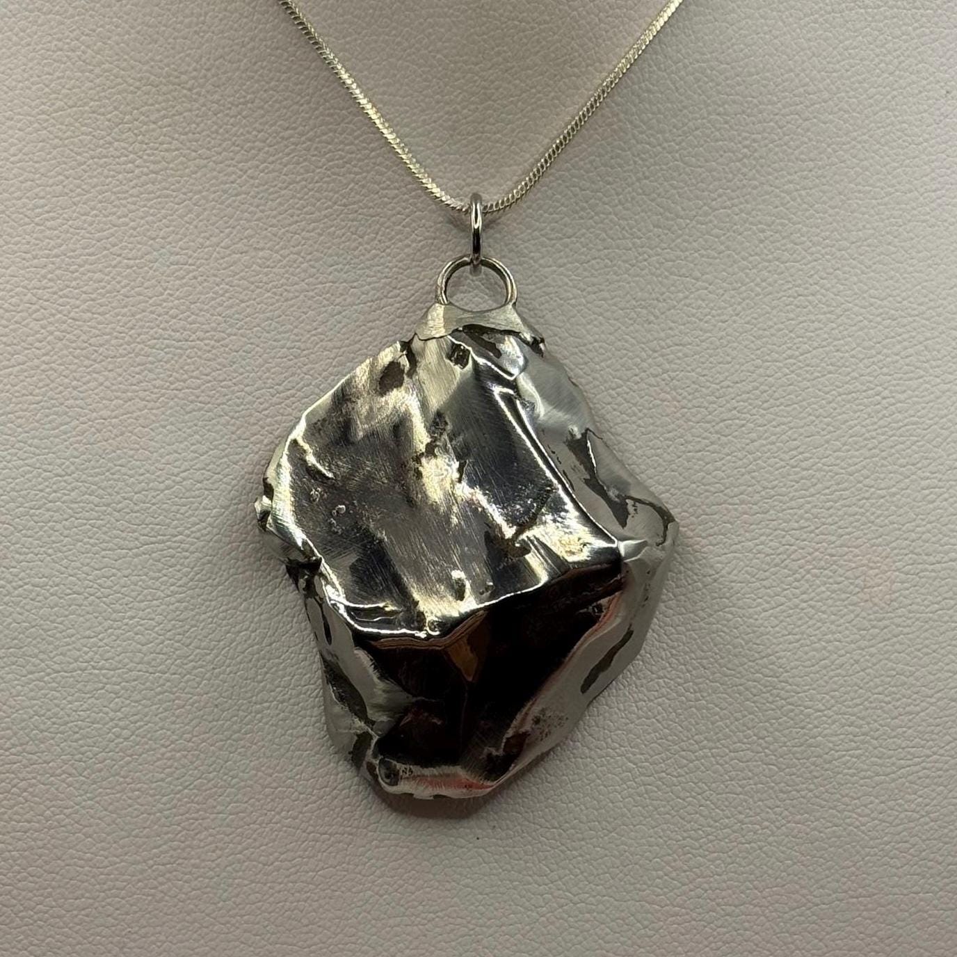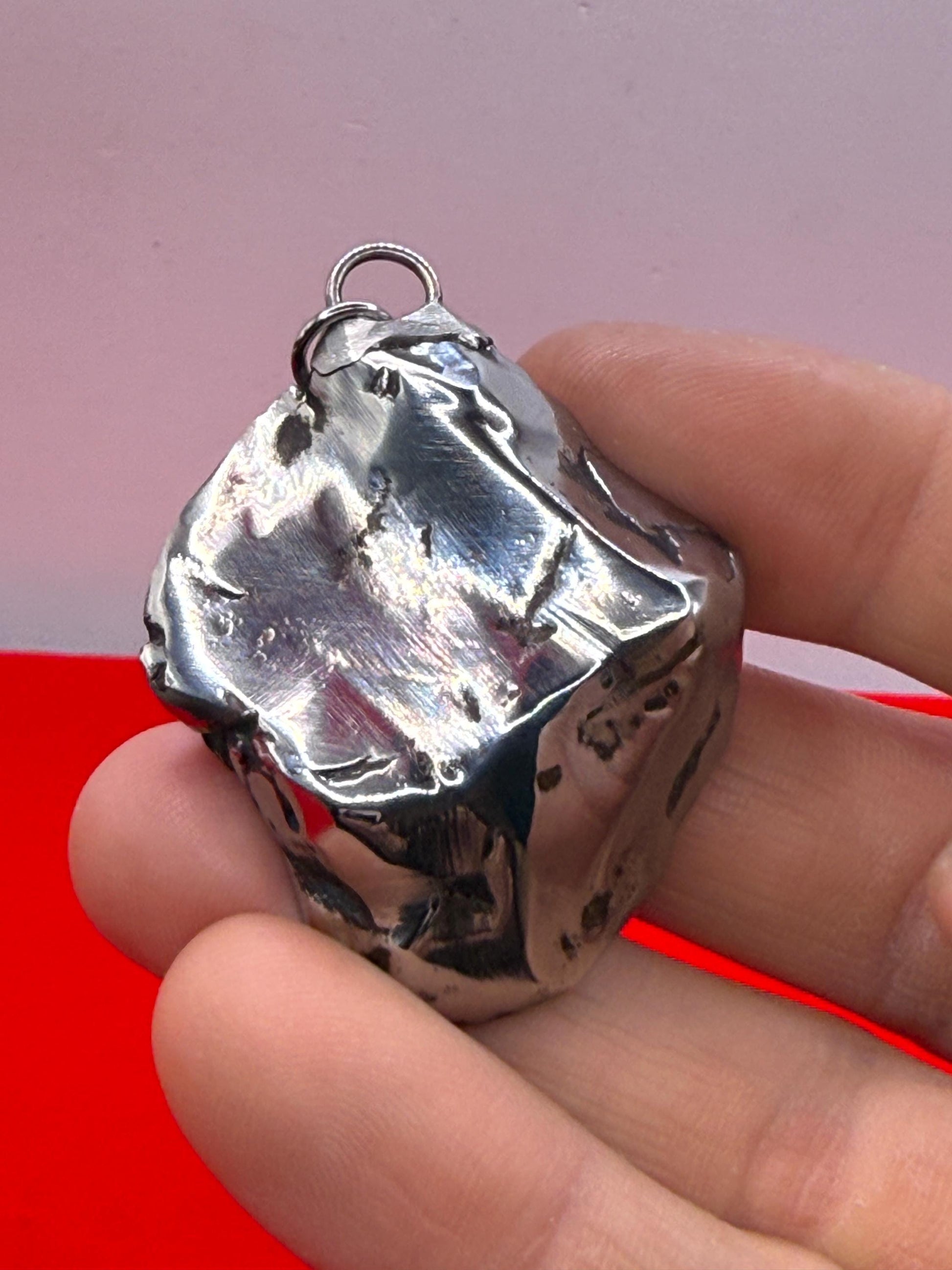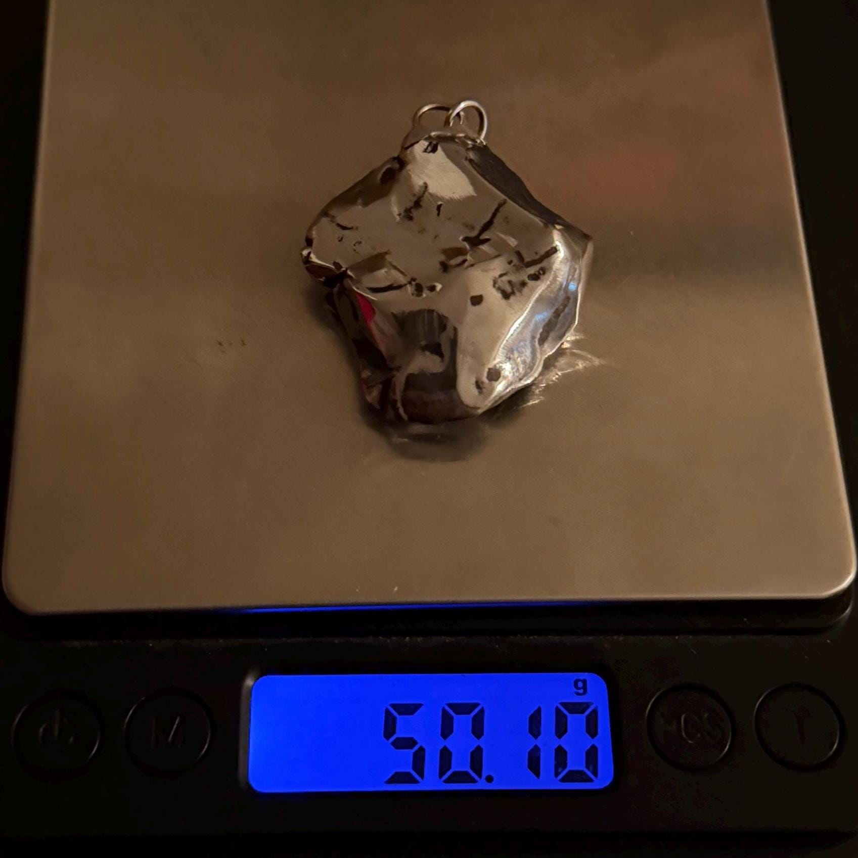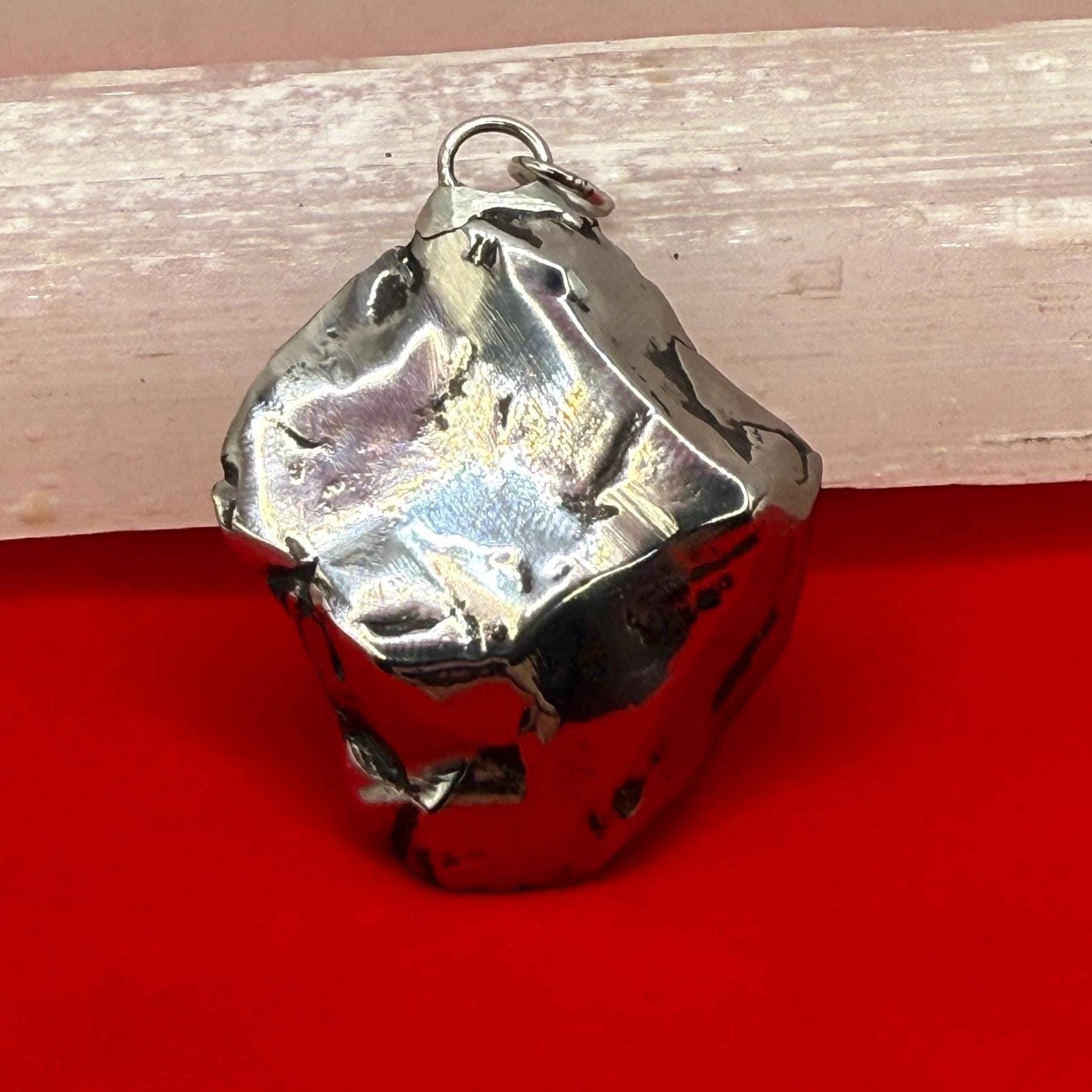 This stunning Gebel Kamil Iron Meteorite specimen from Egypt has been transformed into a one-of-a-kind, museum-grade pendant, perfect for any collector or cosmic enthusiast. It measures approximately 1.75” long by 1.25” wide and weighs 50.10 grams. Suspended on a complimentary 20” silver snake chain, it’s ready to wear or display. A Certificate of Authenticity (COA) is also included with your purchase.