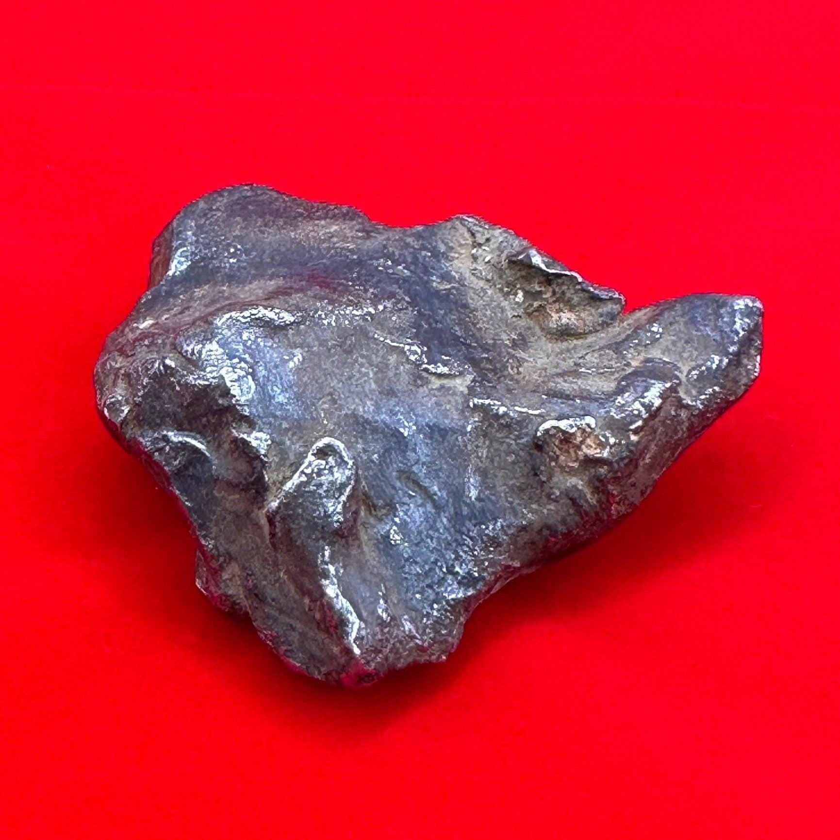 Dive into the wonders of the universe with this pristine, polished Gebel Kamil Iron Meteorite. Weighing a substantial 92.83 grams, this meteorite is a rare specimen from the strewn field discovered in the Egyptian Sahara. The Gebel Kamil meteorite is scientifically significant for its composition and formation. It belongs to the exclusive group of ataxite meteorites, characterized by a high nickel content and a lack of a traditional crystalline structure. This piece is not just a meteorite; it's a snapshot of the universe's history, making it an invaluable item for both collectors and scientific enthusiasts.