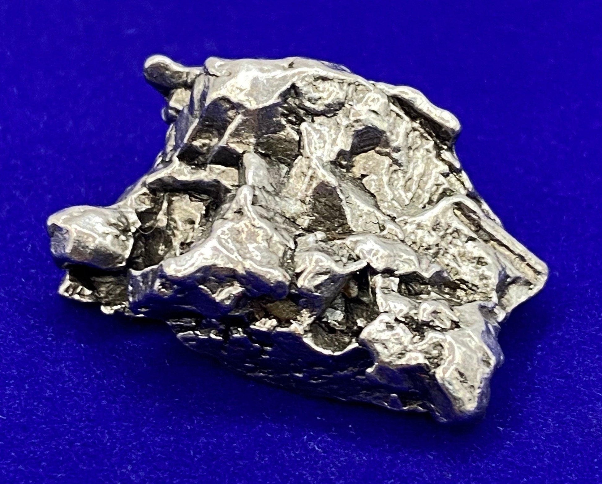 Rare Campo Del Cielo Meteorite. The weight is 24.68 grams with a floating meteorite display case, velvet carrying bag and a certificate of authenticity. Beautiful museum grade meteorite. It would be a great addition to any collection. Perfect gift for a meteorite enthusiast or collector. Need a birthday gift for a space loving student? This would make a very unique gift. The measurements are 1.0” long and 3/4” wide.