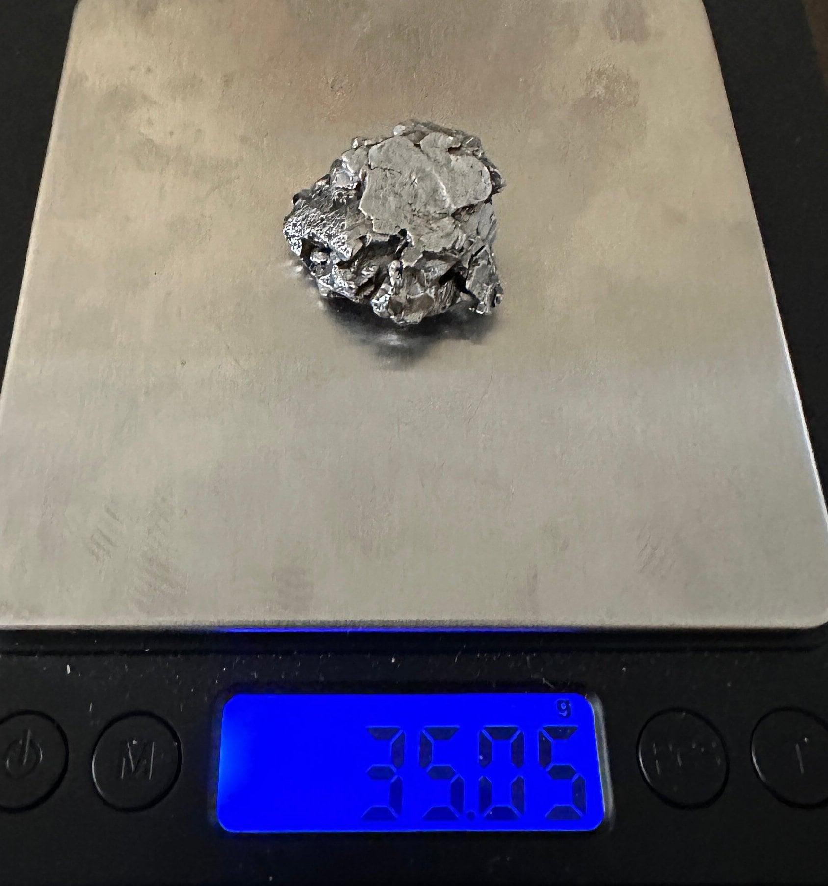 Unique Meteorite Specimen Campo del Cielo 35.05 grams, Rare Moving Piece, Reiki, Astronomy Gift, Display Case and Carrying Bag