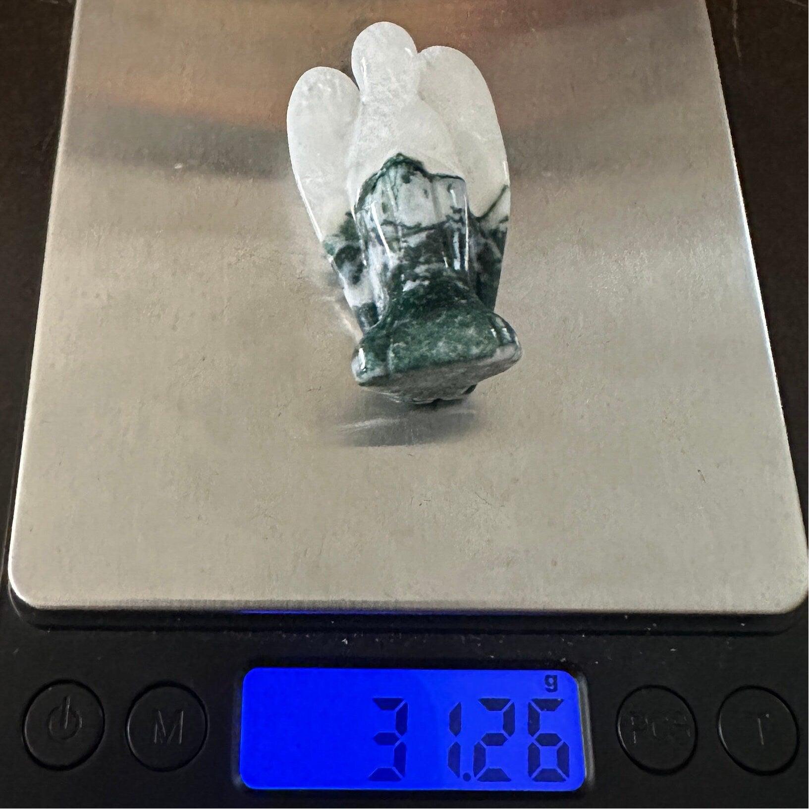White Moss Agate Angel, Pocket Stone, Protection Stone, Guardian Angel, Moss Agate, Agate Angel Figurine, Angel Figurine, 31.26 grams